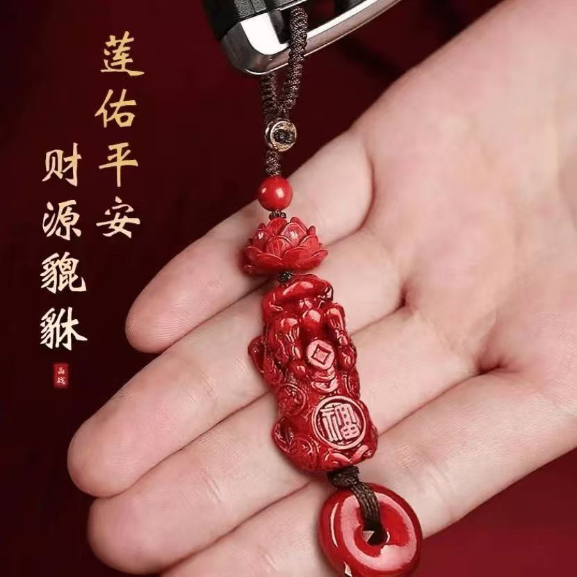 2025 새로운 진사 연꽃 Pixiu 자동차 키 체인 펜던트 보라색 금 모래 남성과 여성 펜던트 도매 쥬얼리