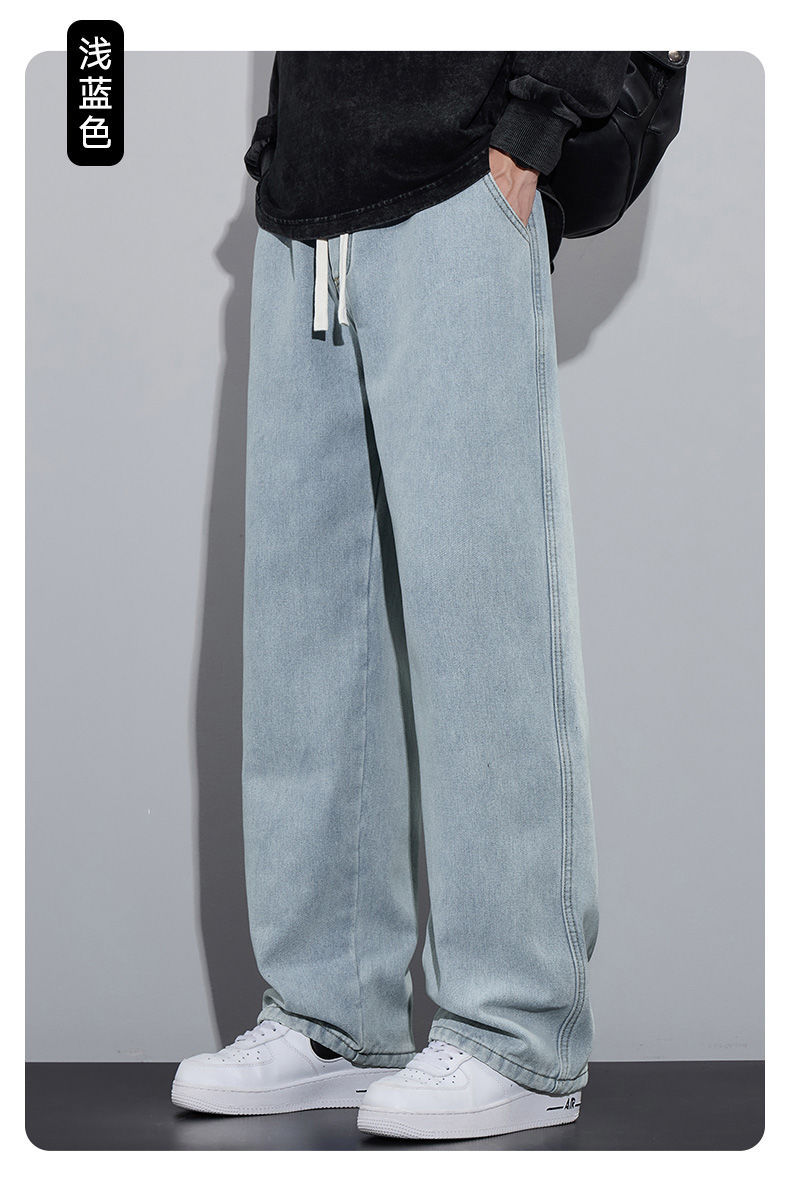 Shanshao 의류 여름 얇은 청바지 남성 느슨한 스트레이트 와이드 레그 바지 2025 새로운 패션 브랜드 캐주얼 바지스토어 가기