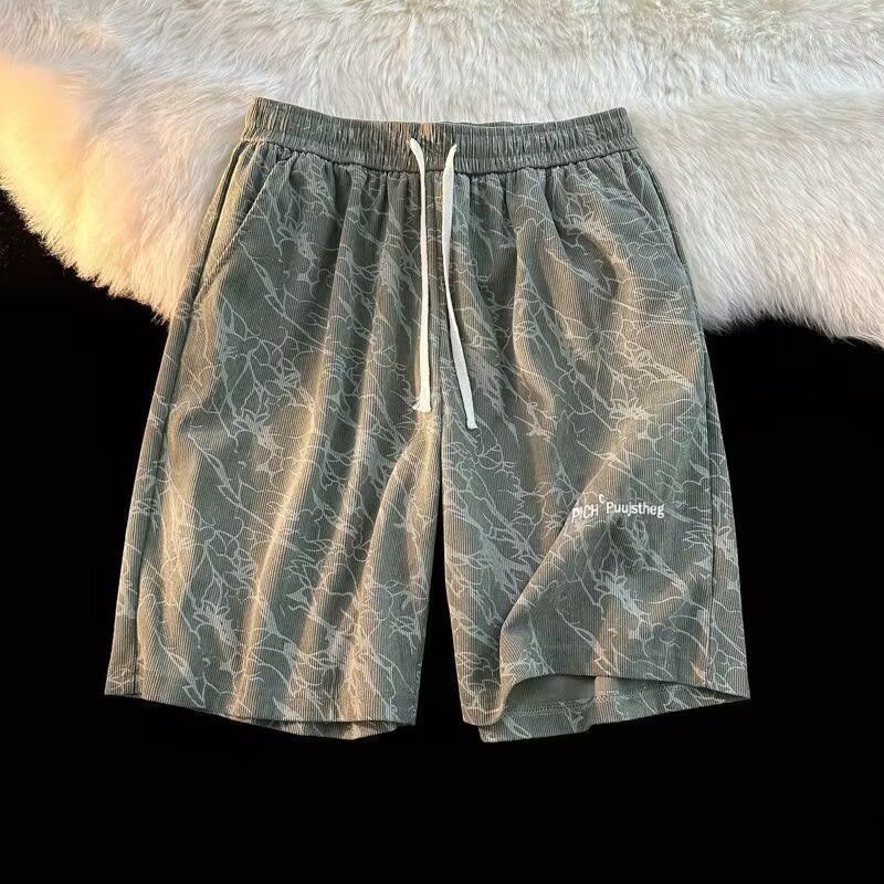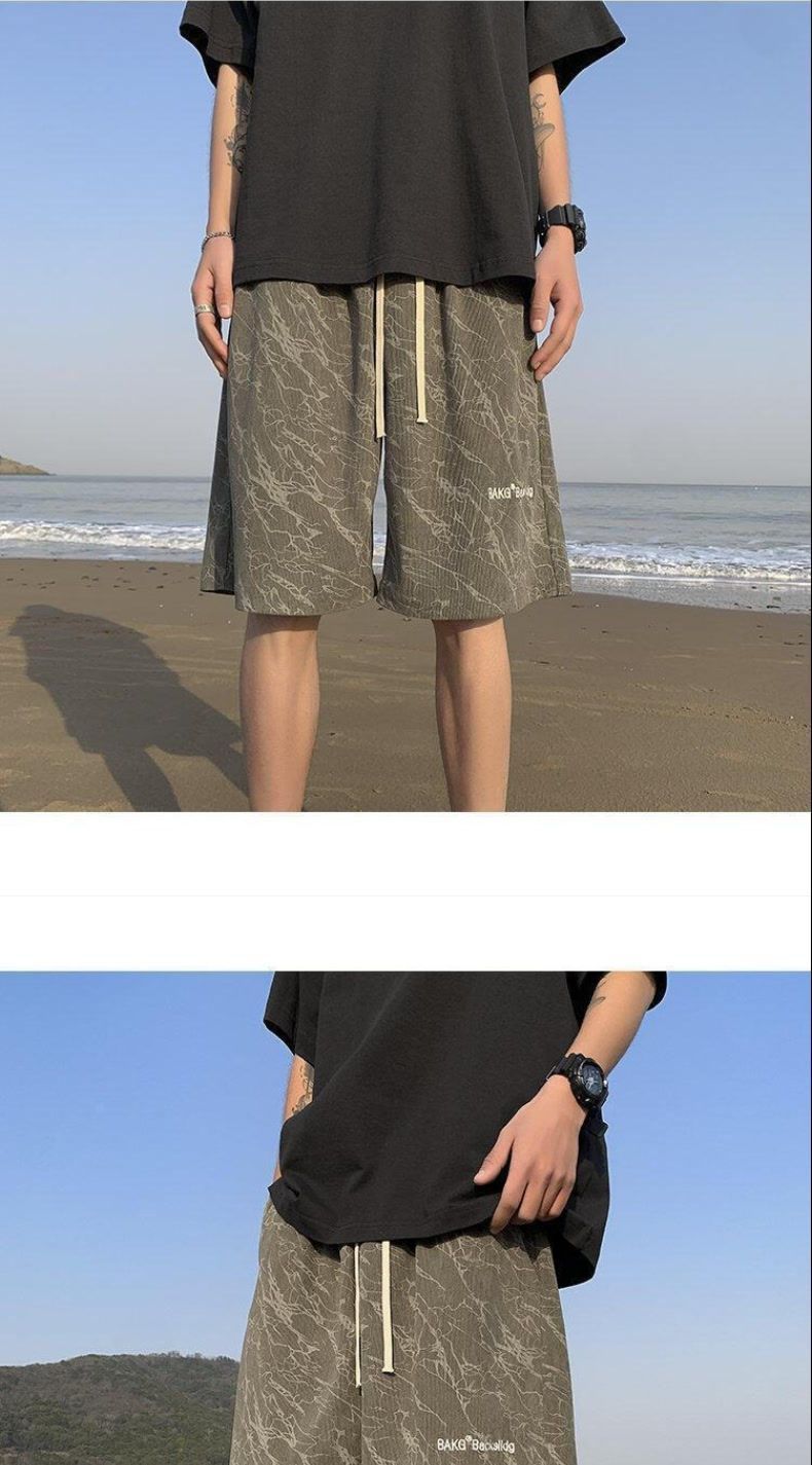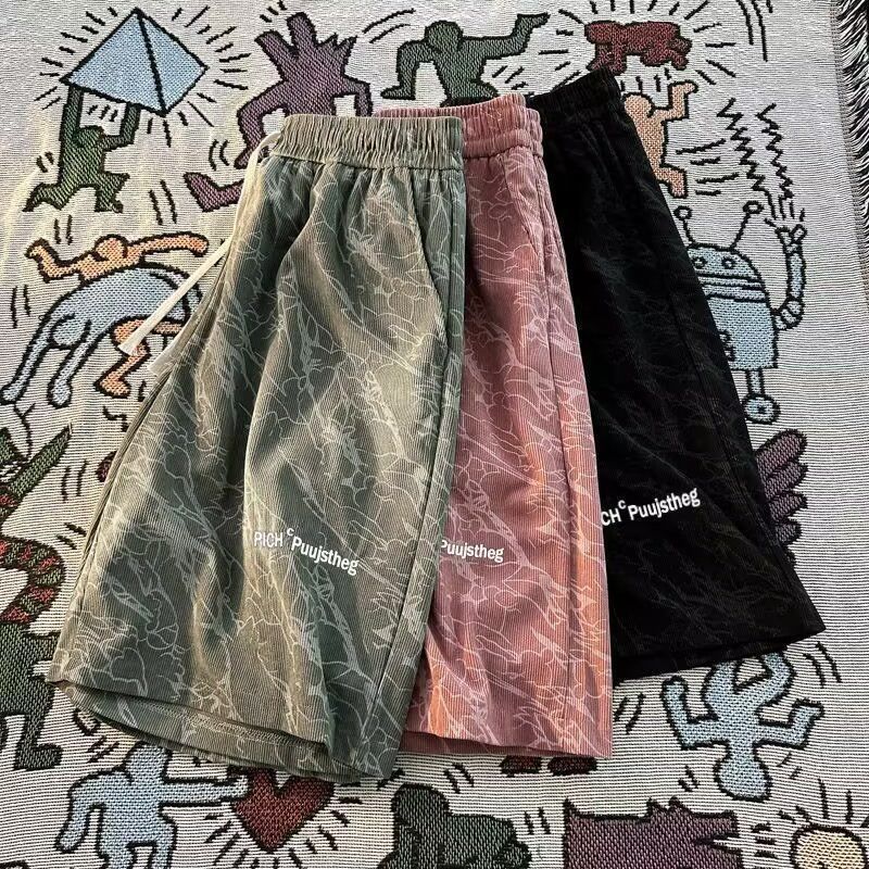 여름 루즈한 플러스 사이즈 반바지 남성 캐주얼 다재다능한 스포츠 바지 트렌디 브랜드 뉴 아메리칸 타이 염색 자수 5부 바지