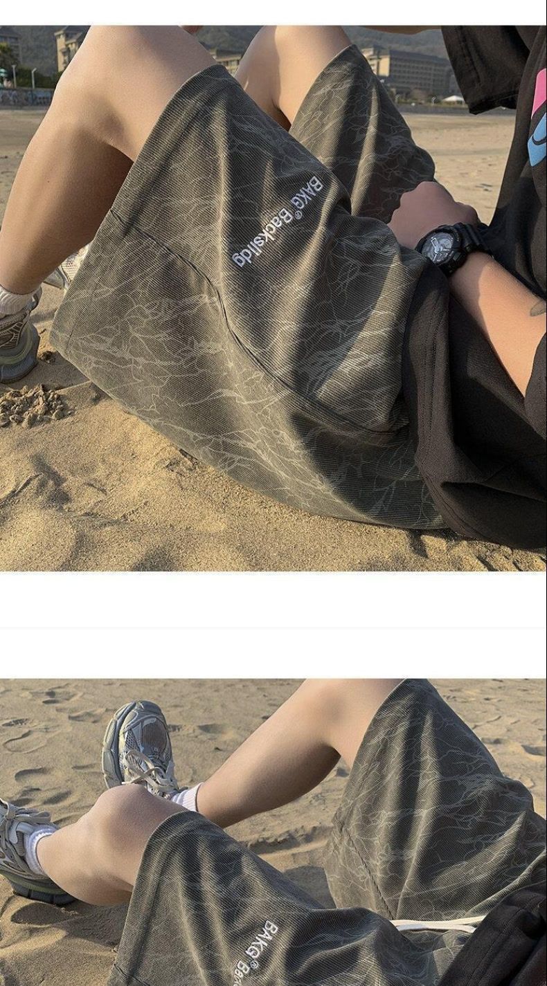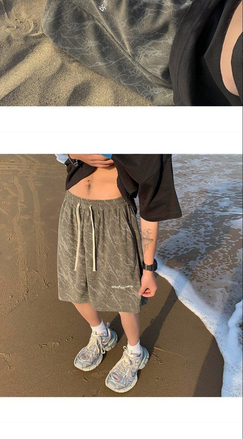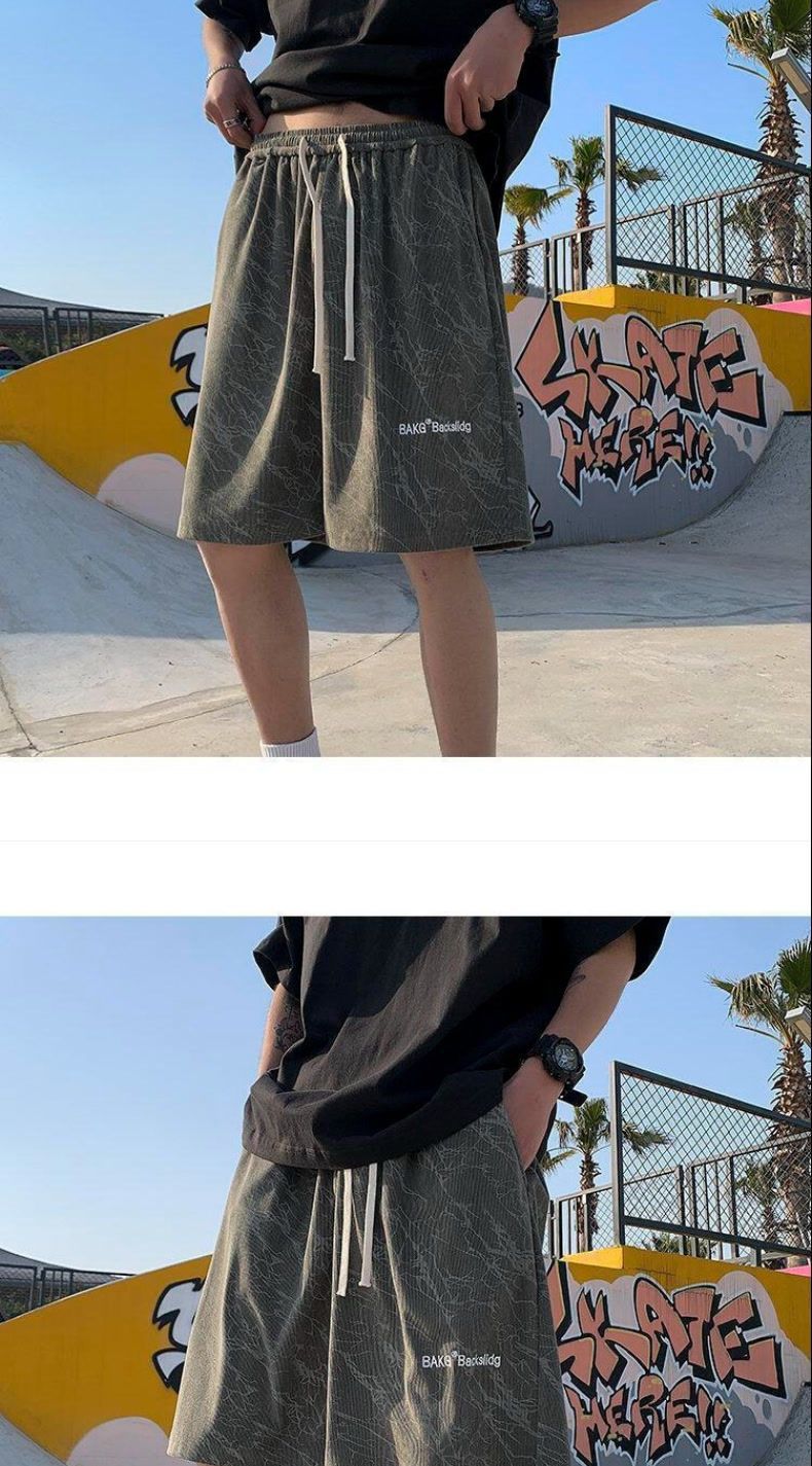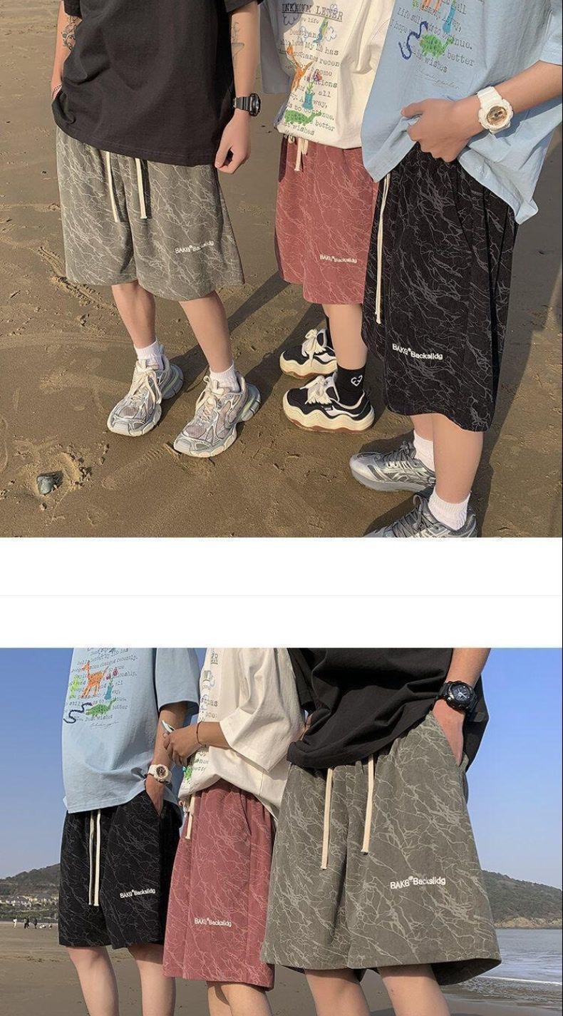 여름 루즈한 플러스 사이즈 반바지 남성 캐주얼 다재다능한 스포츠 바지 트렌디 브랜드 뉴 아메리칸 타이 염색 자수 5부 바지스토어 가기
