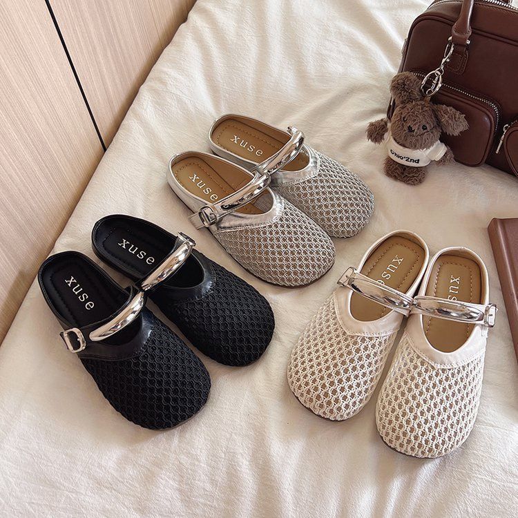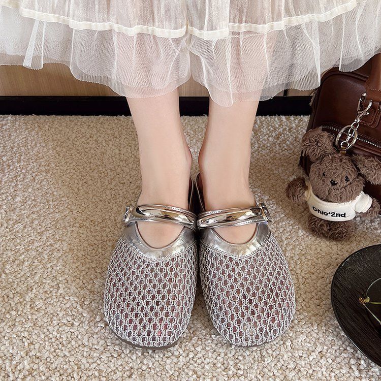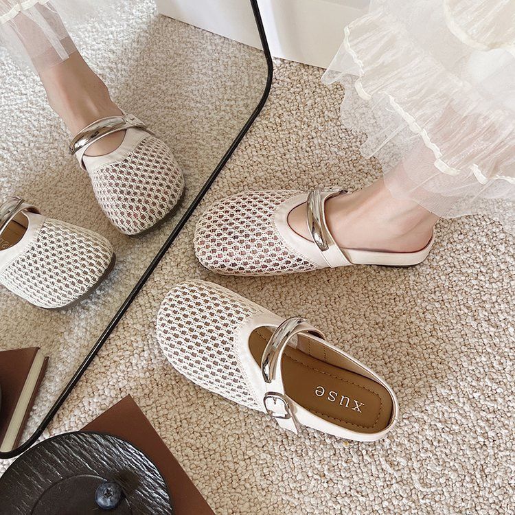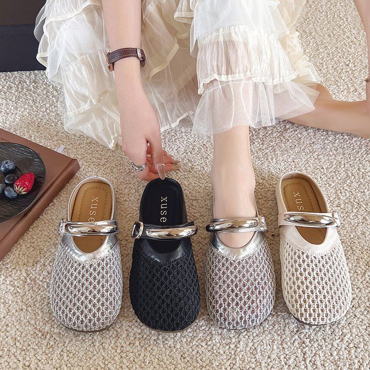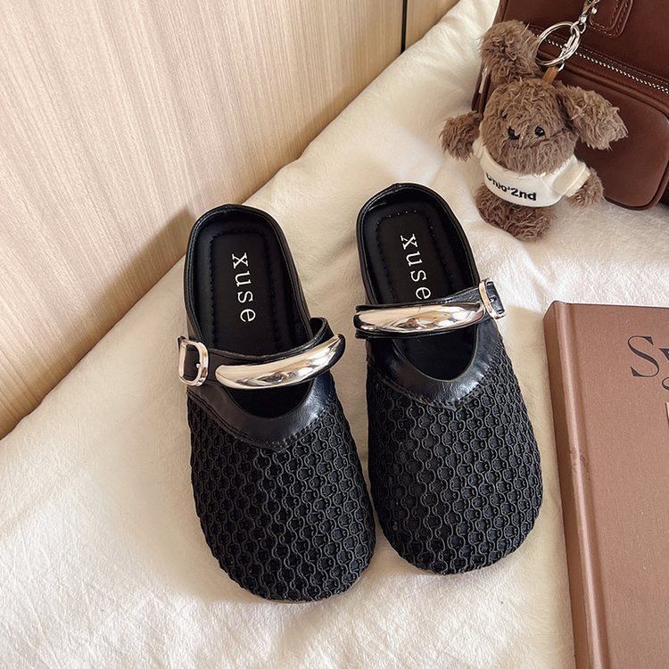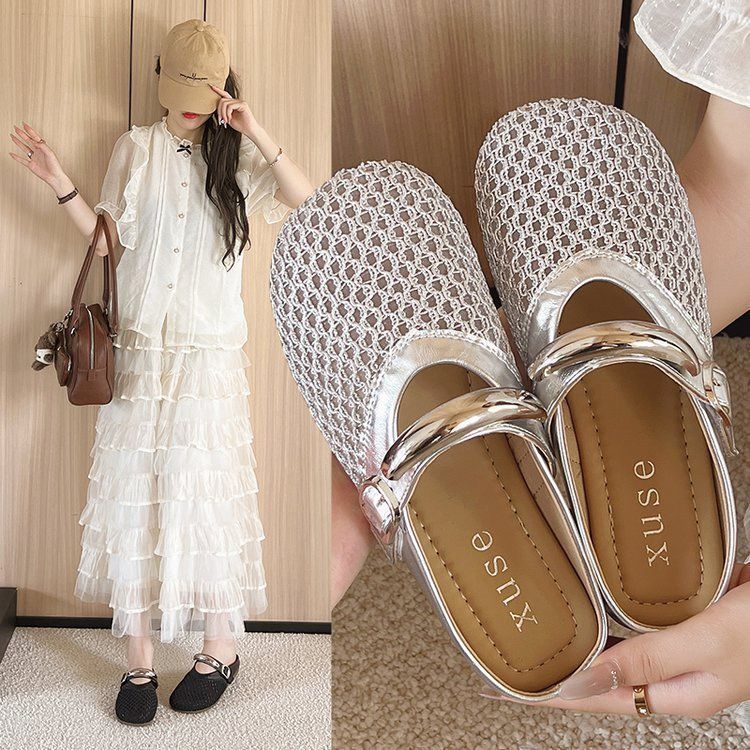여름 아우터용 프렌치 망사 통기성 여성 샌들 2025 여성용 신형 원스텝 메쉬 빈티지 반슬리퍼스토어 가기