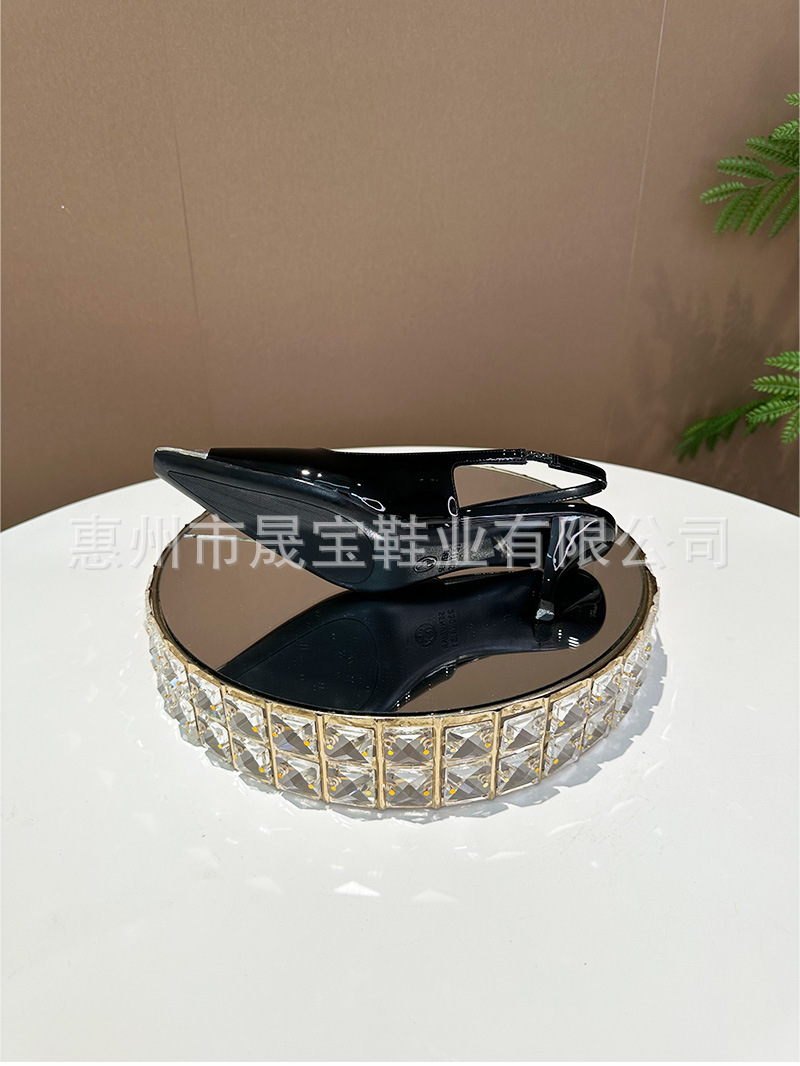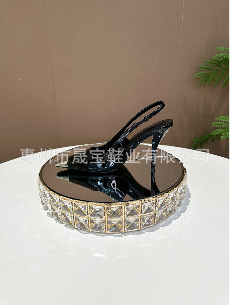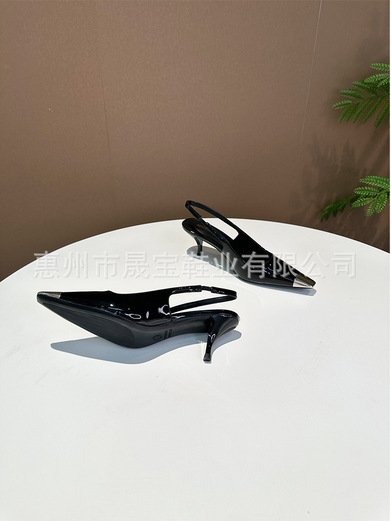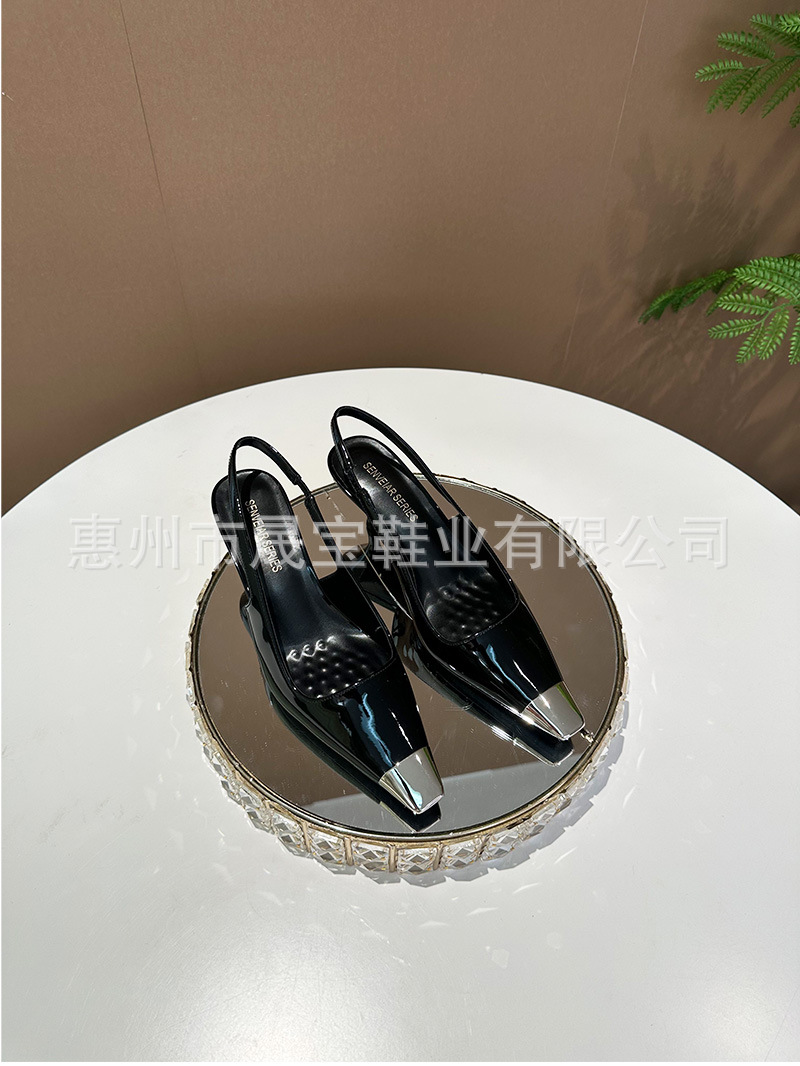 Yangshulin Baotou 샌들 여름 새로운 금속 철제 발가락 신발 여성 블랙 섹시한 특허 가죽 Pu Caiying 하이힐