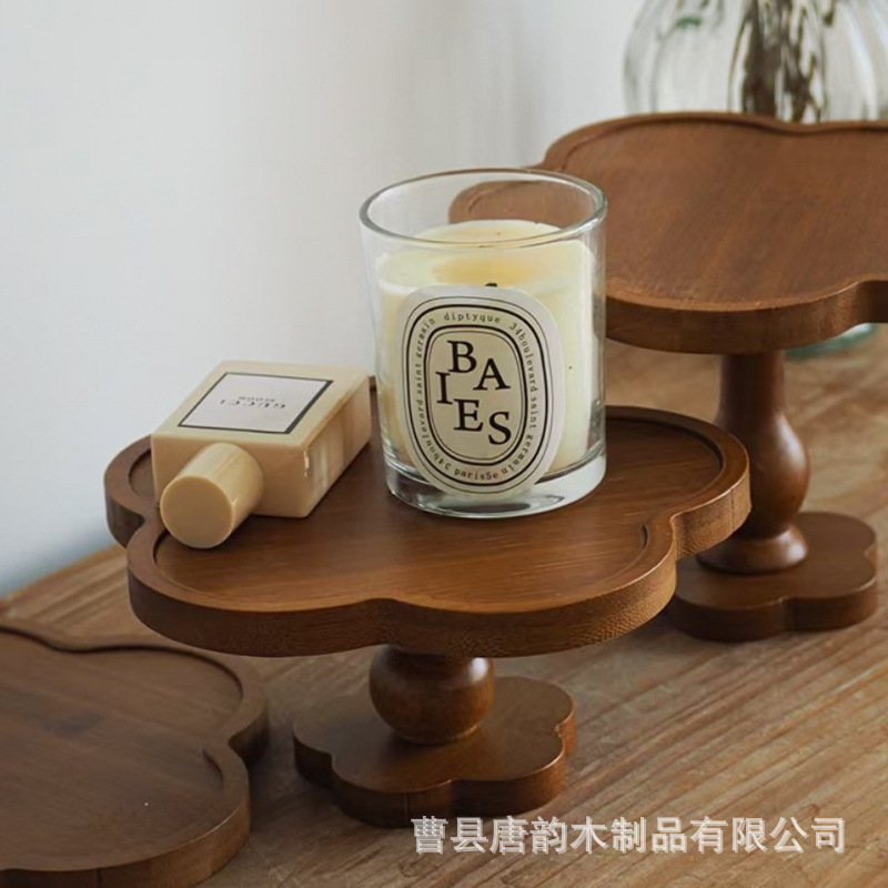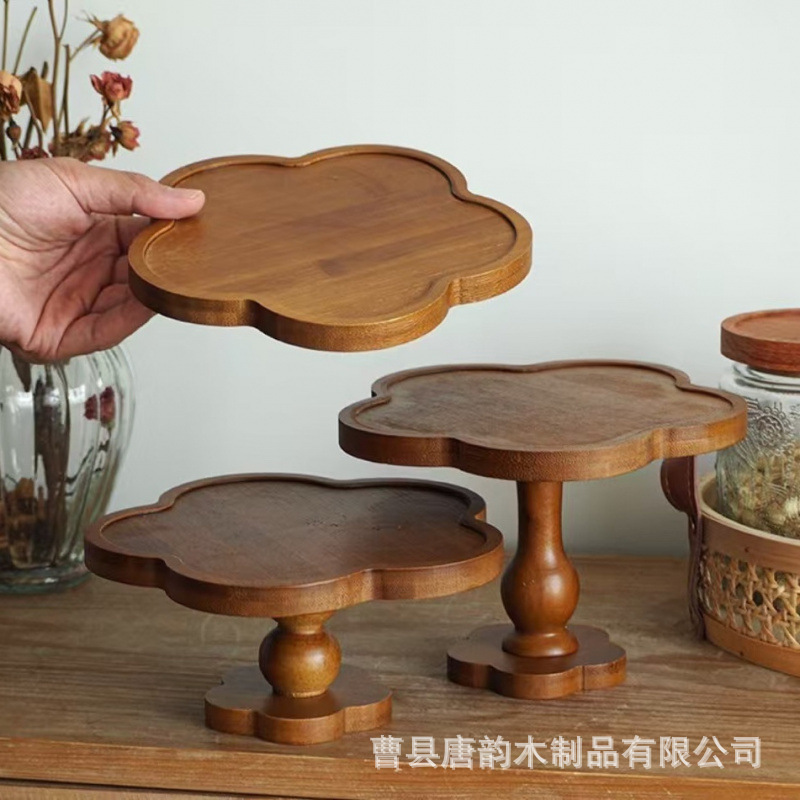 단단한 나무 꽃잎 디너 플레이트 프랑스 꽃 모양의 높은 트레이 파티 스낵 디저트 트레이 나무 과일 트레이스토어 가기