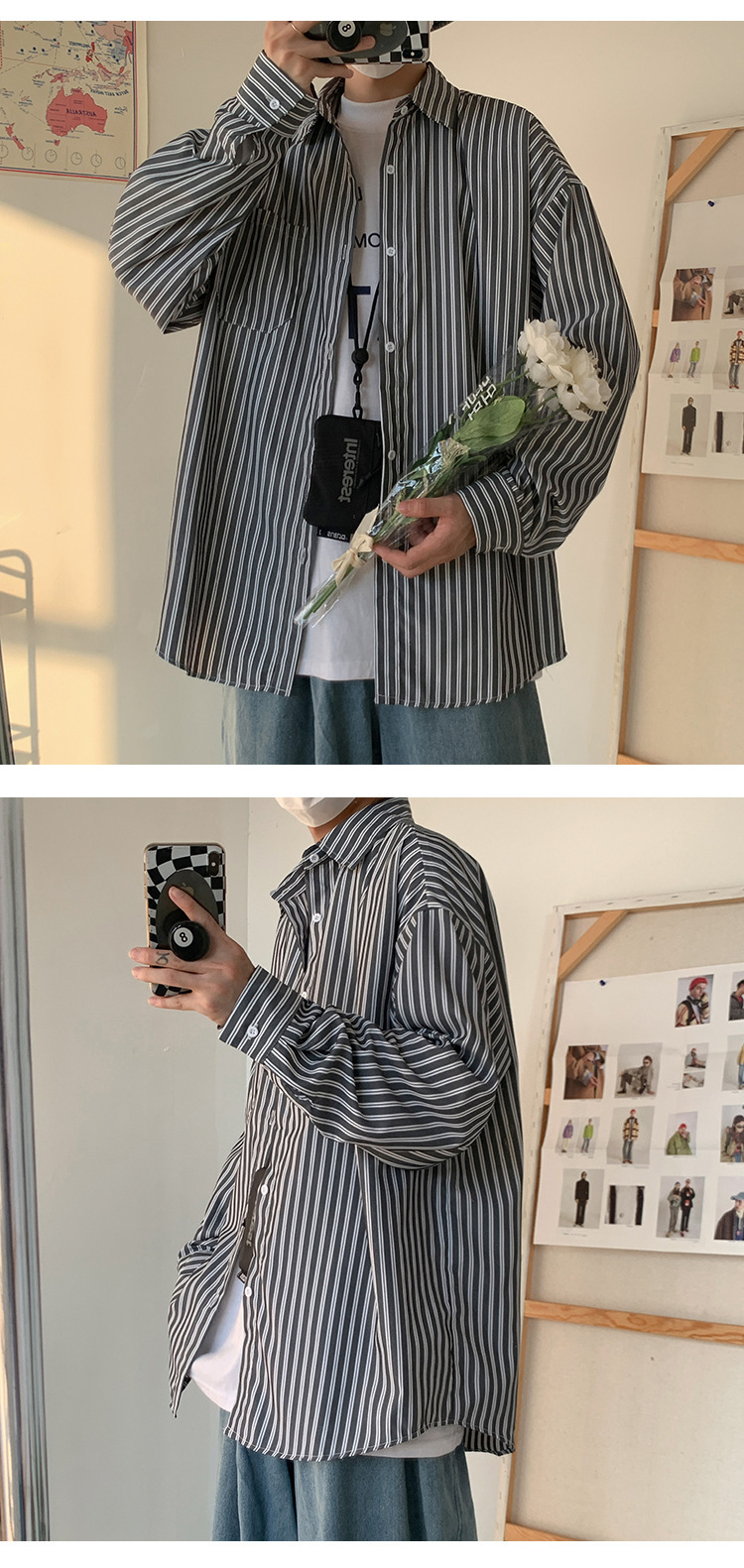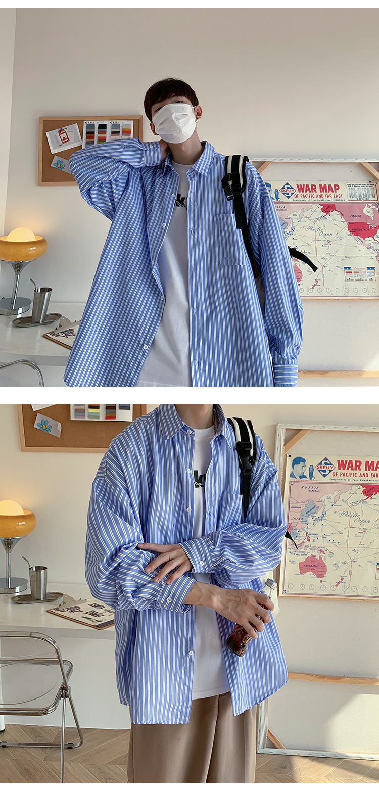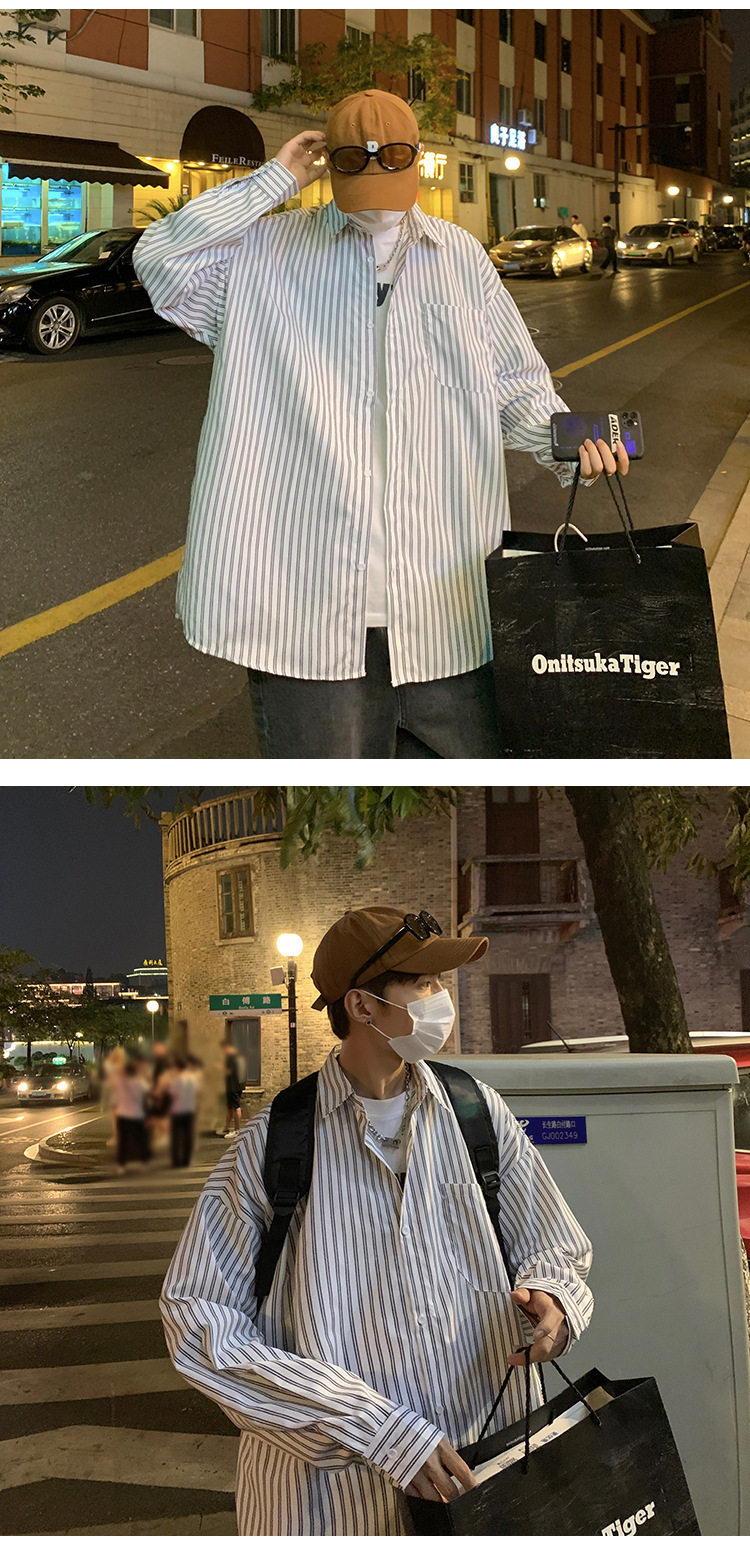하라주쿠 인스 트렌디 스트라이프 셔츠 남성 긴팔 한국 스타일 트렌디 핸섬 셔츠 봄 가을 홍콩 스타일 캐주얼 재킷스토어 가기