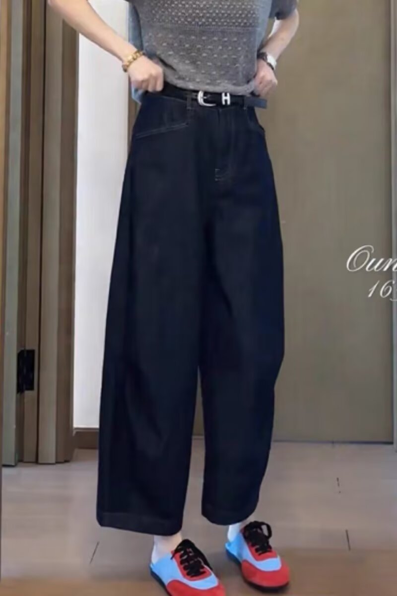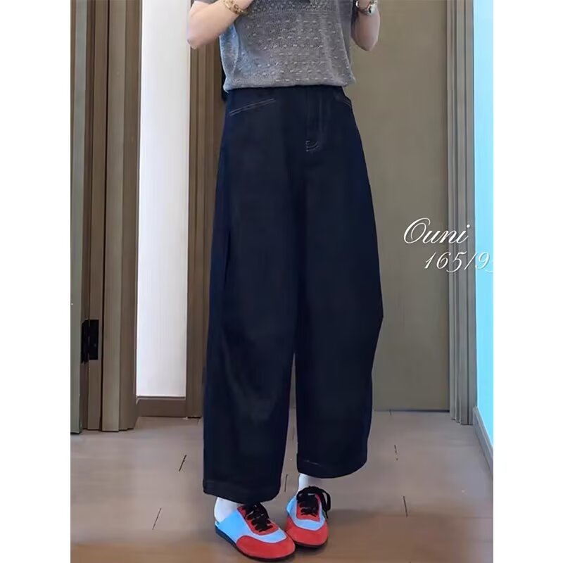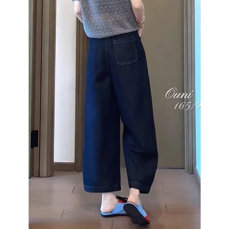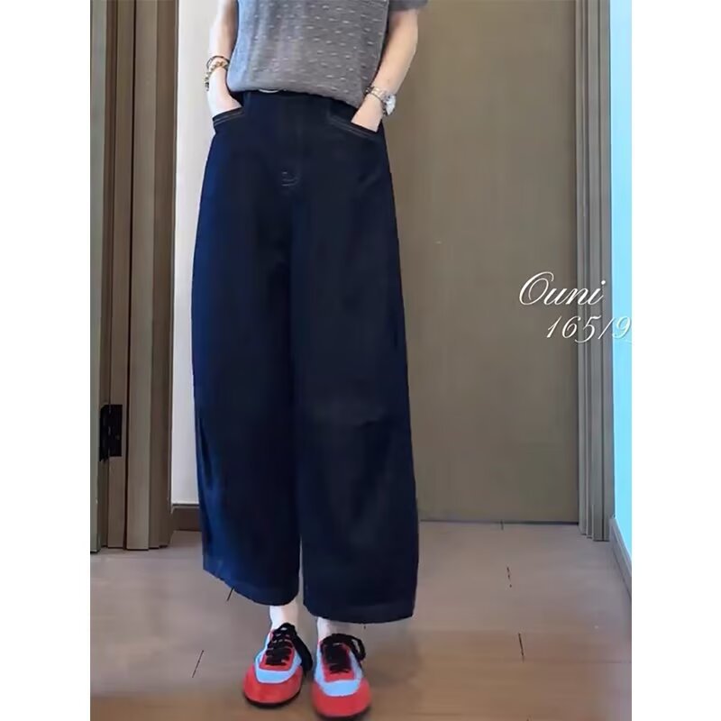 여성용 얇은 청바지, 루즈한 와이드 팬츠, 여름 신상품, 대형 통근 하이웨이스트 슬리밍 9부 팬츠, 스트레이트 팬츠스토어 가기