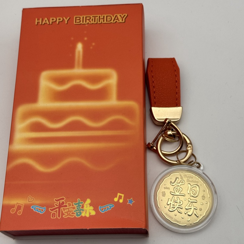 • 금 함유 - 생일 축하 + 짧은 주황색 끈 + 생일 선물 상자
