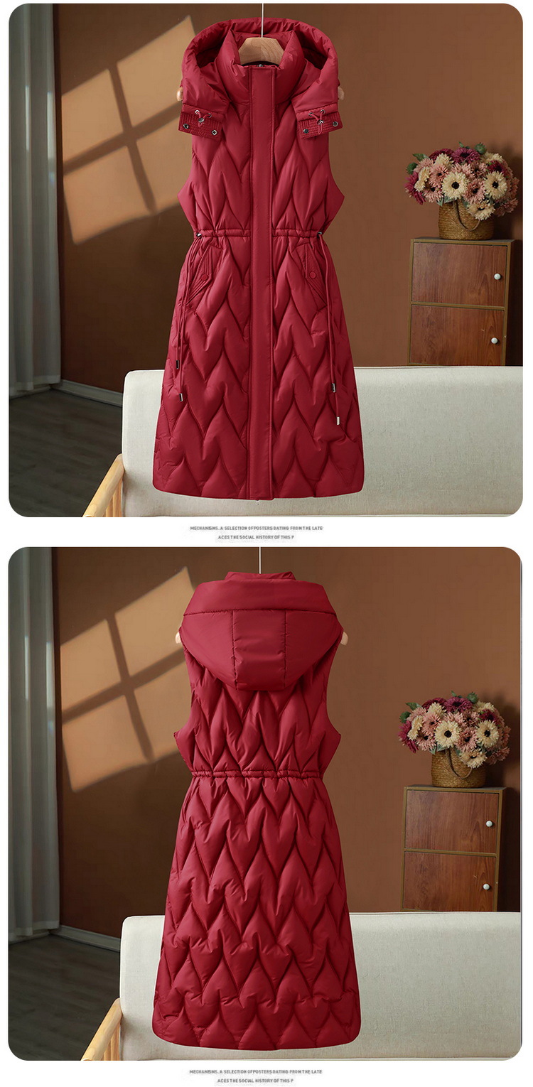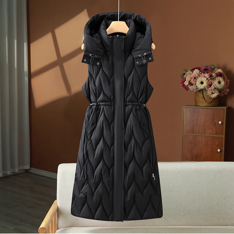 긴 여성 면화 조끼 여성 가을, 겨울 중간 길이 한국 스타일 후드 다운 면화 조끼 대형 두꺼운 양복 조끼
