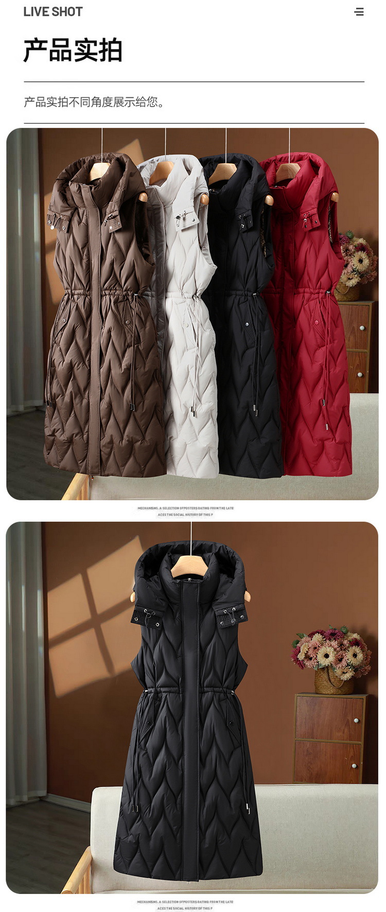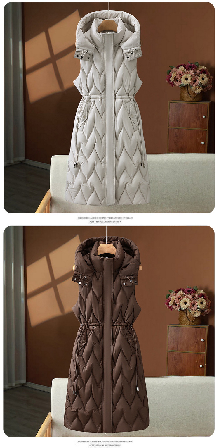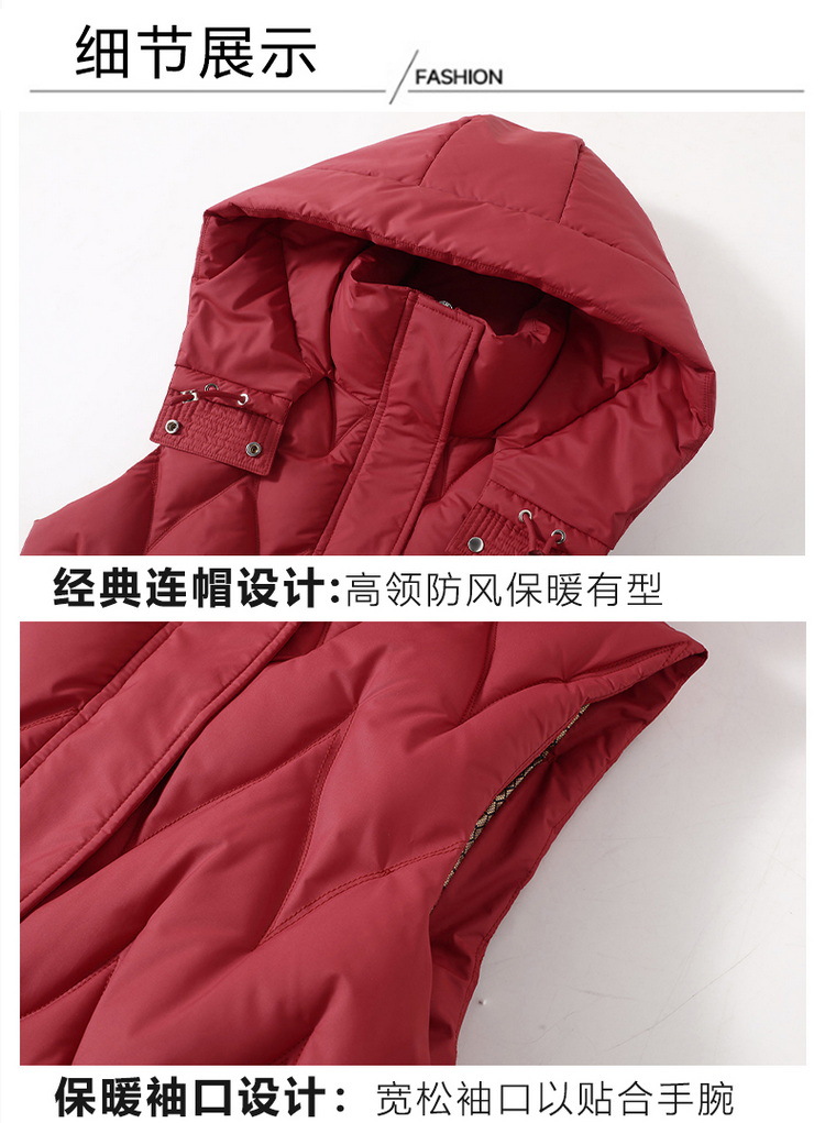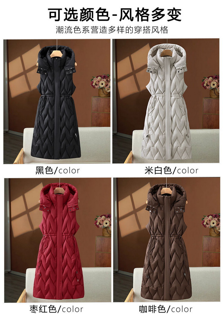 긴 여성 면화 조끼 여성 가을, 겨울 중간 길이 한국 스타일 후드 다운 면화 조끼 대형 두꺼운 양복 조끼스토어 가기