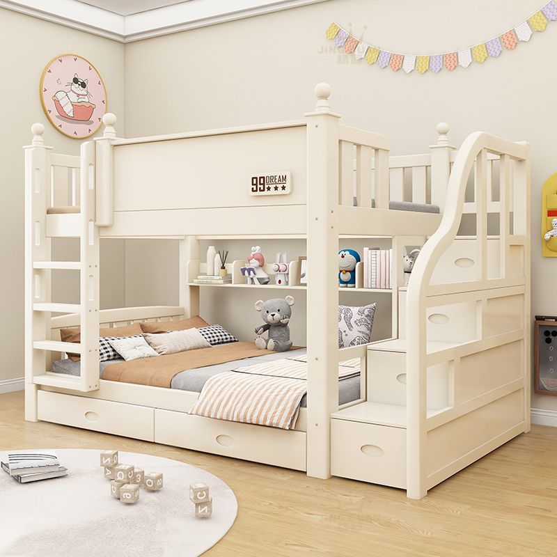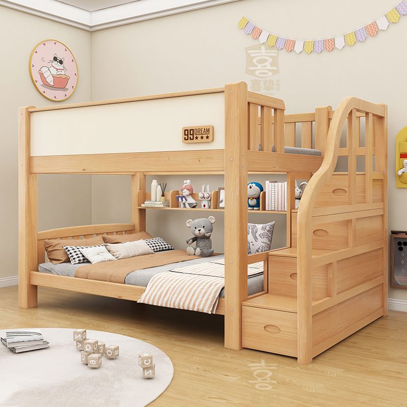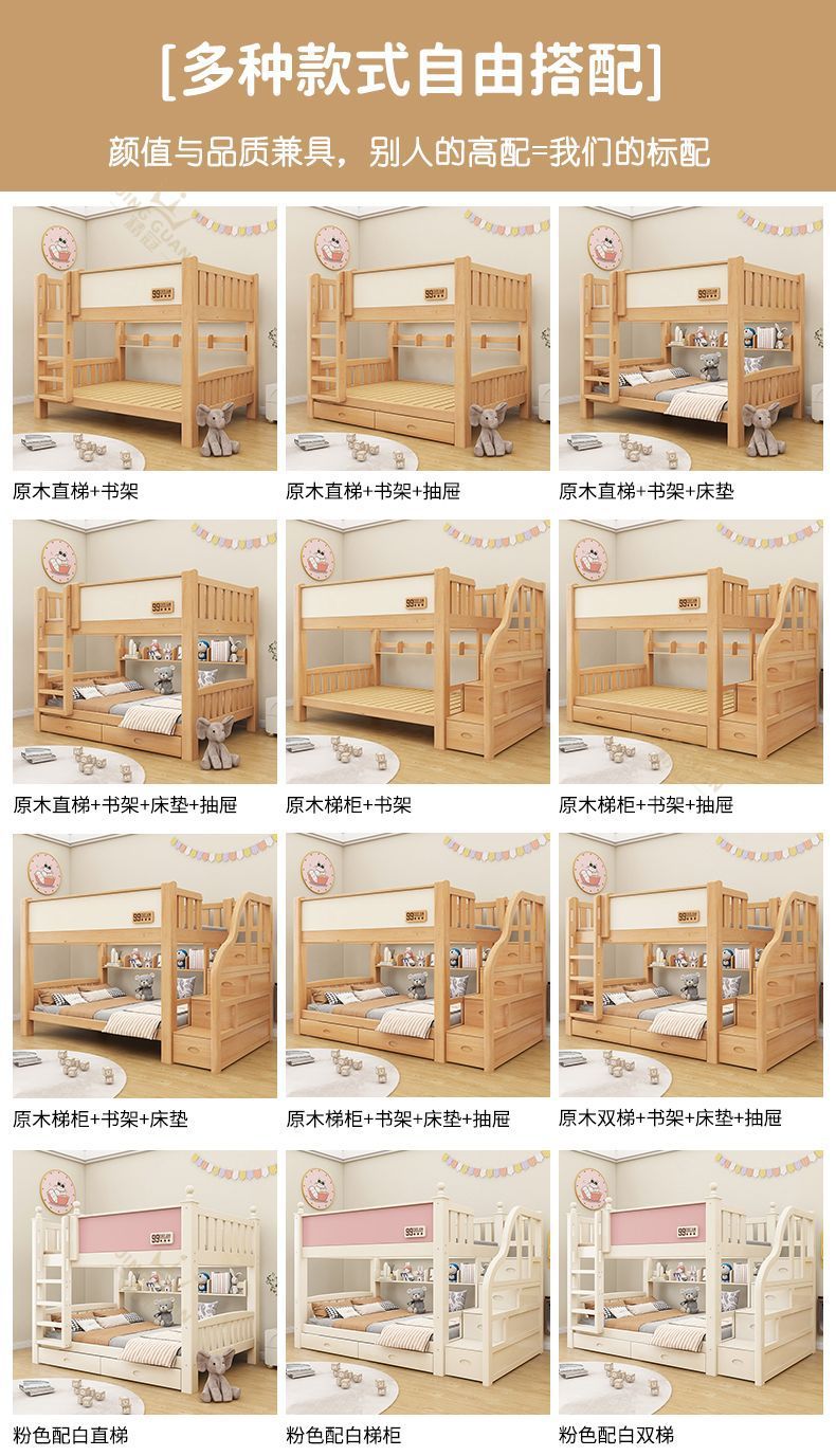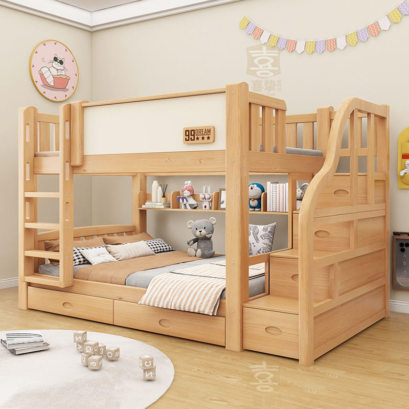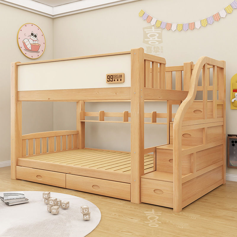 단단한 나무 두꺼운 이층 침대 반 높이 침대 어린이 이층 침대 가정용 다기능 높낮이 침대 기숙사 이층 침대