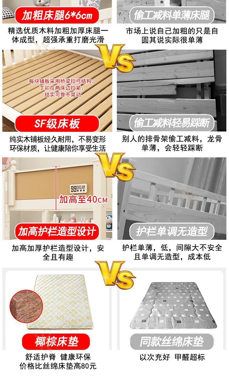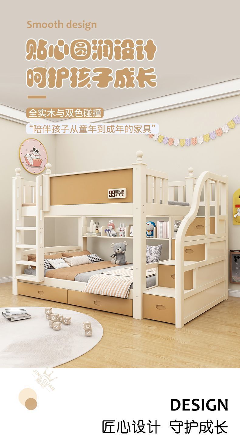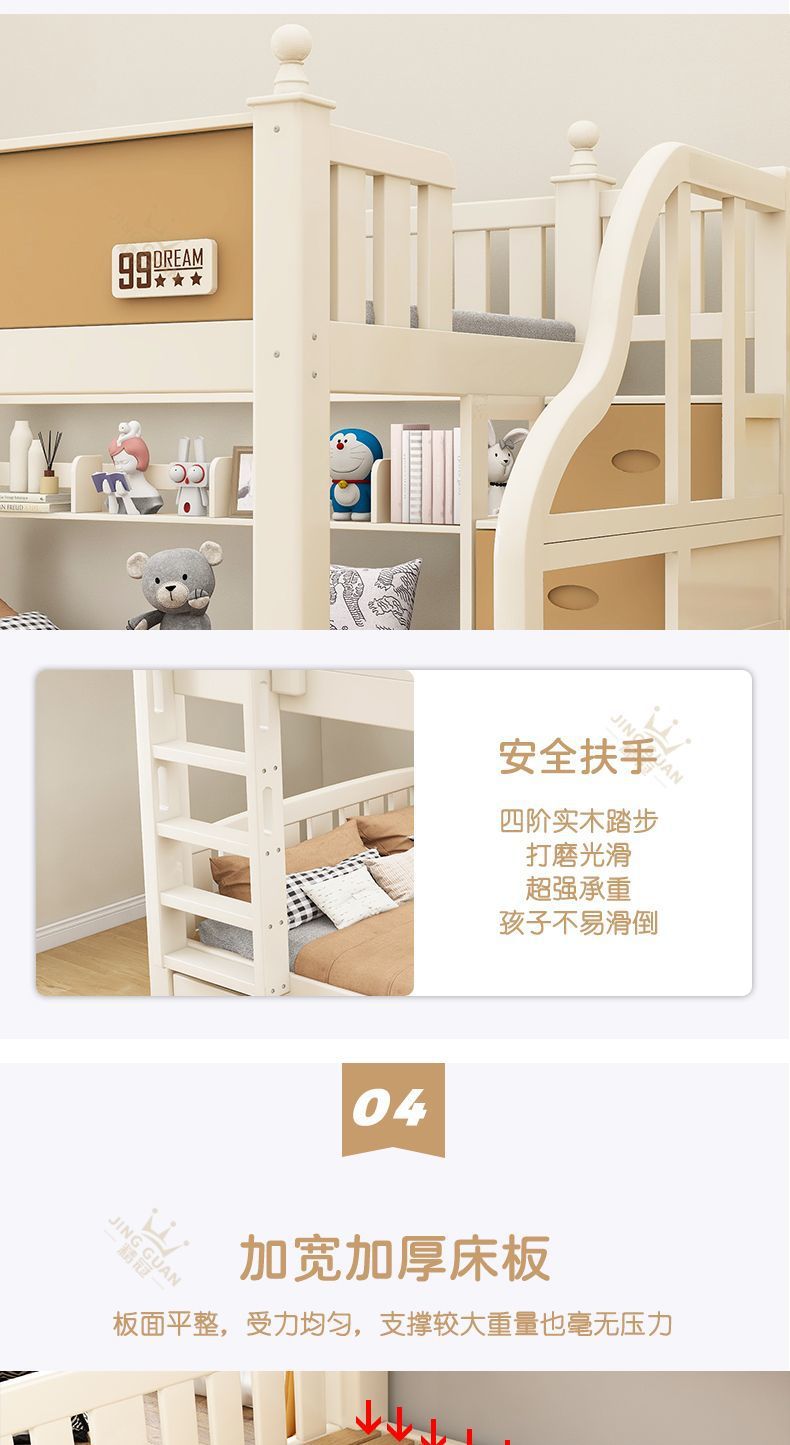 단단한 나무 두꺼운 이층 침대 반 높이 침대 어린이 이층 침대 가정용 다기능 높낮이 침대 기숙사 이층 침대