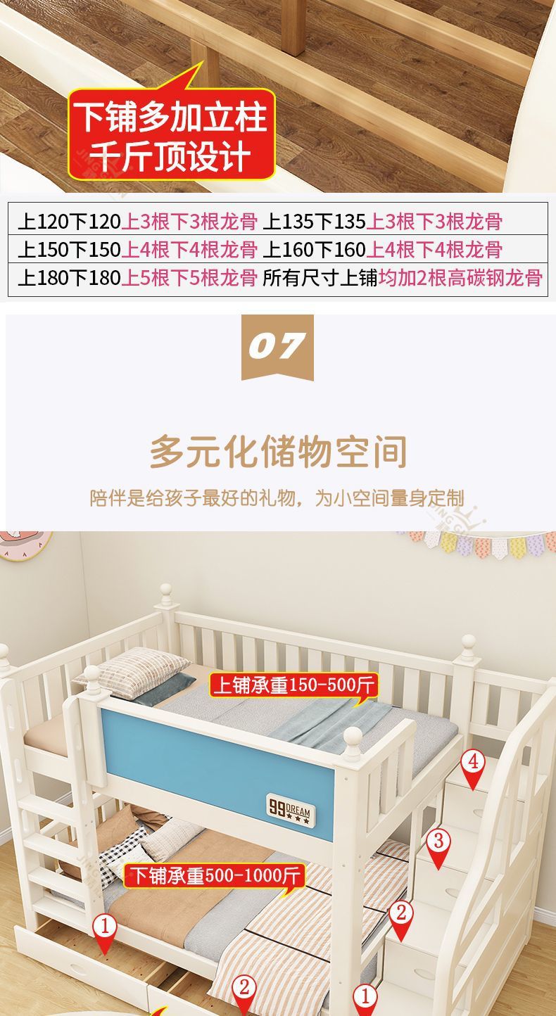 단단한 나무 두꺼운 이층 침대 반 높이 침대 어린이 이층 침대 가정용 다기능 높낮이 침대 기숙사 이층 침대스토어 가기