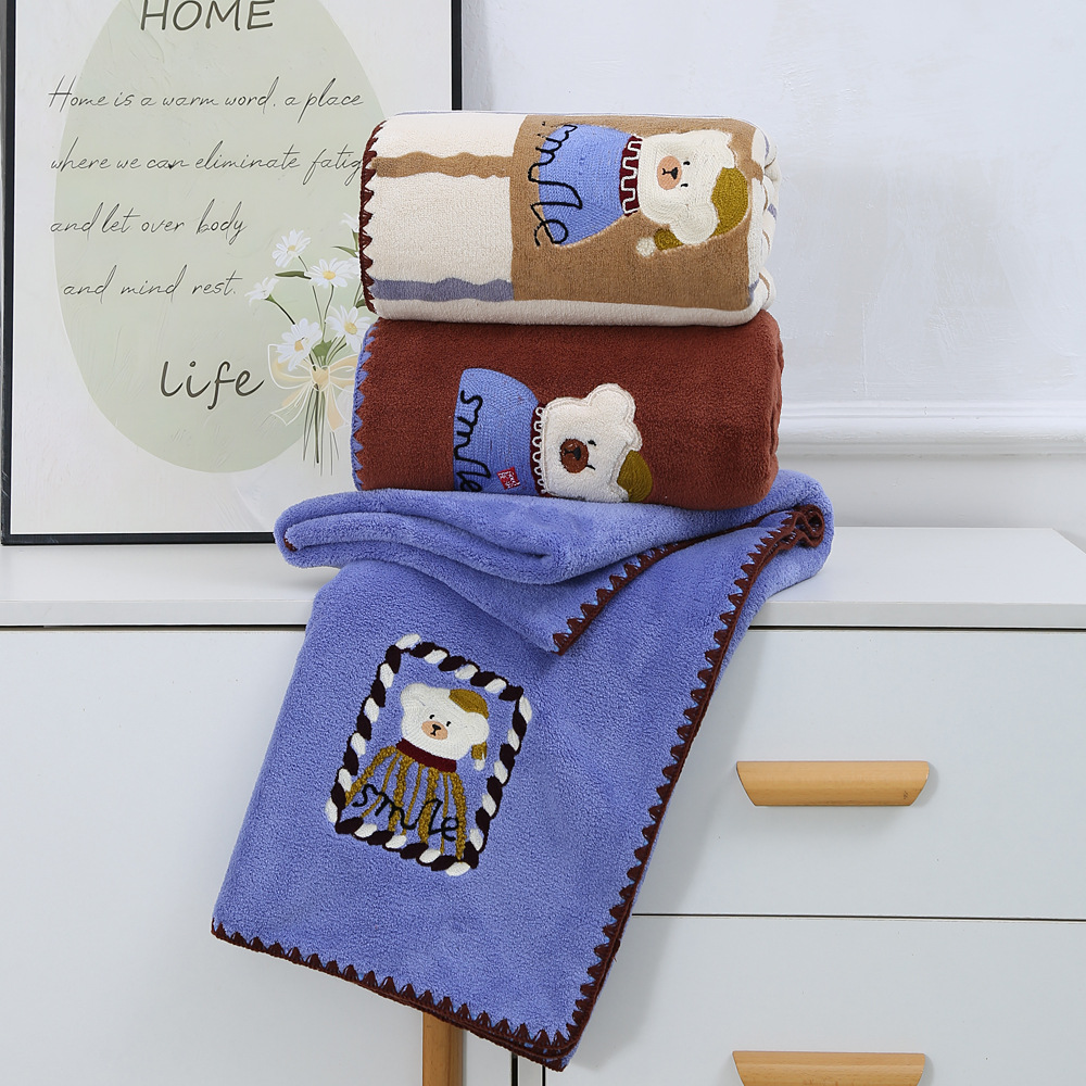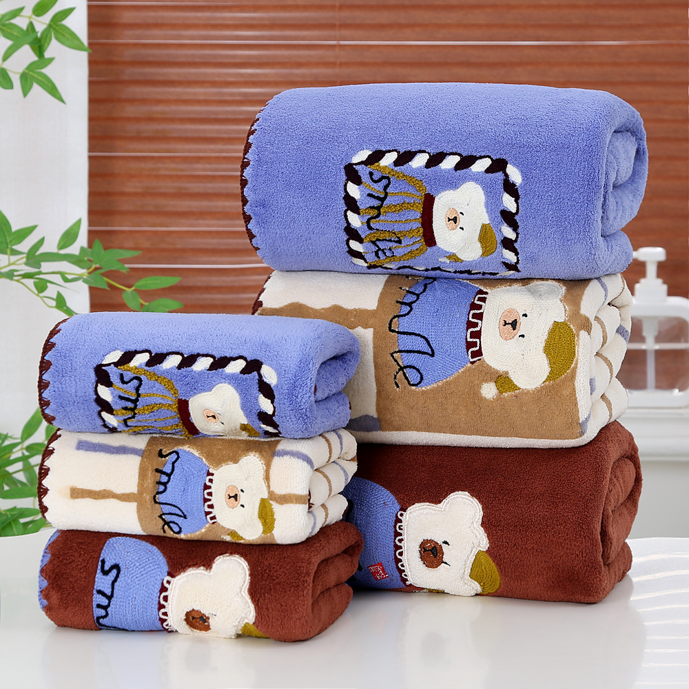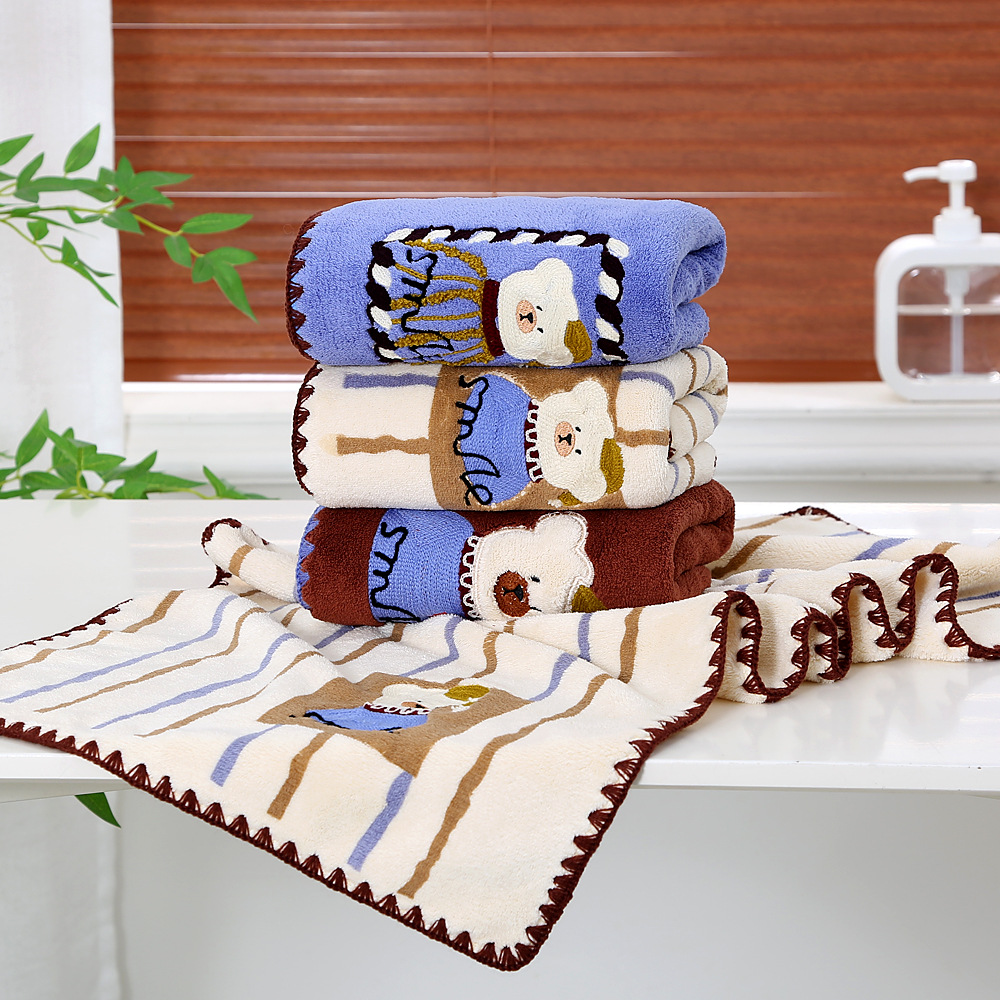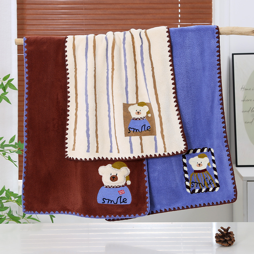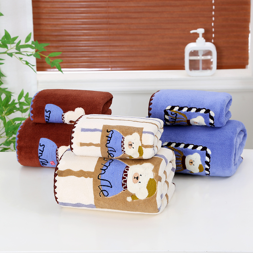 새로운 직조 산호 벨벳 후크 자수 만화 귀여운 곰 홈 대학생 기숙사 개학을위한 두꺼운 수건
