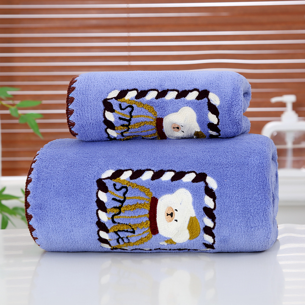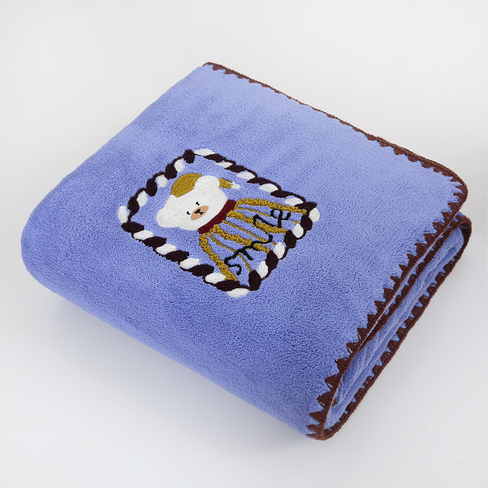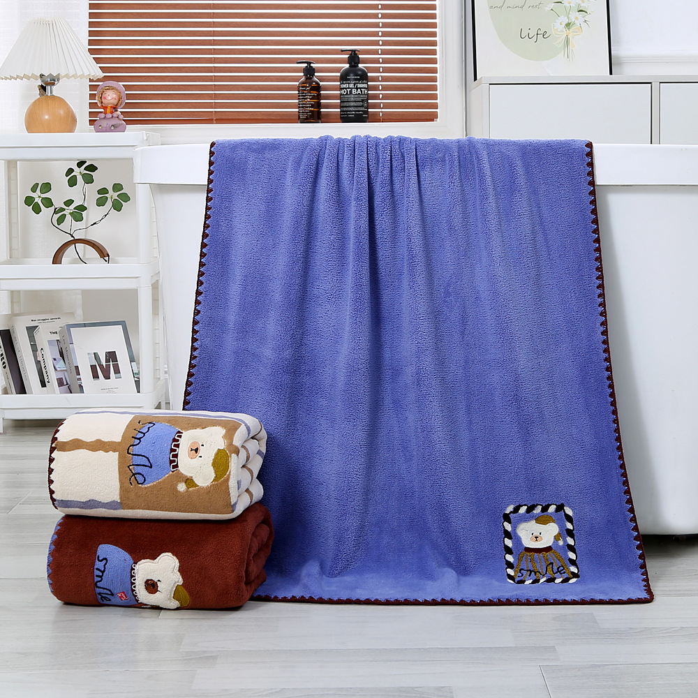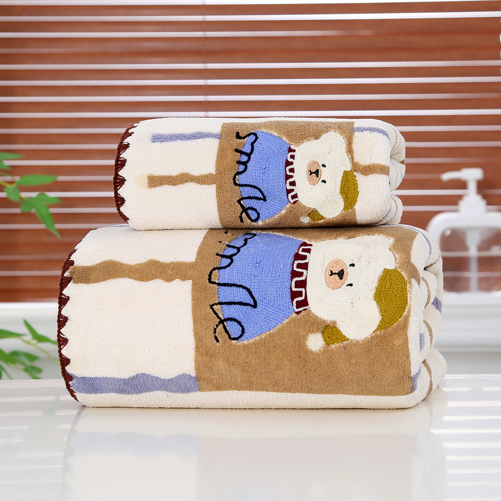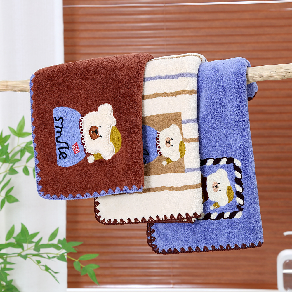 새로운 직조 산호 벨벳 후크 자수 만화 귀여운 곰 홈 대학생 기숙사 개학을위한 두꺼운 수건