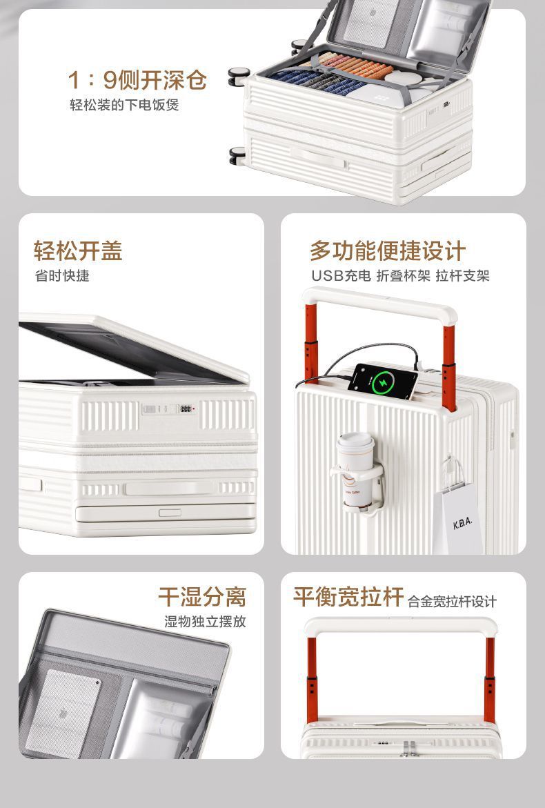 새로운 딥 웨이브 대용량 가방 두꺼운 다기능 측면 개방형 커버 트롤리 케이스 20 여성용 보드 가방 비밀번호스토어 가기