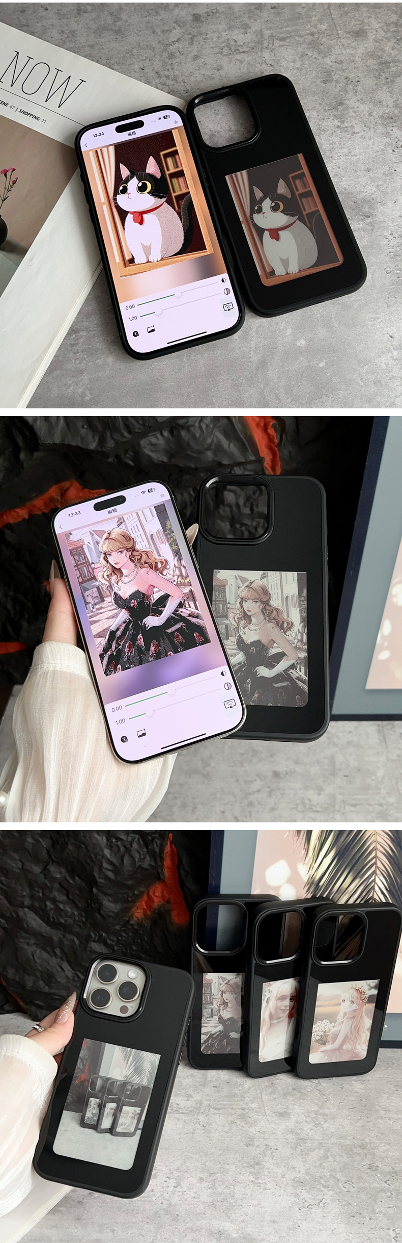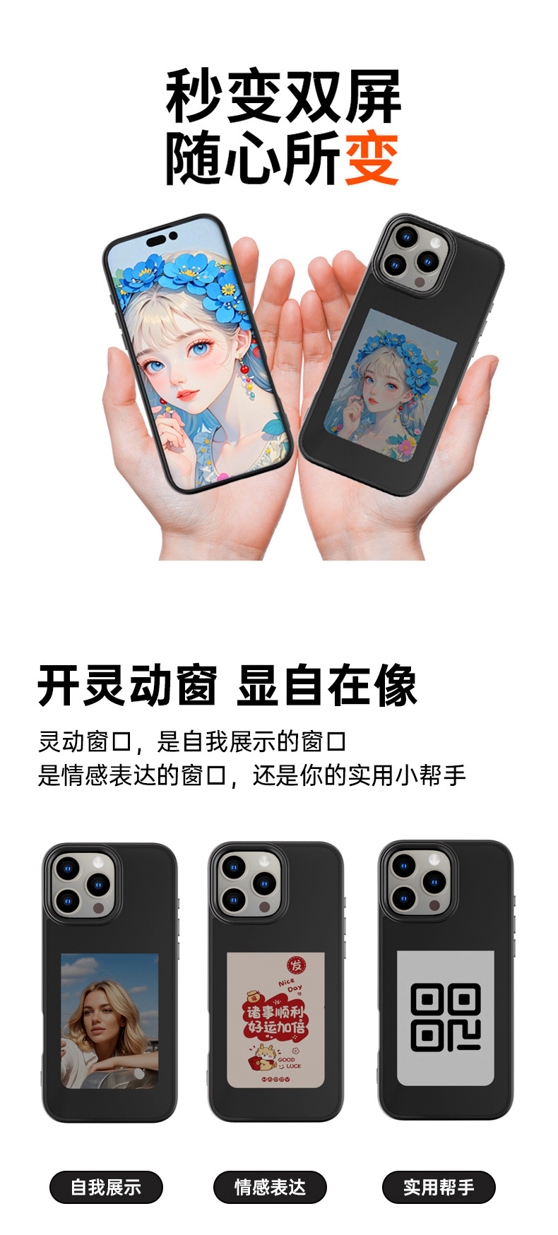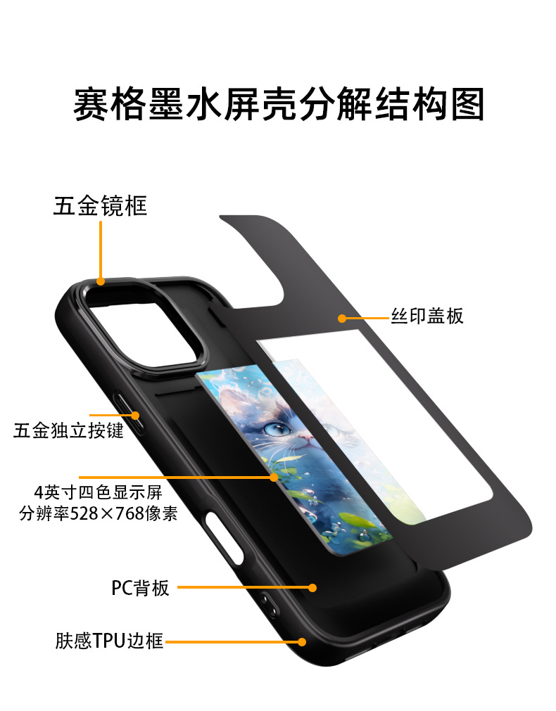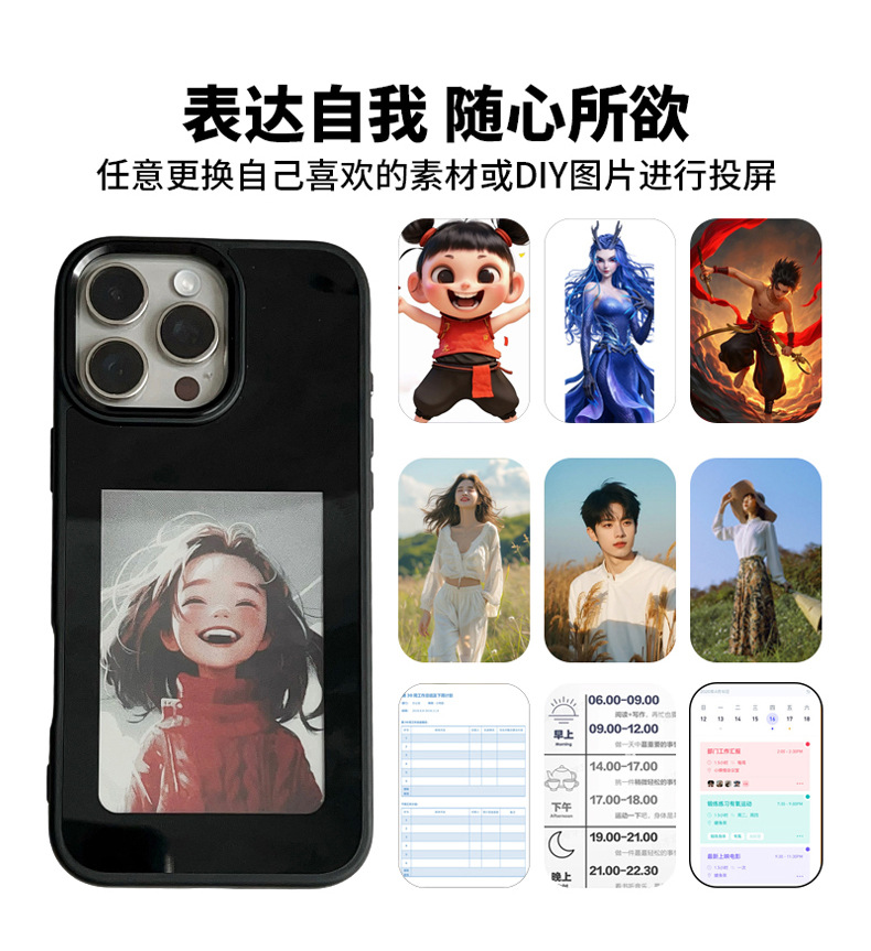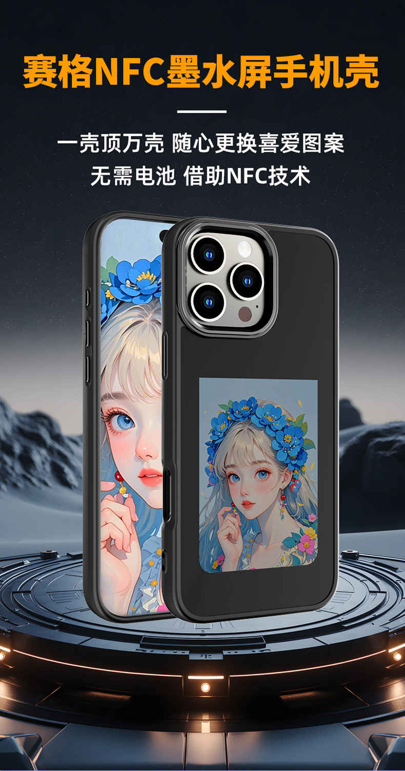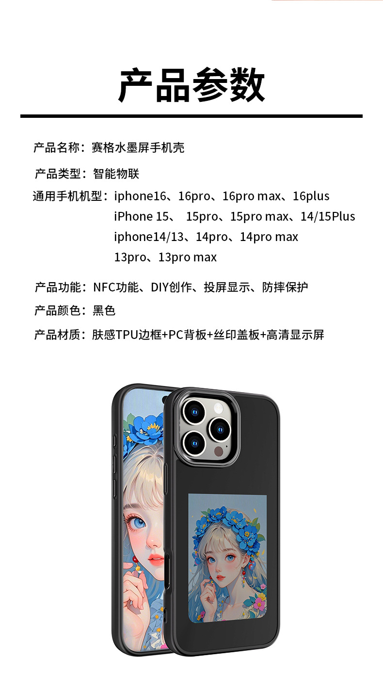 iPhone16promax 휴대 전화 케이스에 적합 잉크 스크린 NFC HD 4 색 Ai 프로젝션 스크린 특수 DIY 낙하 방지 쉘스토어 가기