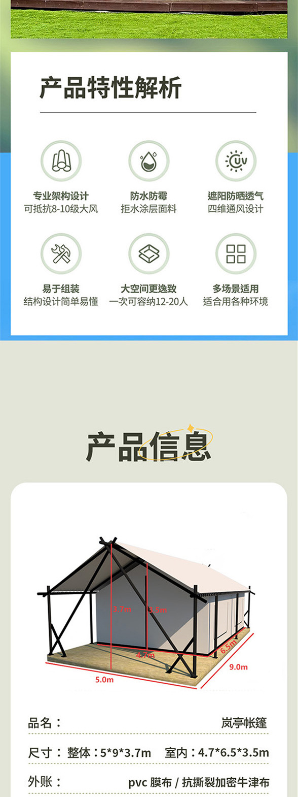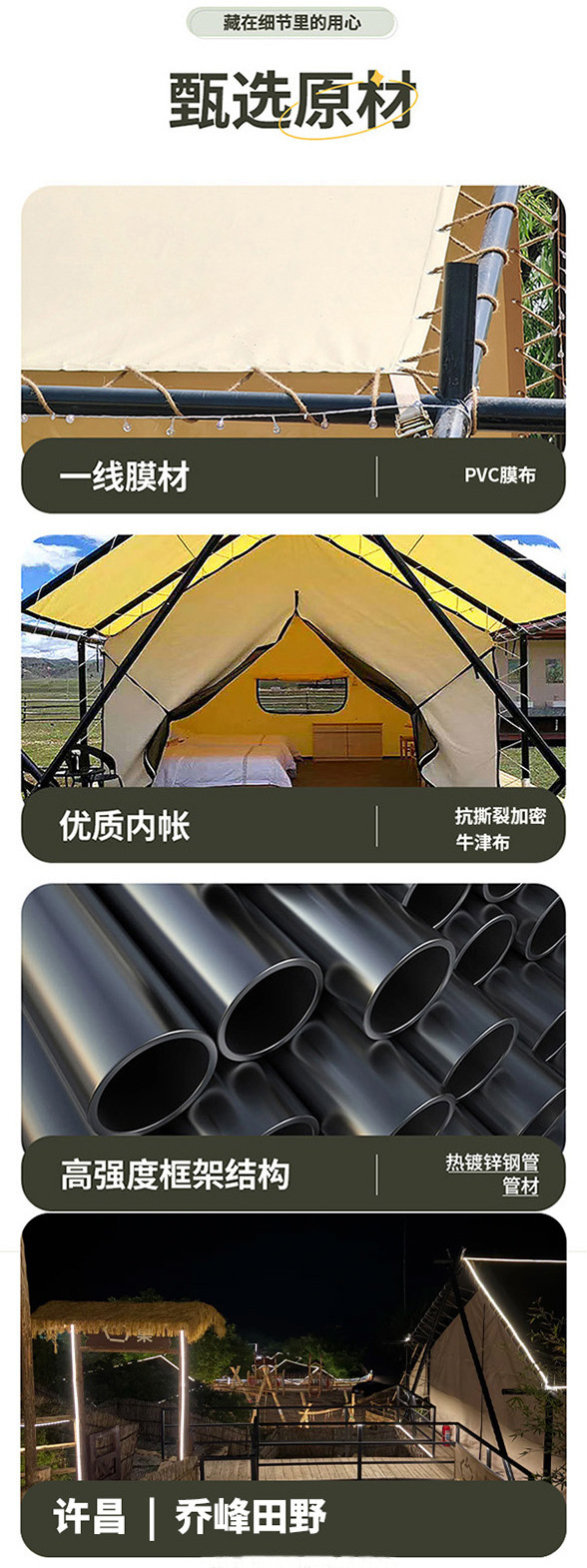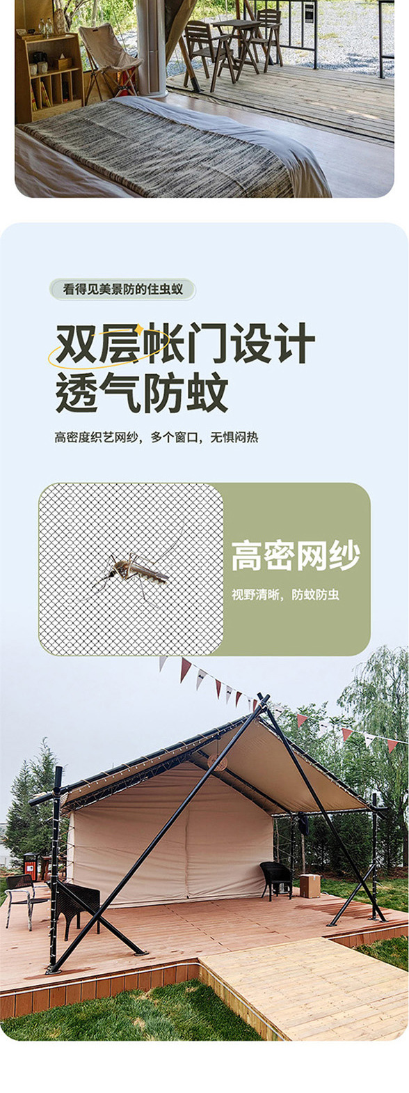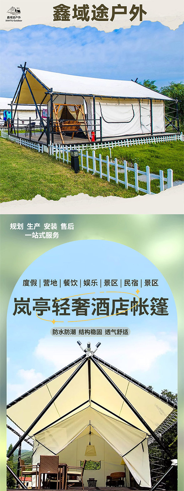 4* 6m 이중 캠핑 호텔 텐트, 두꺼운 방풍 및 방수 기능, 경치 좋은 지역에서의 휴가, 케이터링, 숙박 및 야외 럭셔리 텐트스토어 가기