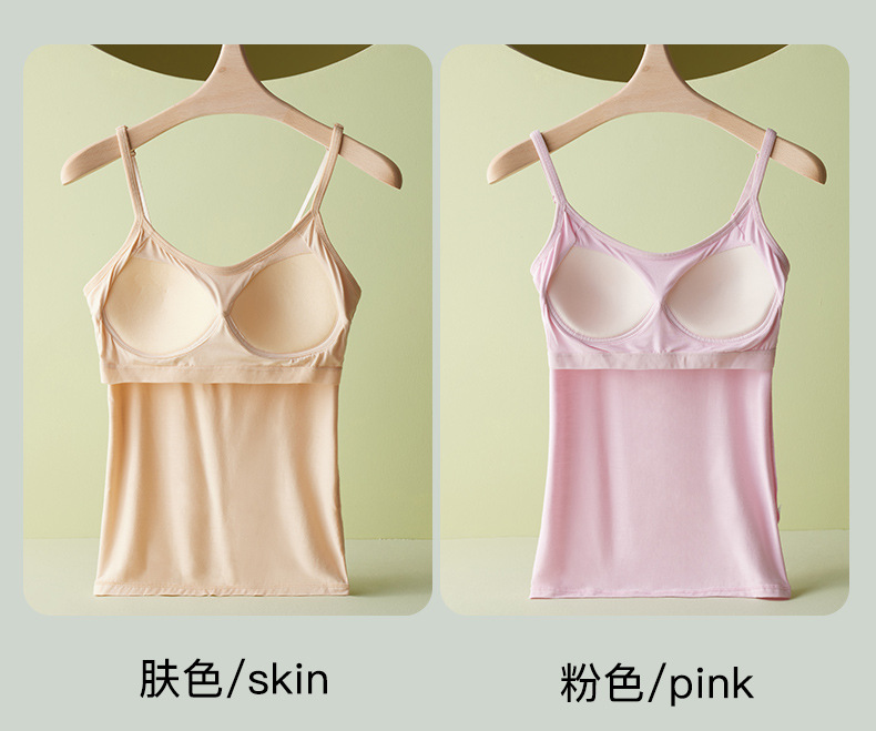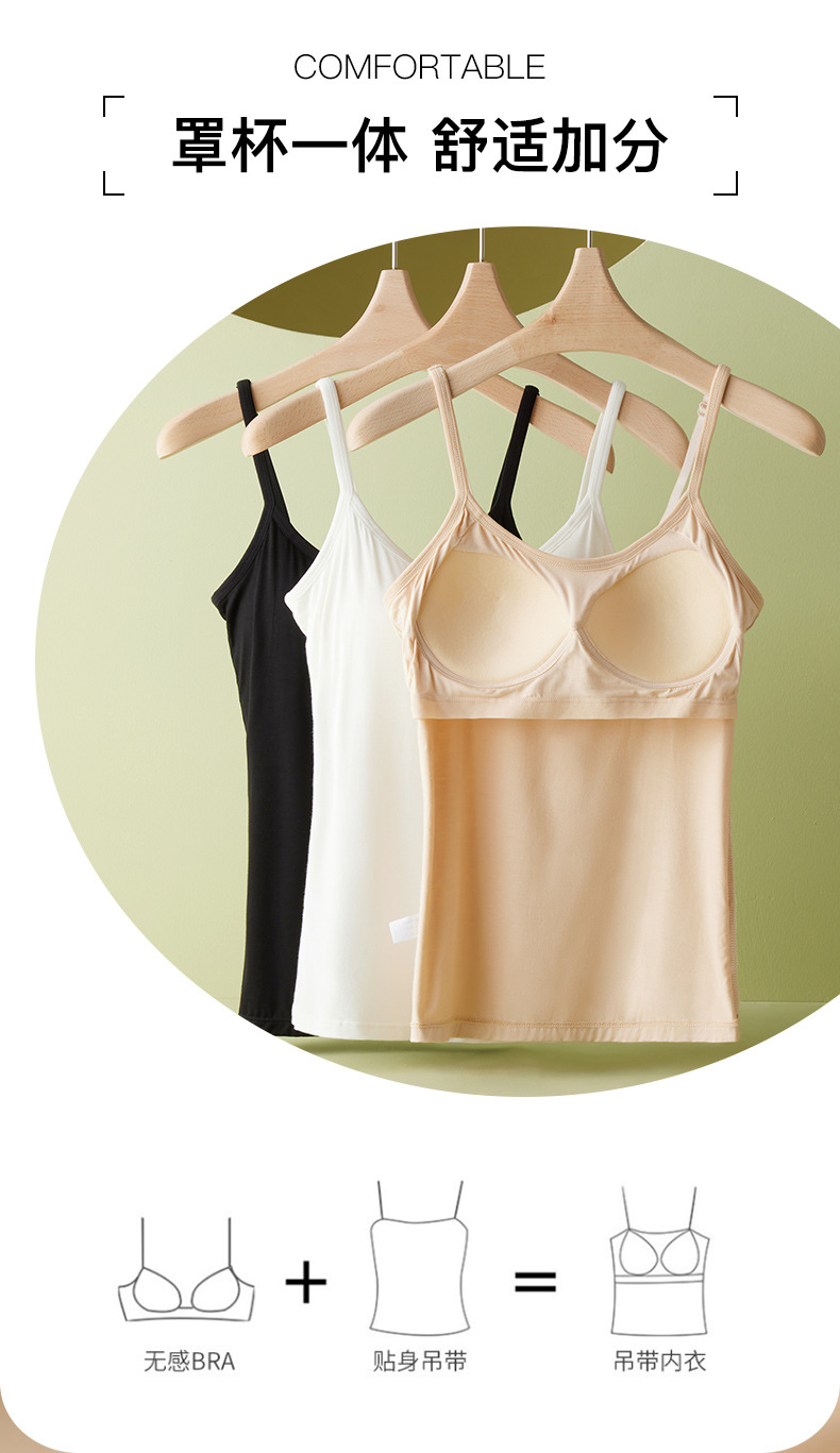 여성용 가슴 패드가 있는 모달 아우터 캐미솔, 얇고 통기성이 좋으며 슬림하고 아름다운 등 올인원 대형 속옷스토어 가기