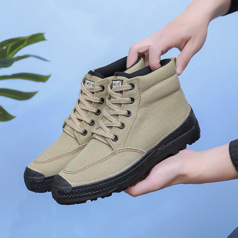 봄 싱글 슈즈, 야외 스포츠 하이탑 슈즈, 내마모성 미끄럼 방지 건설 현장 작업화, 고무 밑창 고무 슈즈, 노동 보호 남성용 신발스토어 가기