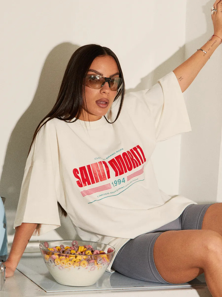 100% 코튼 반팔 티셔츠 2025 여름 유럽과 미국 스타일의 서양식 맞춤형 문자 인쇄 여성을위한 느슨한 슬리밍 탑스토어 가기