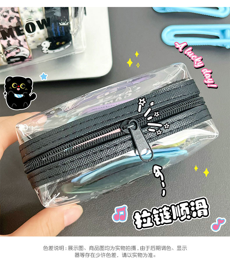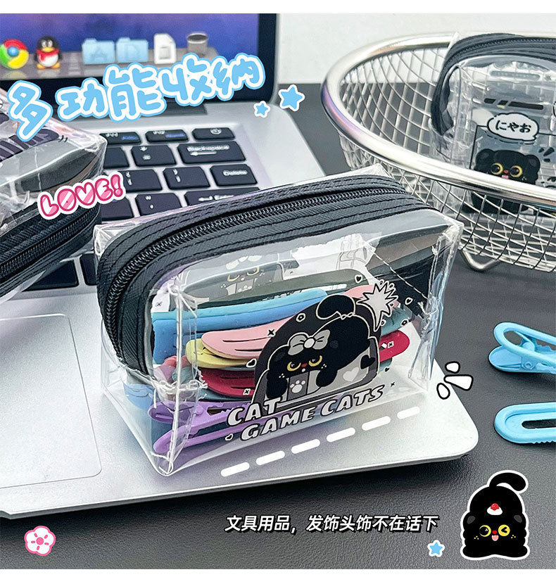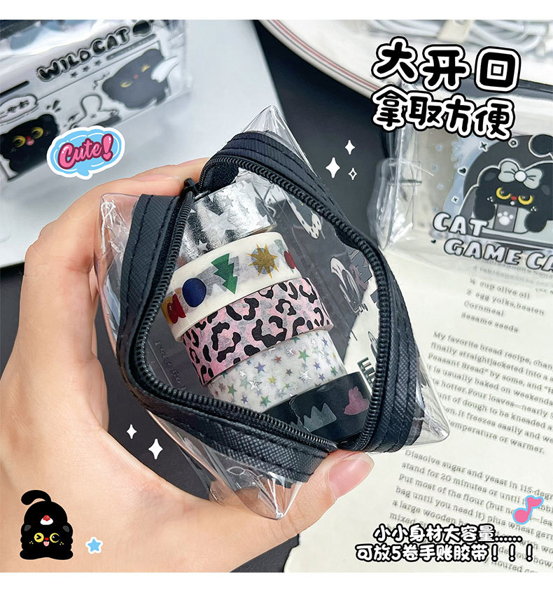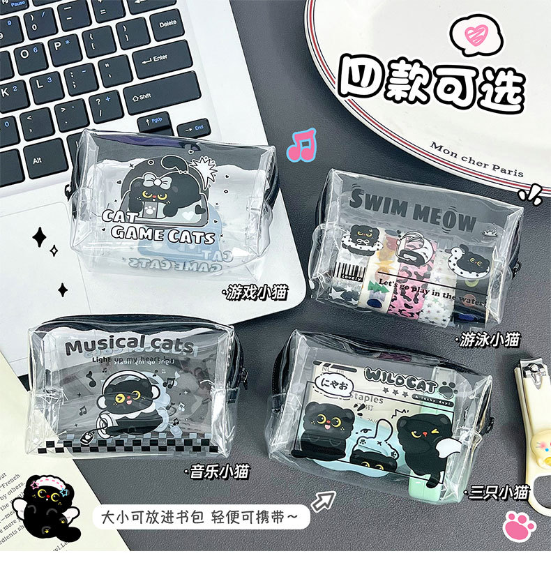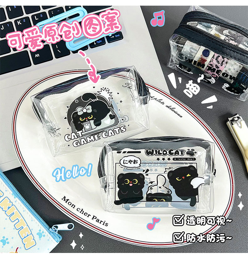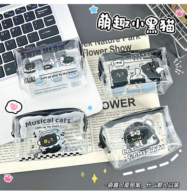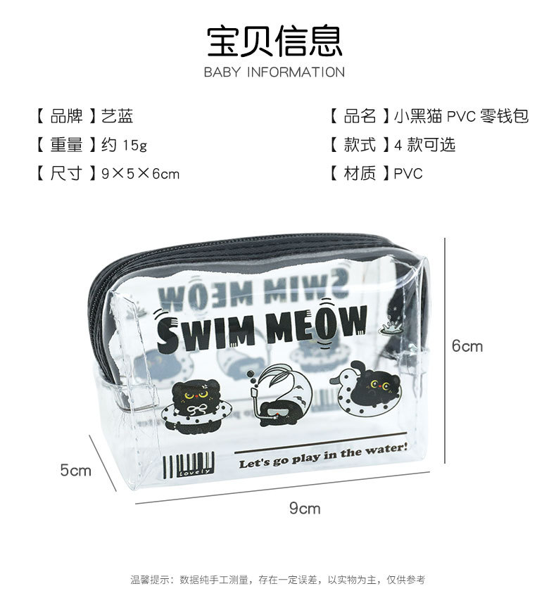 검은 새끼 고양이 동전 지갑 스타일 투명 동전 가방 어린이 열쇠 동전 보관 가방 귀여운 미니 지갑