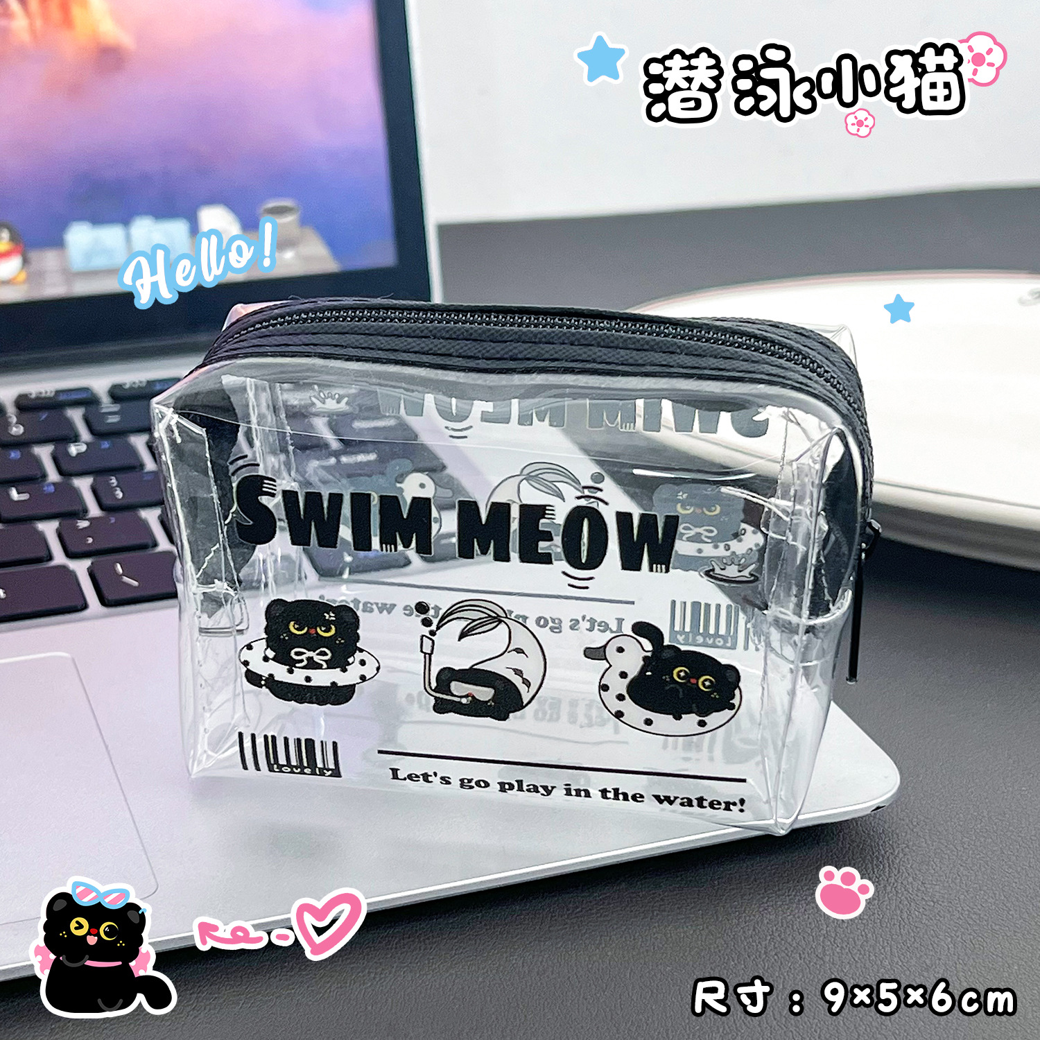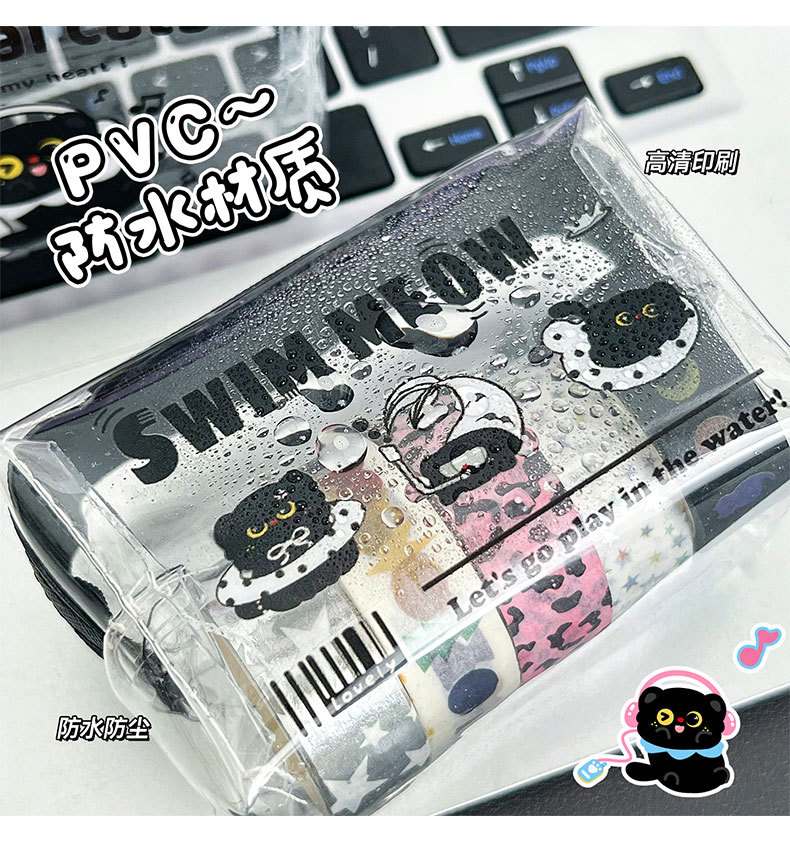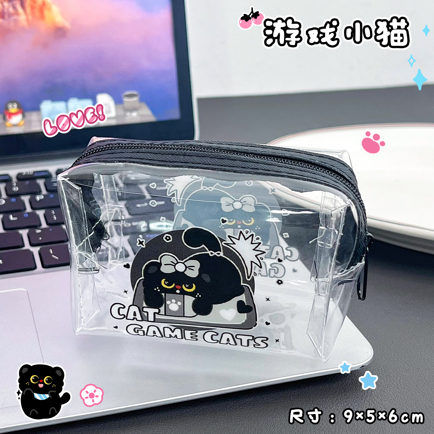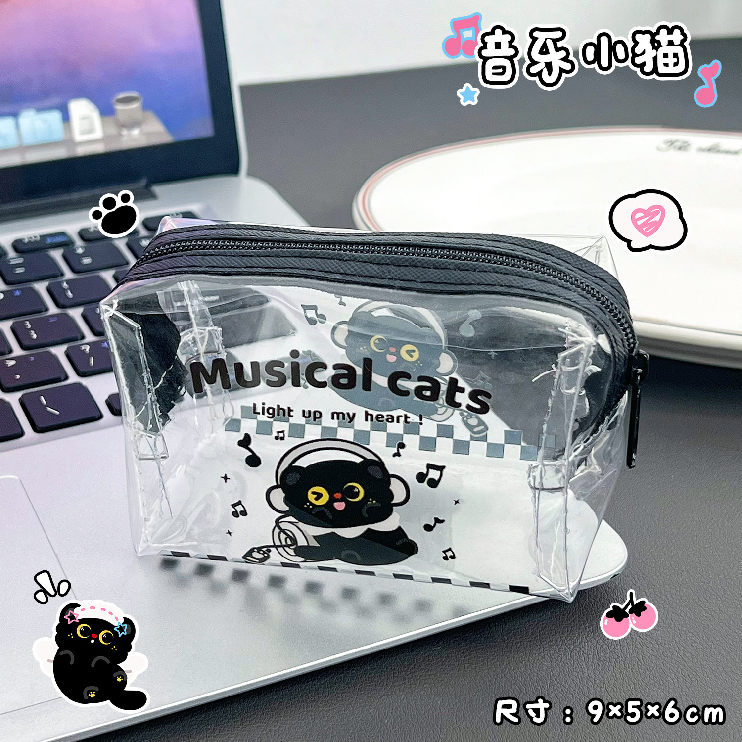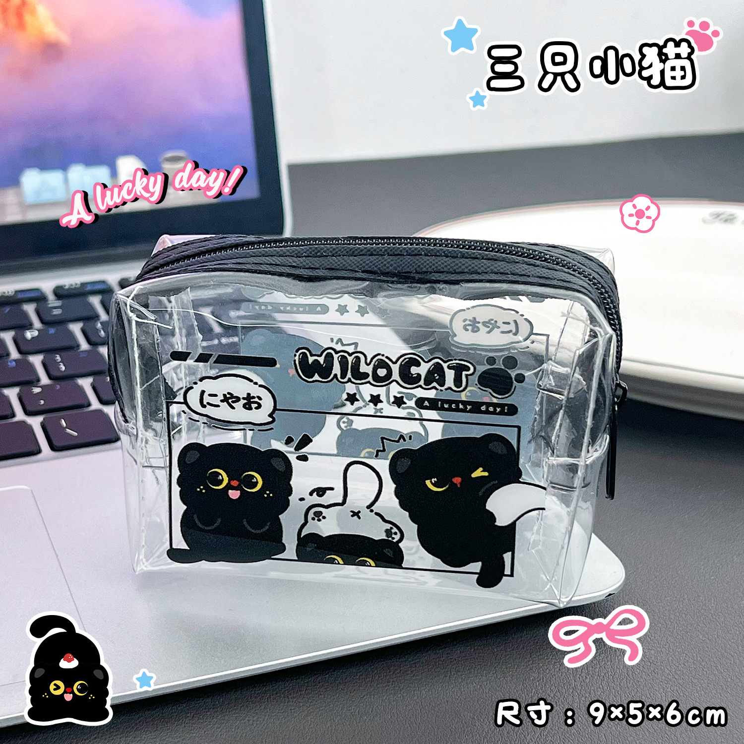 검은 새끼 고양이 동전 지갑 스타일 투명 동전 가방 어린이 열쇠 동전 보관 가방 귀여운 미니 지갑
