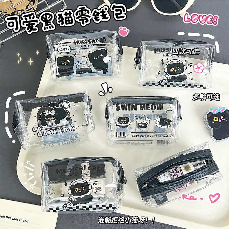 검은 새끼 고양이 동전 지갑 스타일 투명 동전 가방 어린이 열쇠 동전 보관 가방 귀여운 미니 지갑스토어 가기