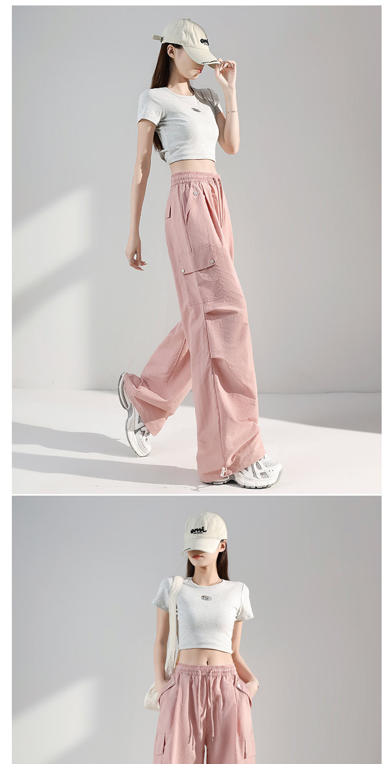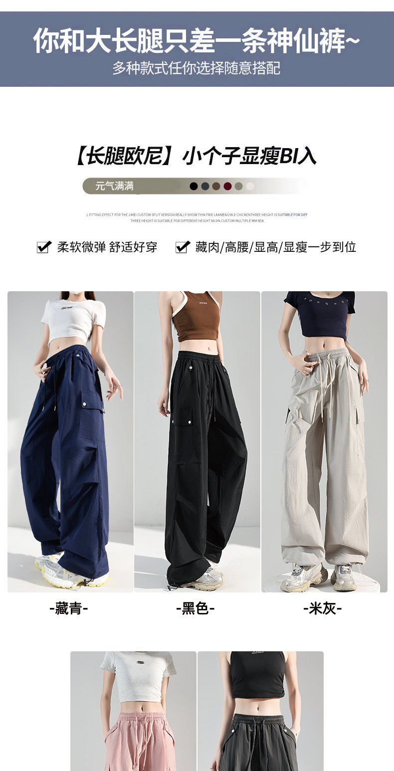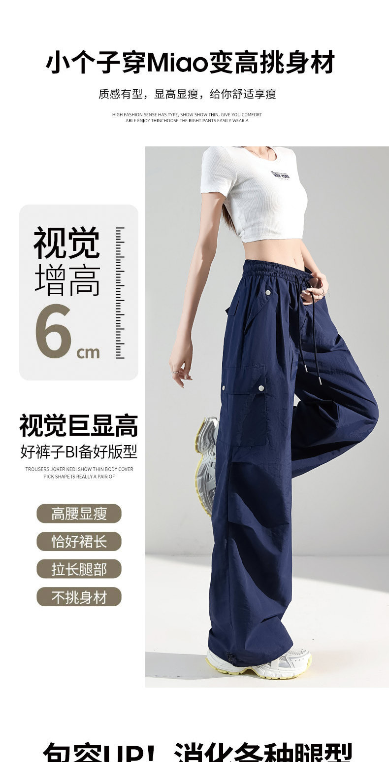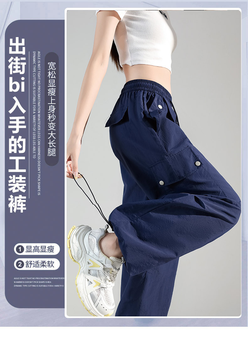 여성용 네이비 블루 카고 팬츠 2025 여름 얇은 캐주얼 속건성 스포츠 바지 루즈한 미국식 대형 충전 바지