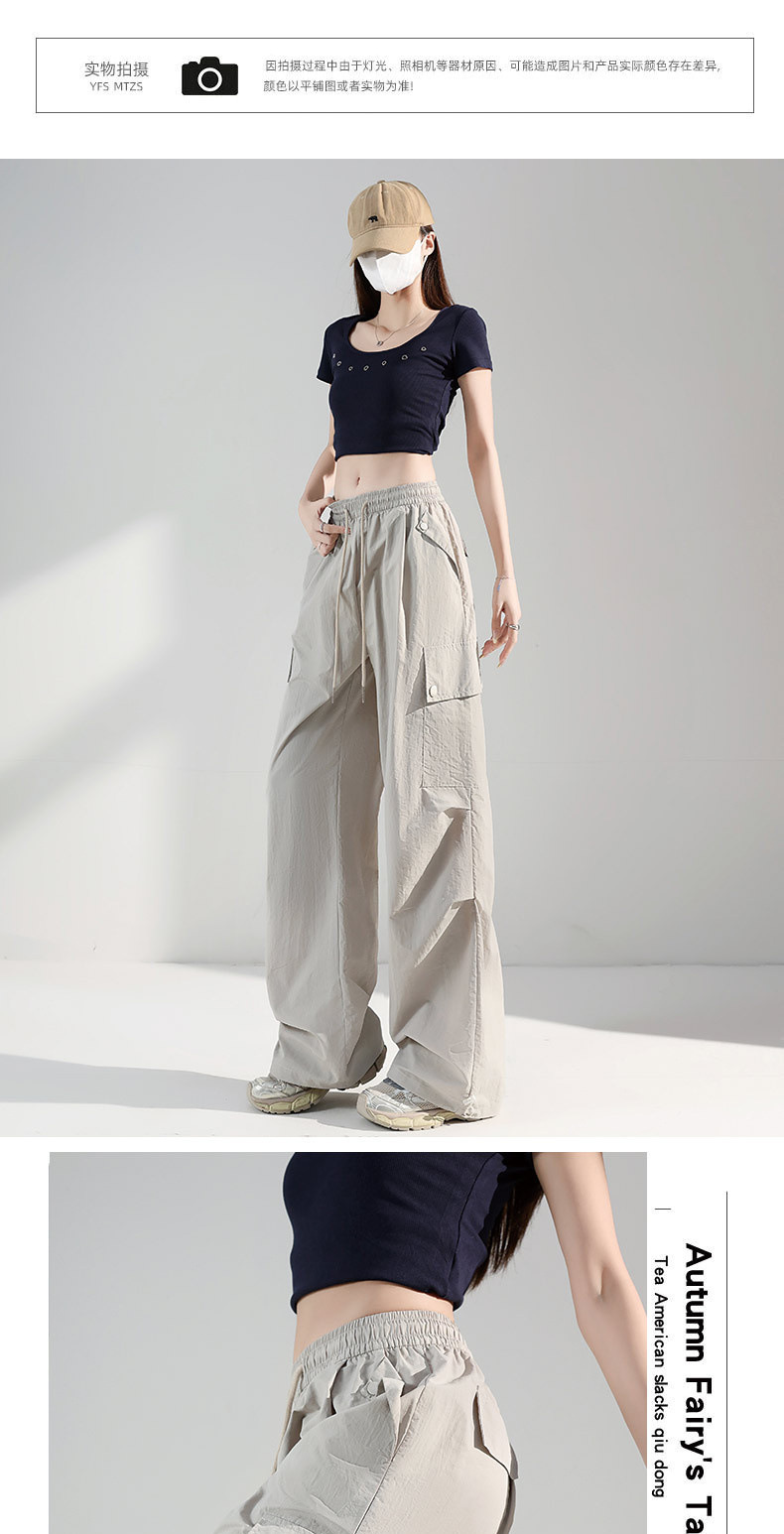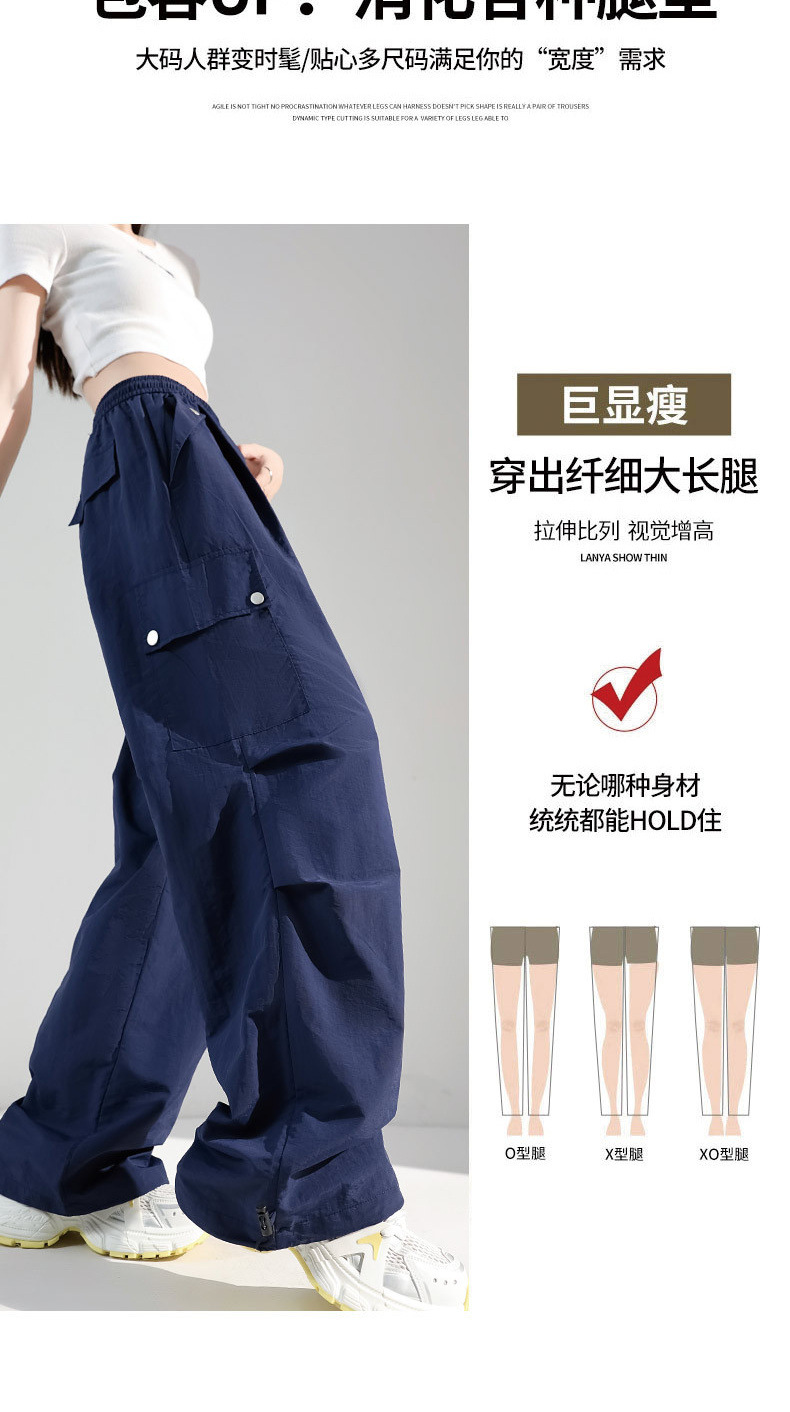 여성용 네이비 블루 카고 팬츠 2025 여름 얇은 캐주얼 속건성 스포츠 바지 루즈한 미국식 대형 충전 바지스토어 가기