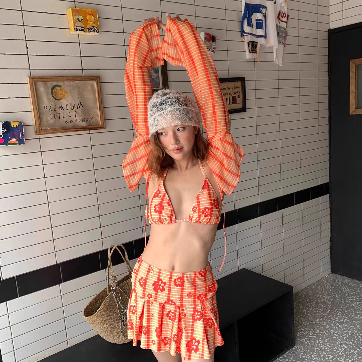 소스 제조업체 인터넷 연예인 고급 비키니 세트 꽃무늬 섹시한 수영복 여성 휴가 해변 온천 수영복스토어 가기