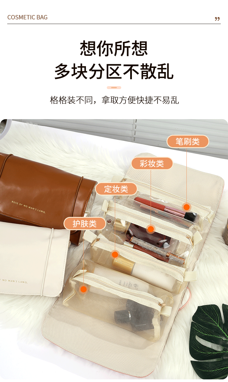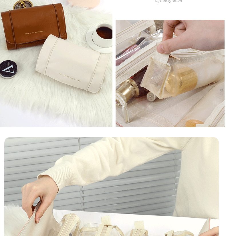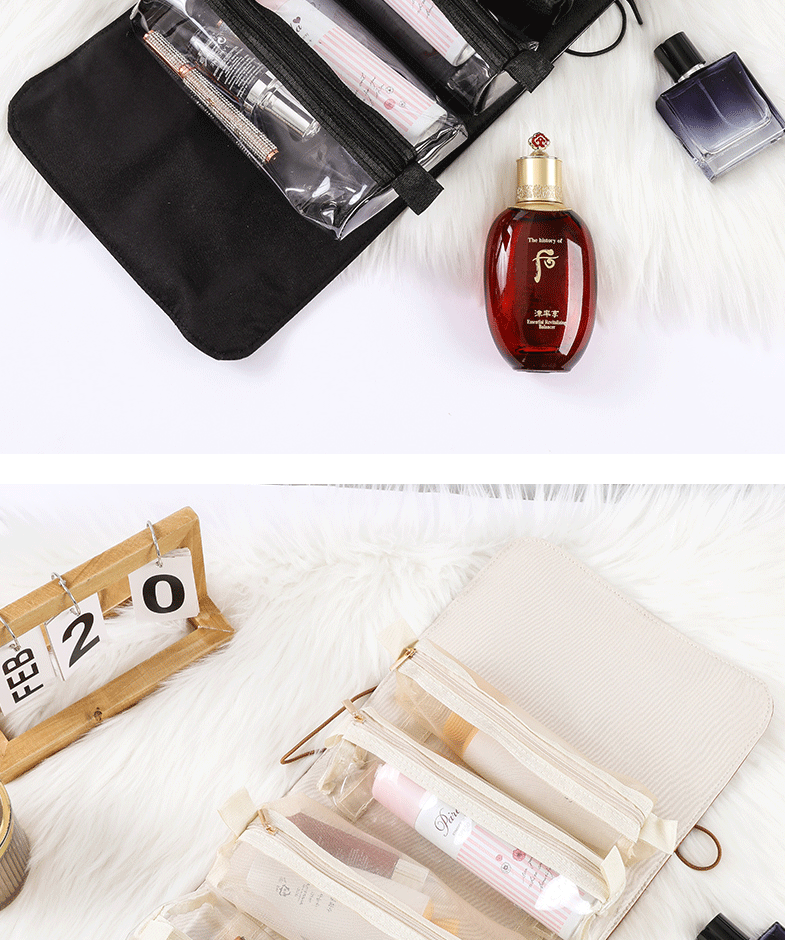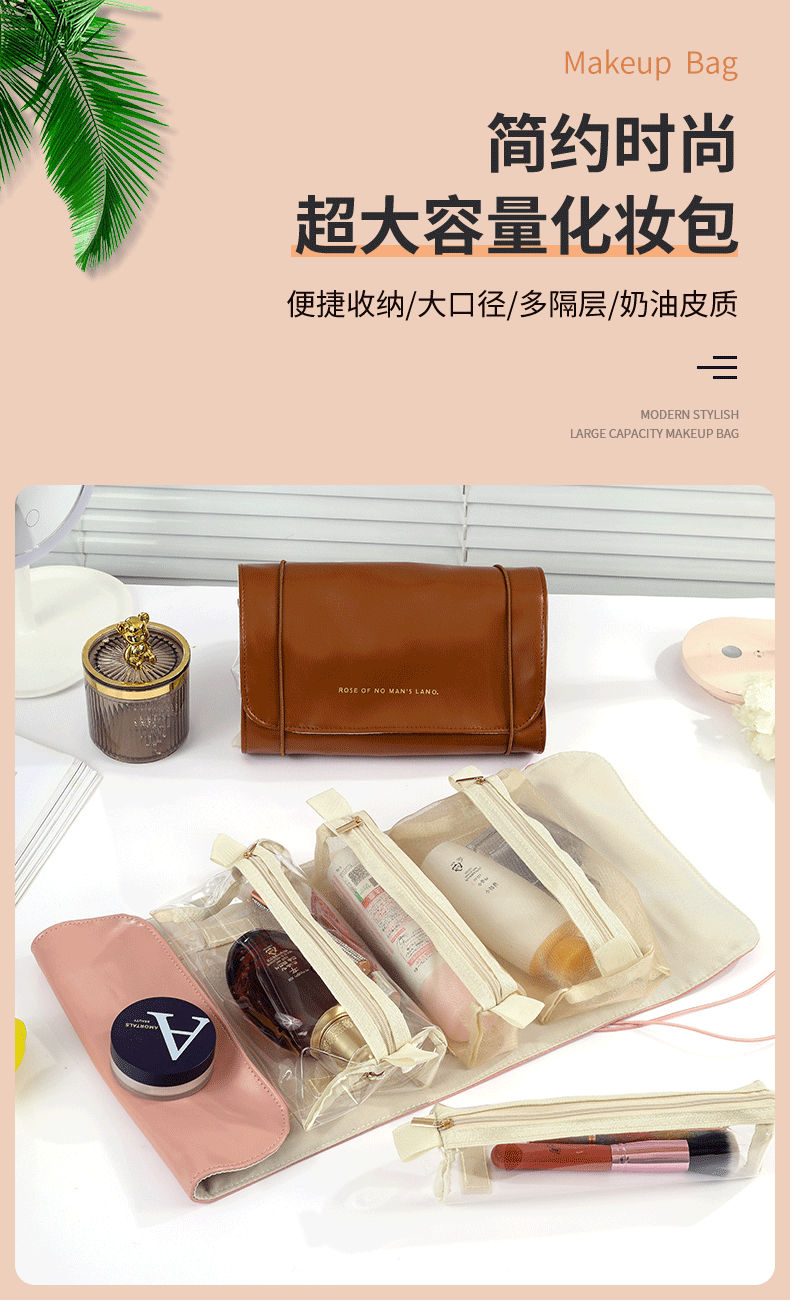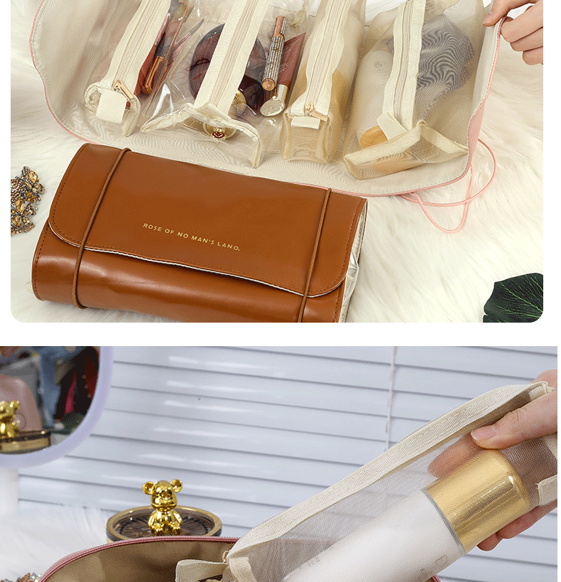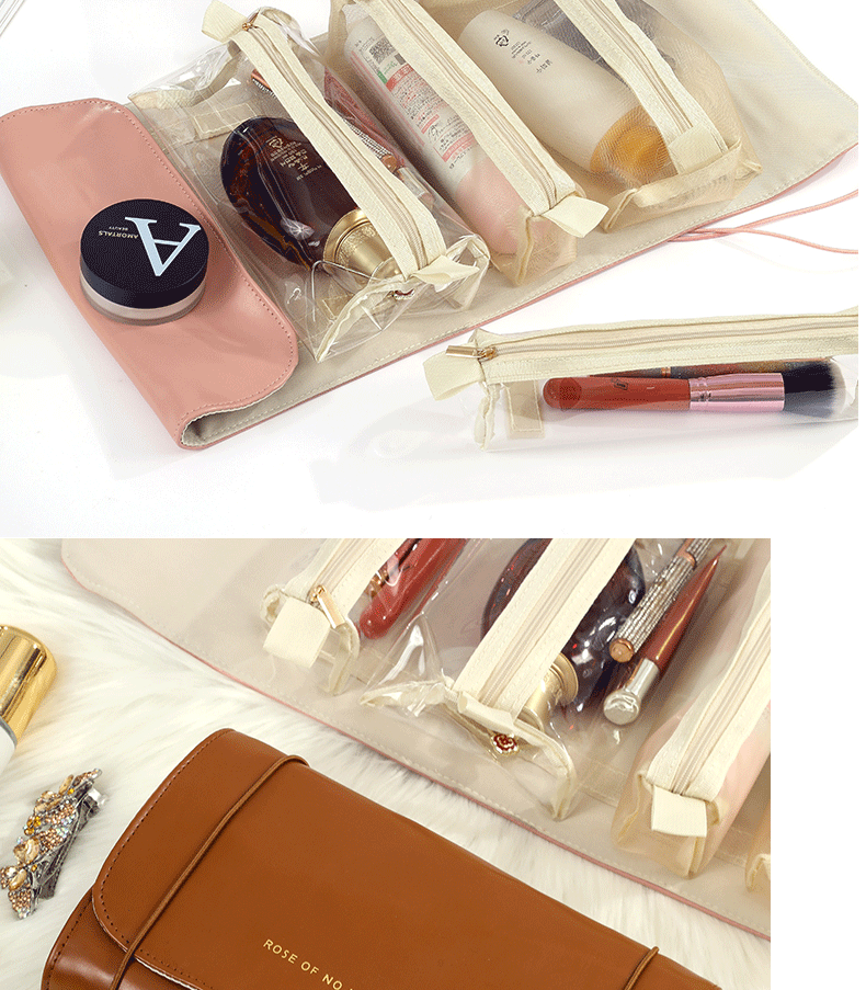 맞춤형 가죽 화장품 가방, 간단한 여행용 스킨 케어 제품 세면 용품 가방, 탈착식 4-in-1 화장품 보관 가방스토어 가기