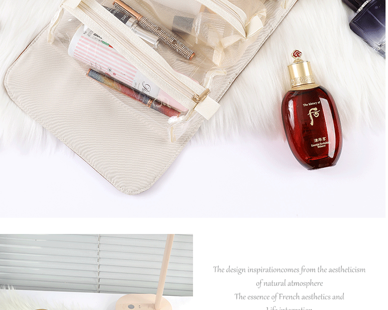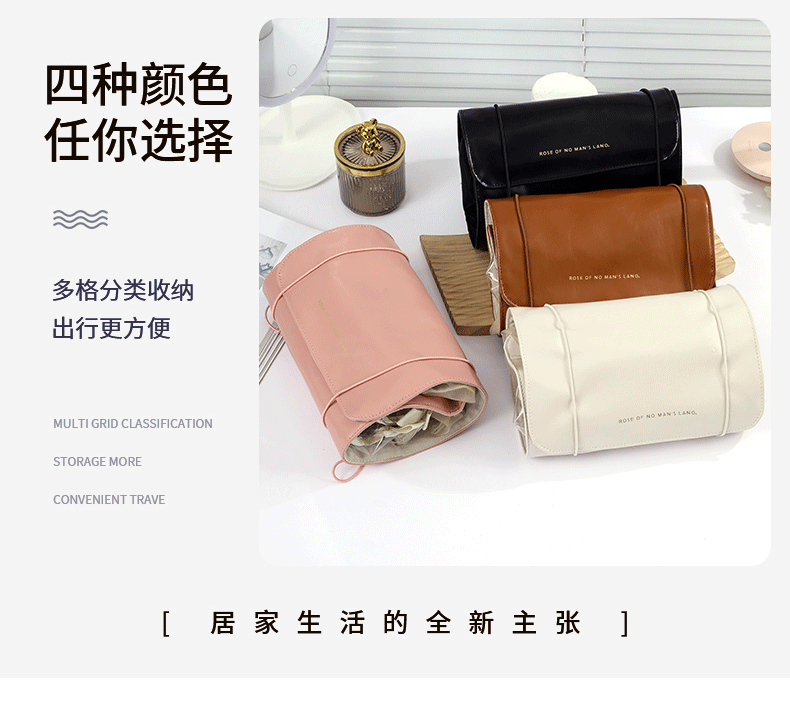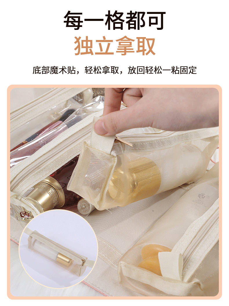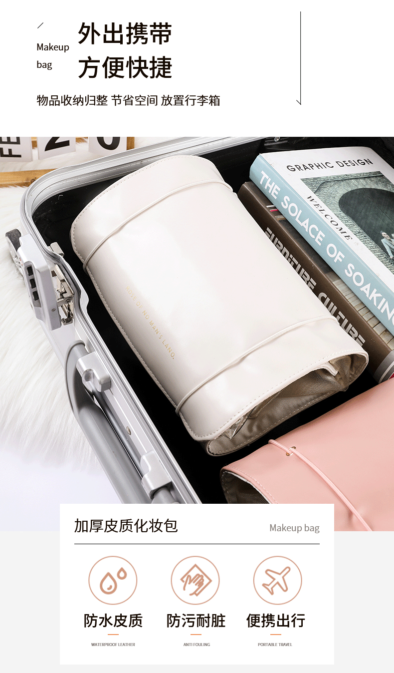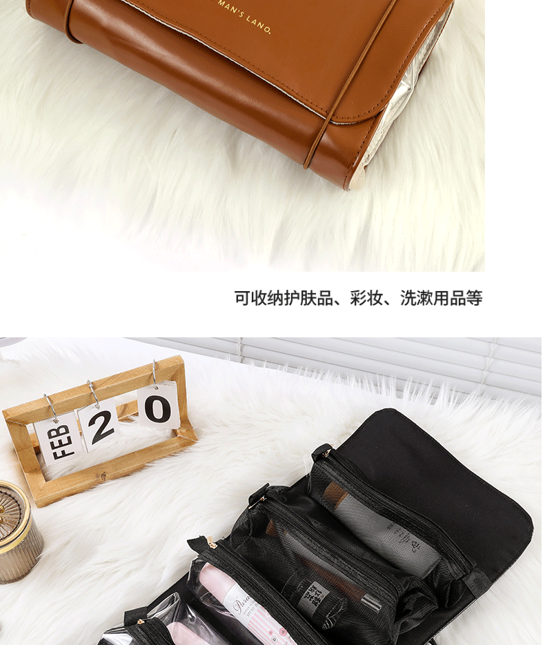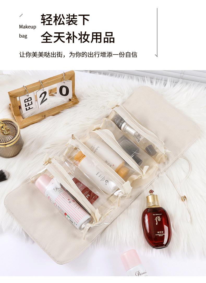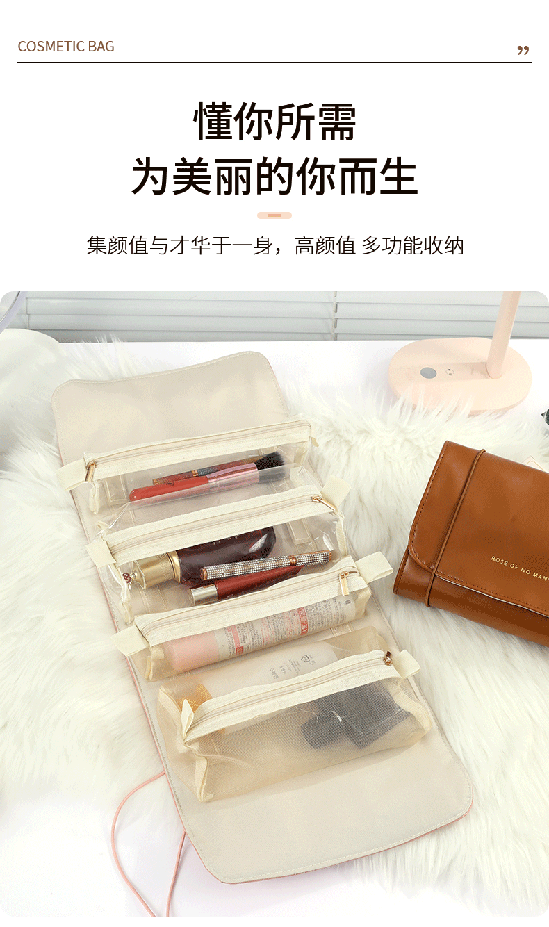 맞춤형 가죽 화장품 가방, 간단한 여행용 스킨 케어 제품 세면 용품 가방, 탈착식 4-in-1 화장품 보관 가방스토어 가기