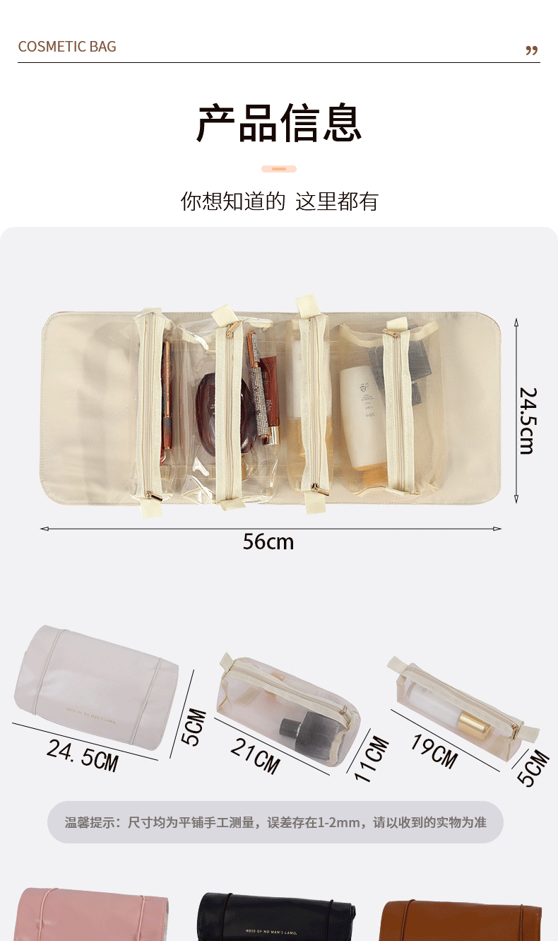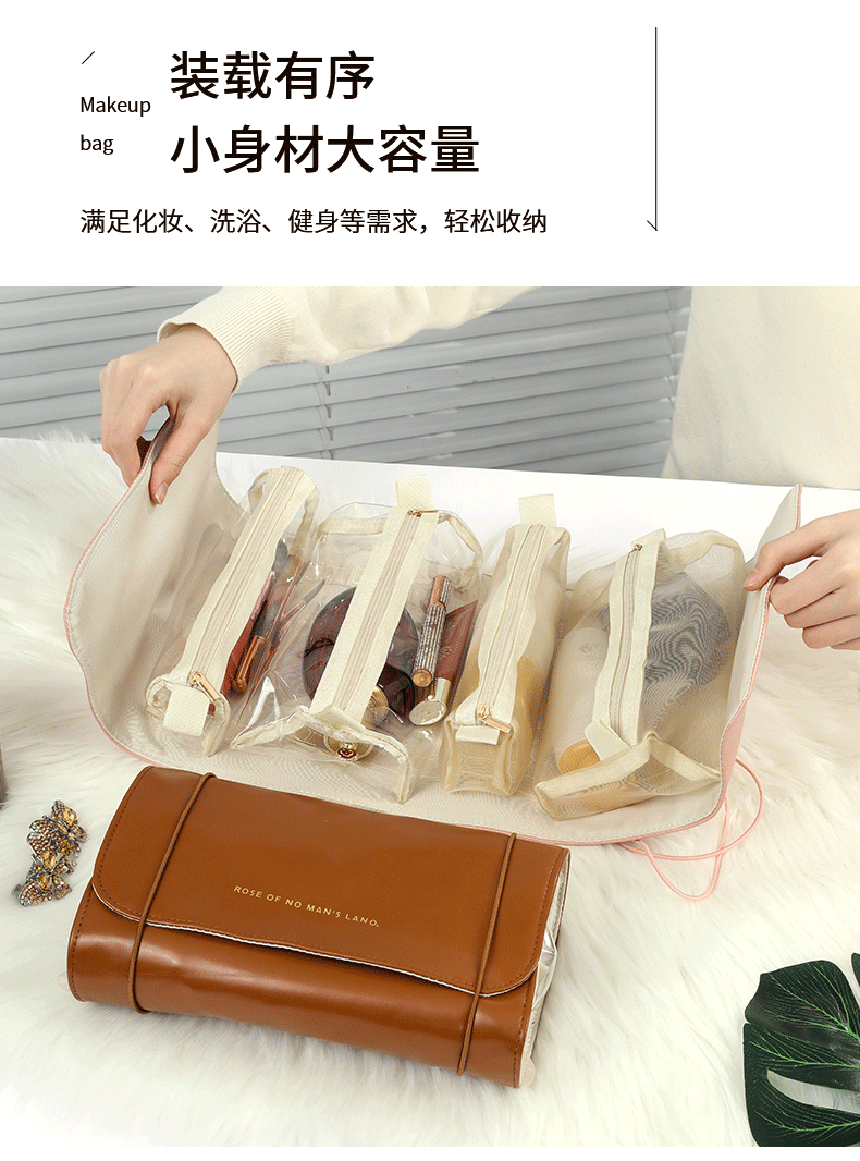 맞춤형 가죽 화장품 가방, 간단한 여행용 스킨 케어 제품 세면 용품 가방, 탈착식 4-in-1 화장품 보관 가방