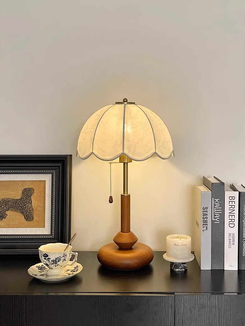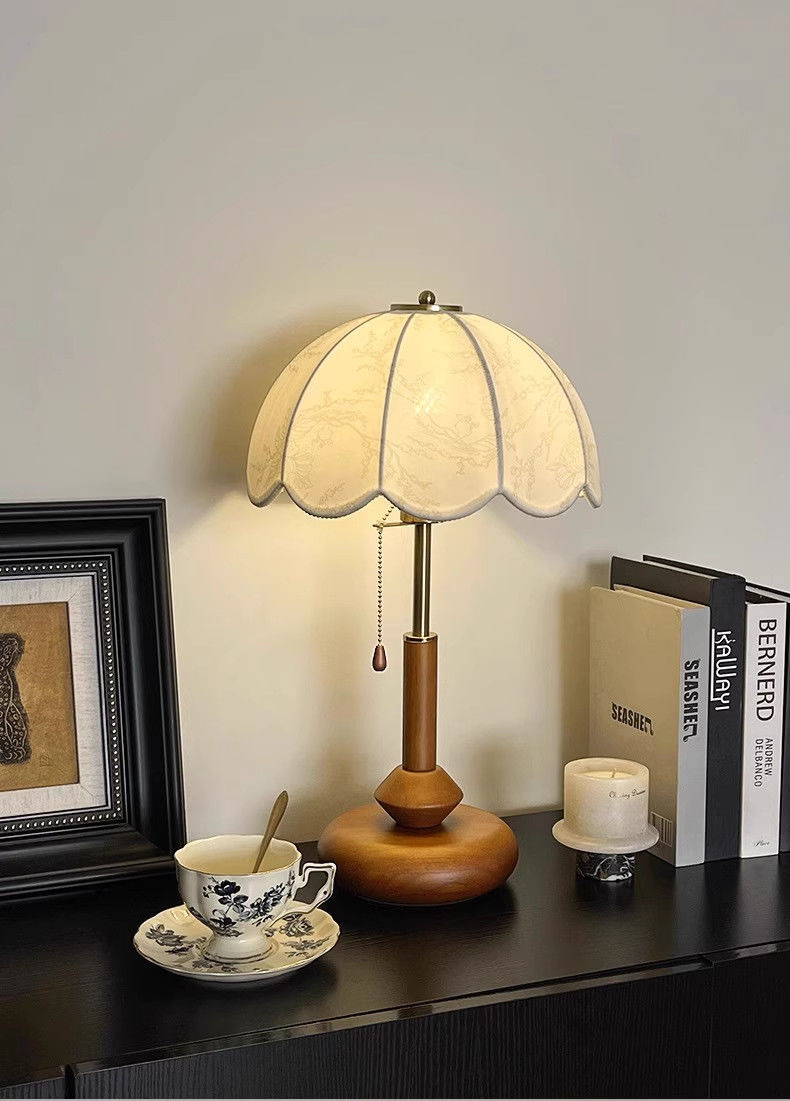 중세 스타일 단단한 나무 인쇄 패브릭 테이블 램프 거실 침실 머리맡 장식 테이블 램프 B&B 호텔 연구 눈 보호 램프