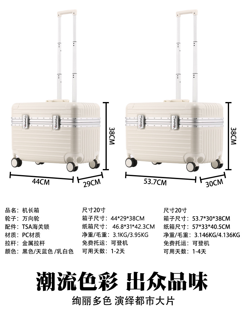 20inch 미니 소형 캡틴 박스, 튼튼하고 내구성이 뛰어나며 낙하 방지 및 방수 트롤리 케이스, 탑승 가능하고 매우 멋진 여행 가방스토어 가기