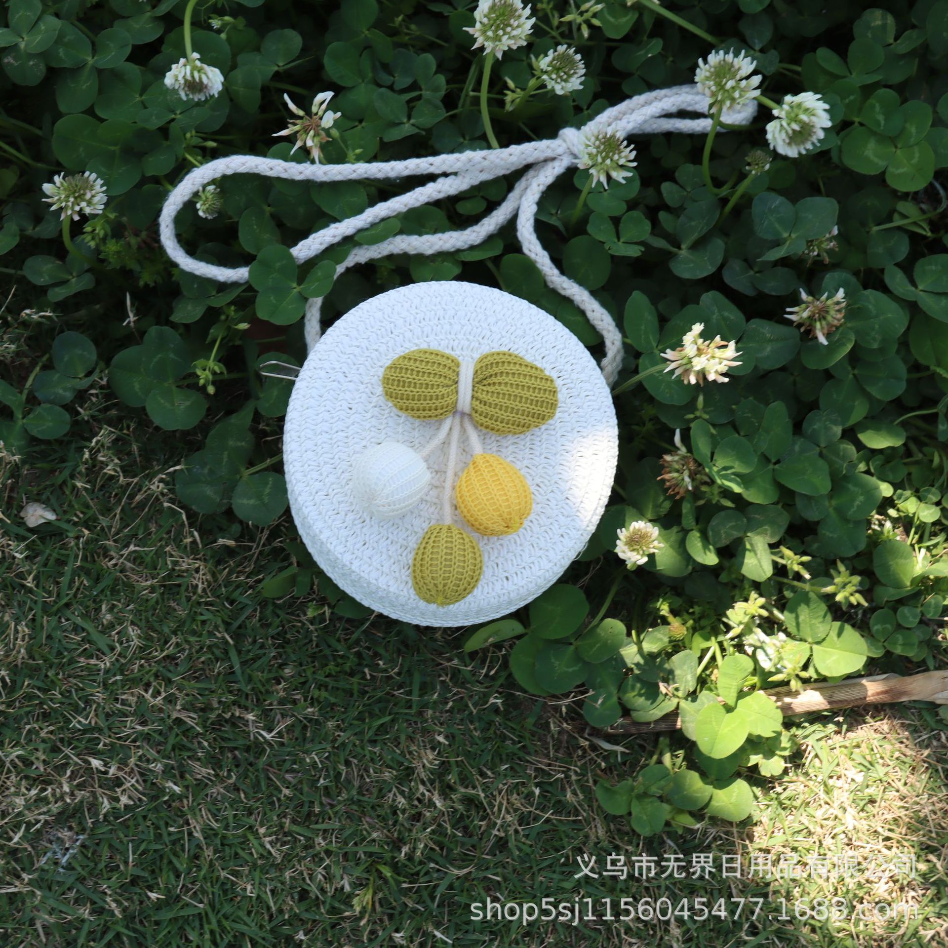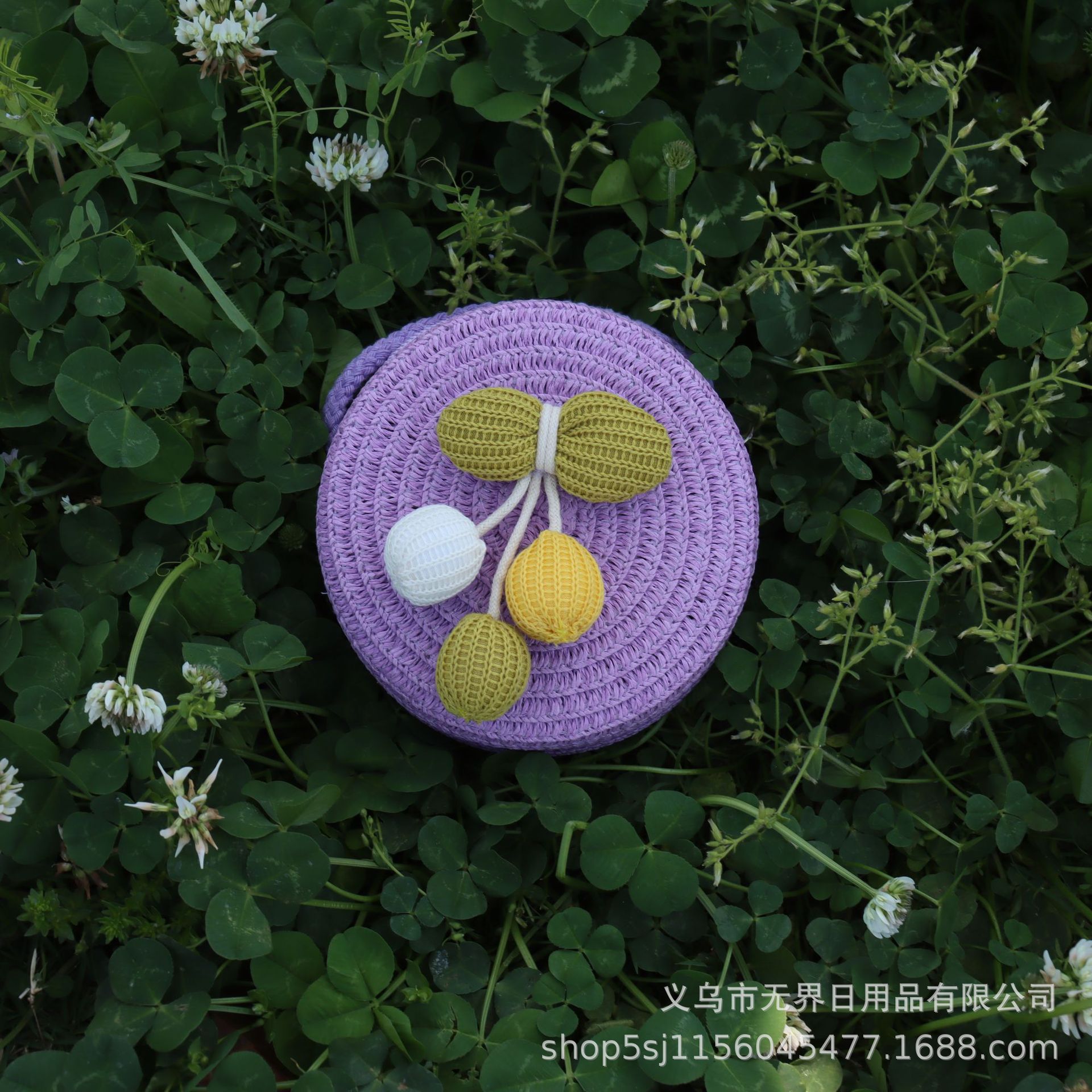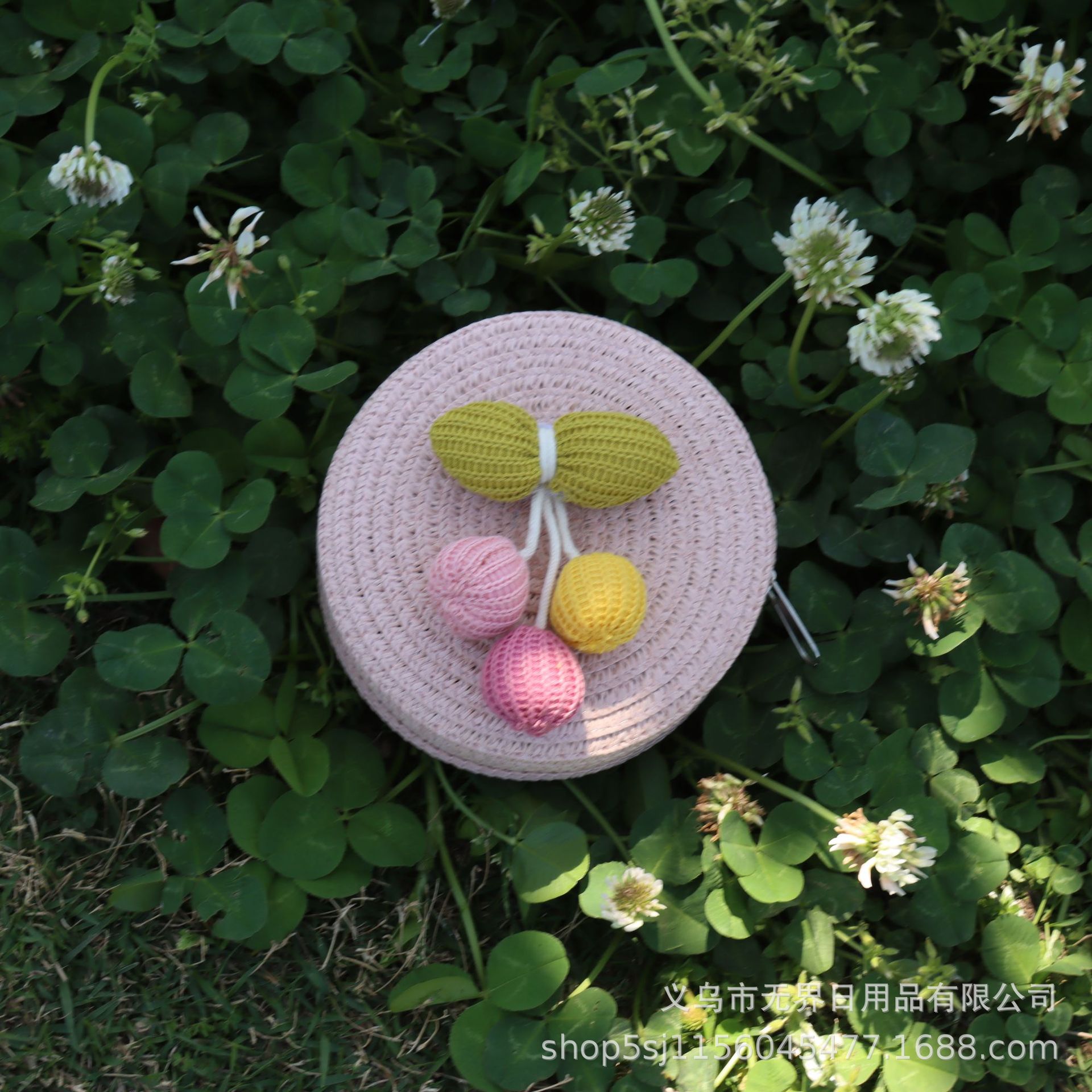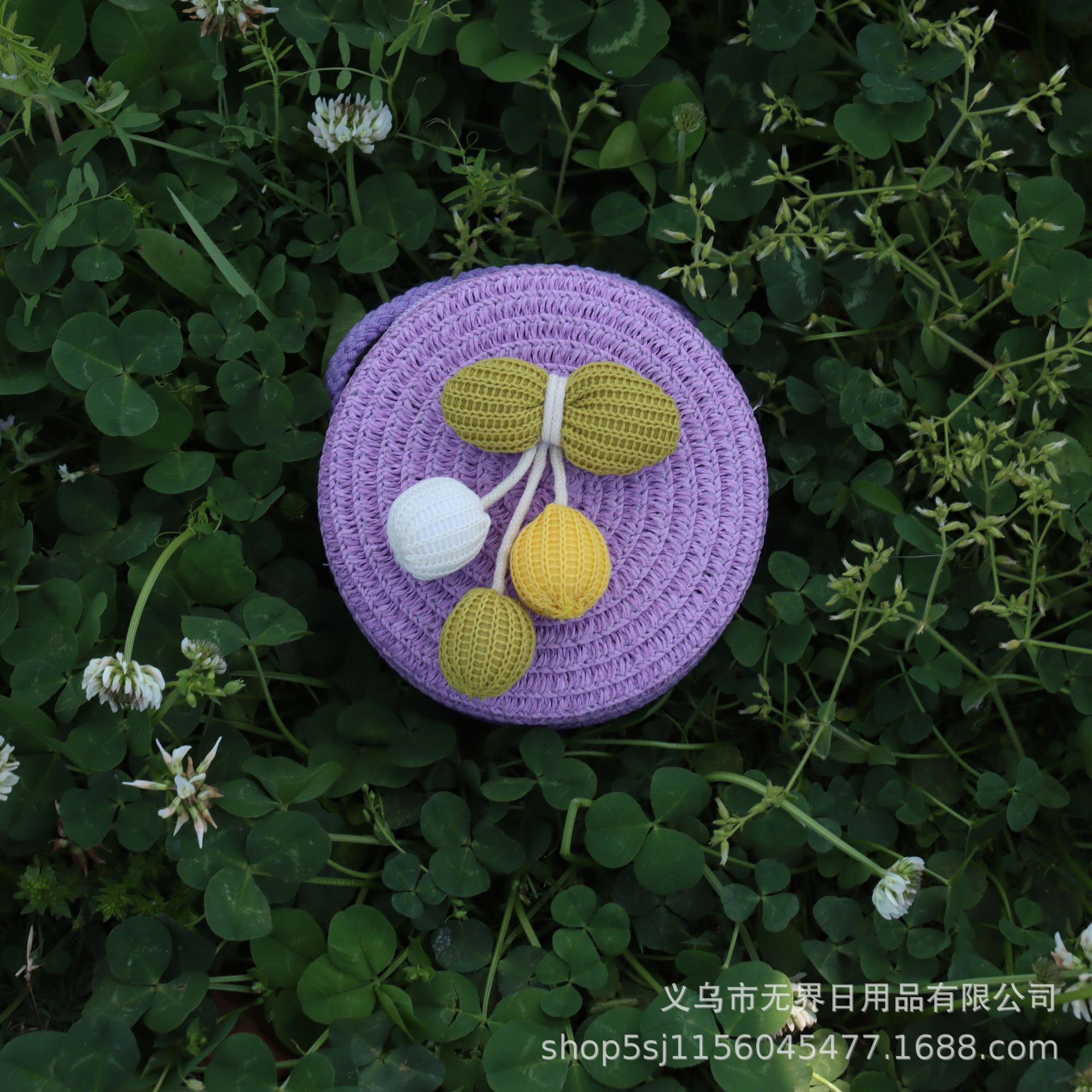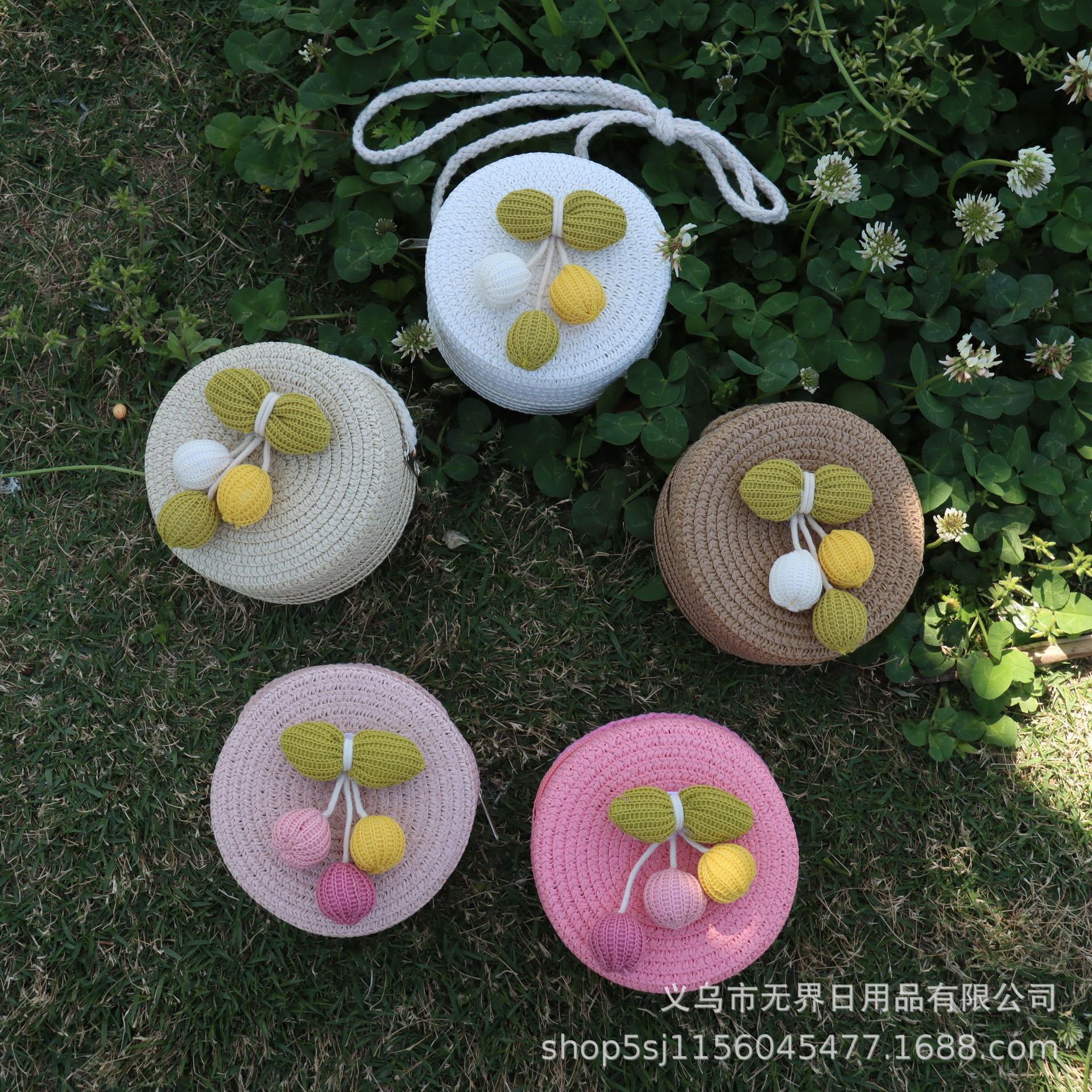 새로운 어린이 밀짚 라운드 가방 인터넷 연예인 스타일 어린이 동전 지갑 크로스 바디 가방 직조 공장 직접 판매 여행 도매