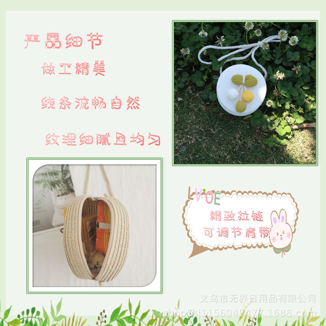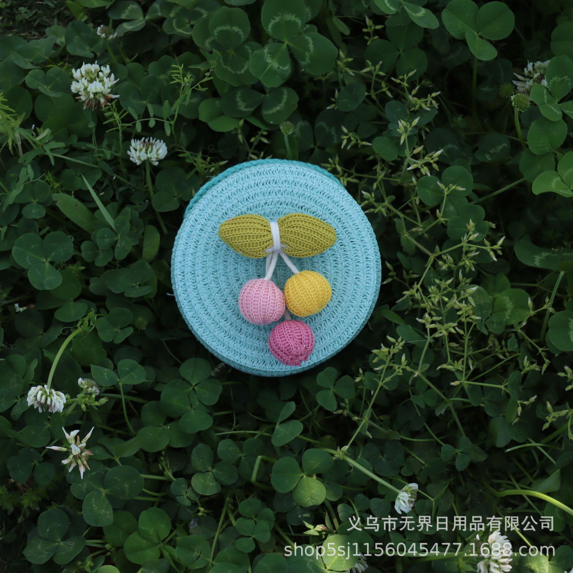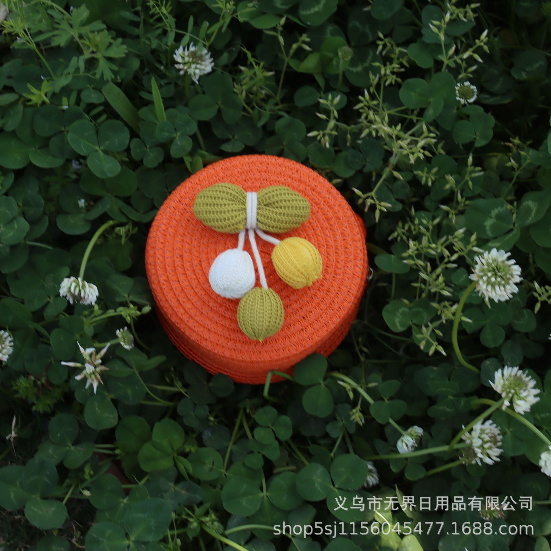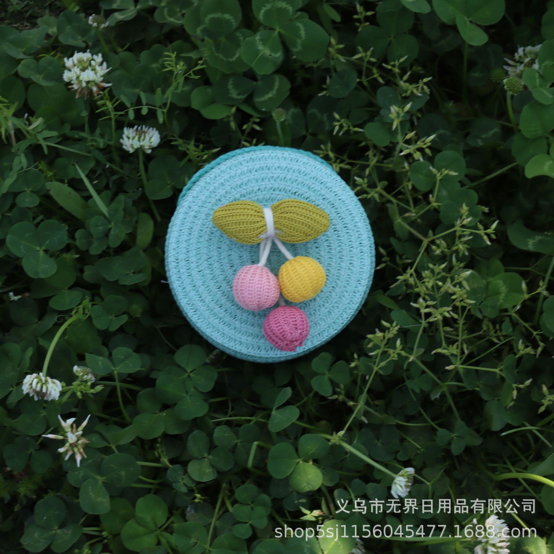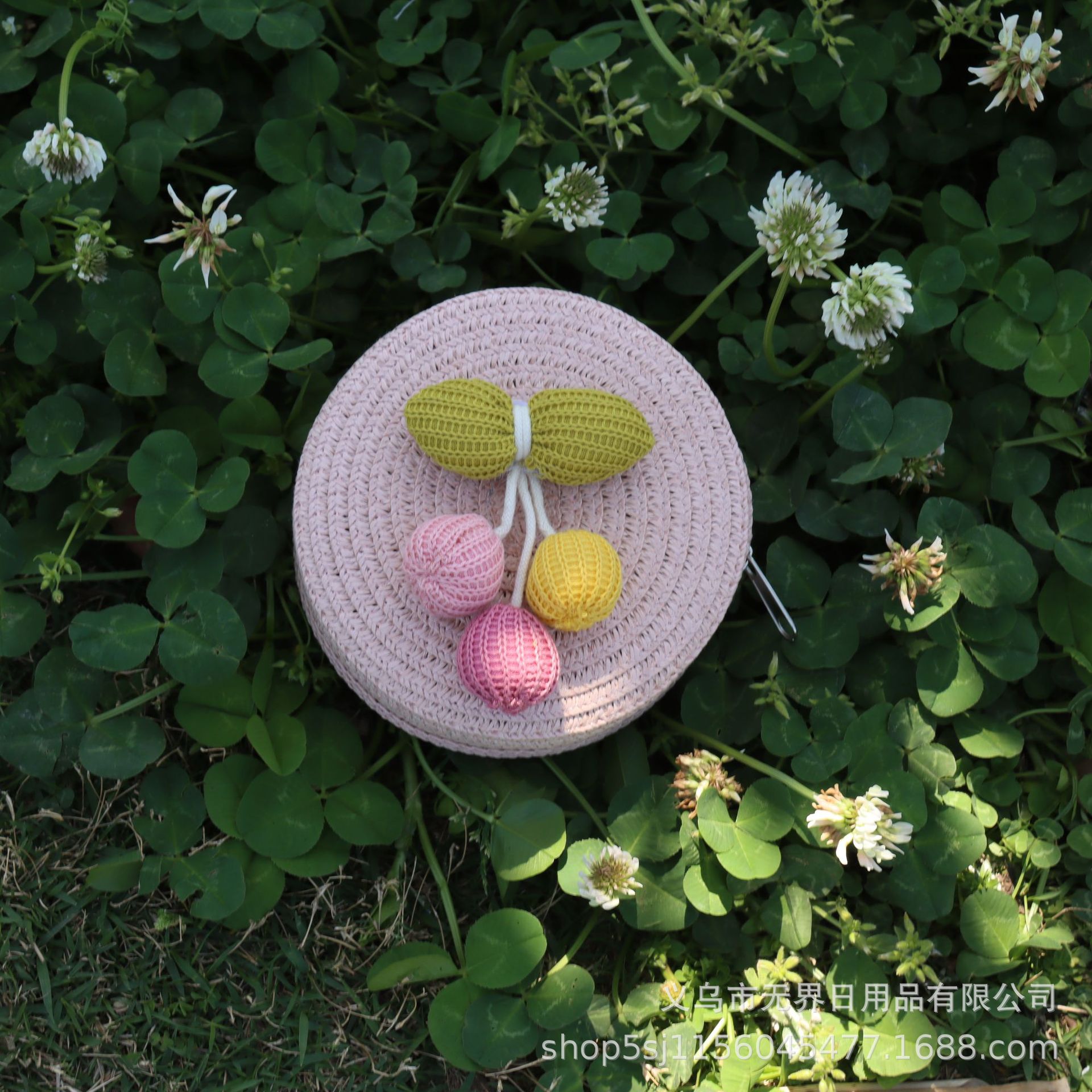 새로운 어린이 밀짚 라운드 가방 인터넷 연예인 스타일 어린이 동전 지갑 크로스 바디 가방 직조 공장 직접 판매 여행 도매