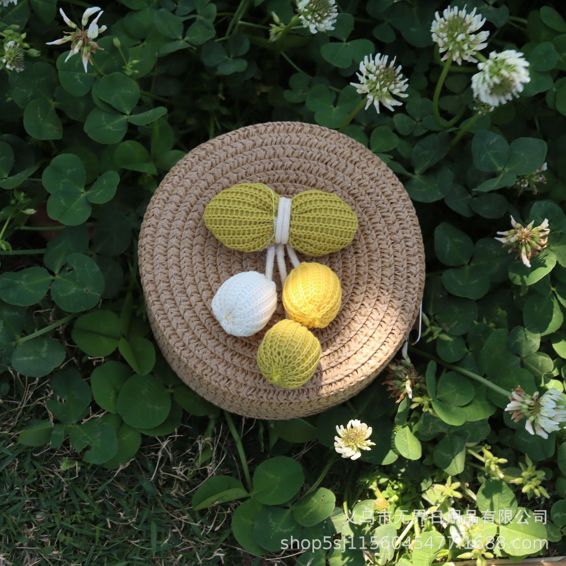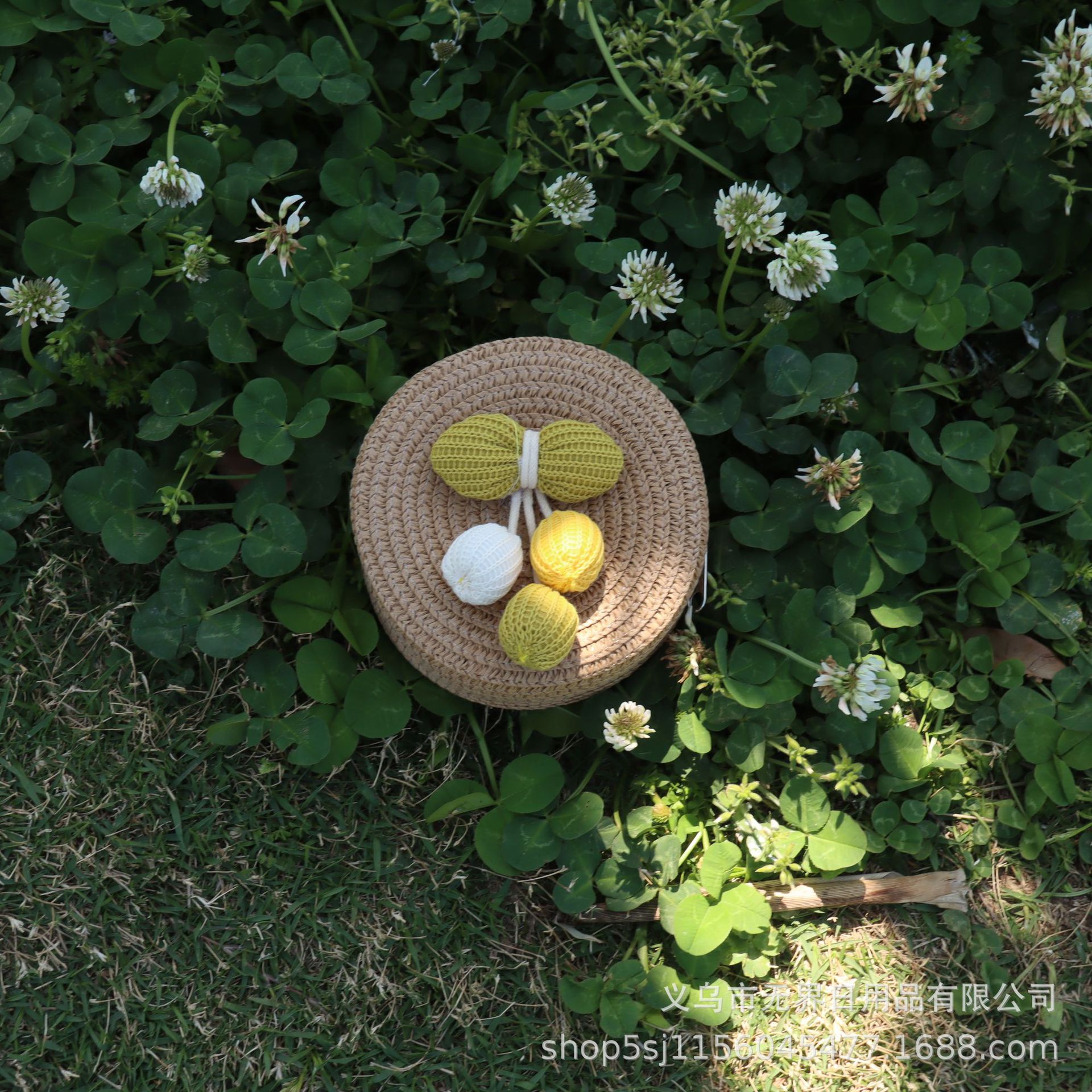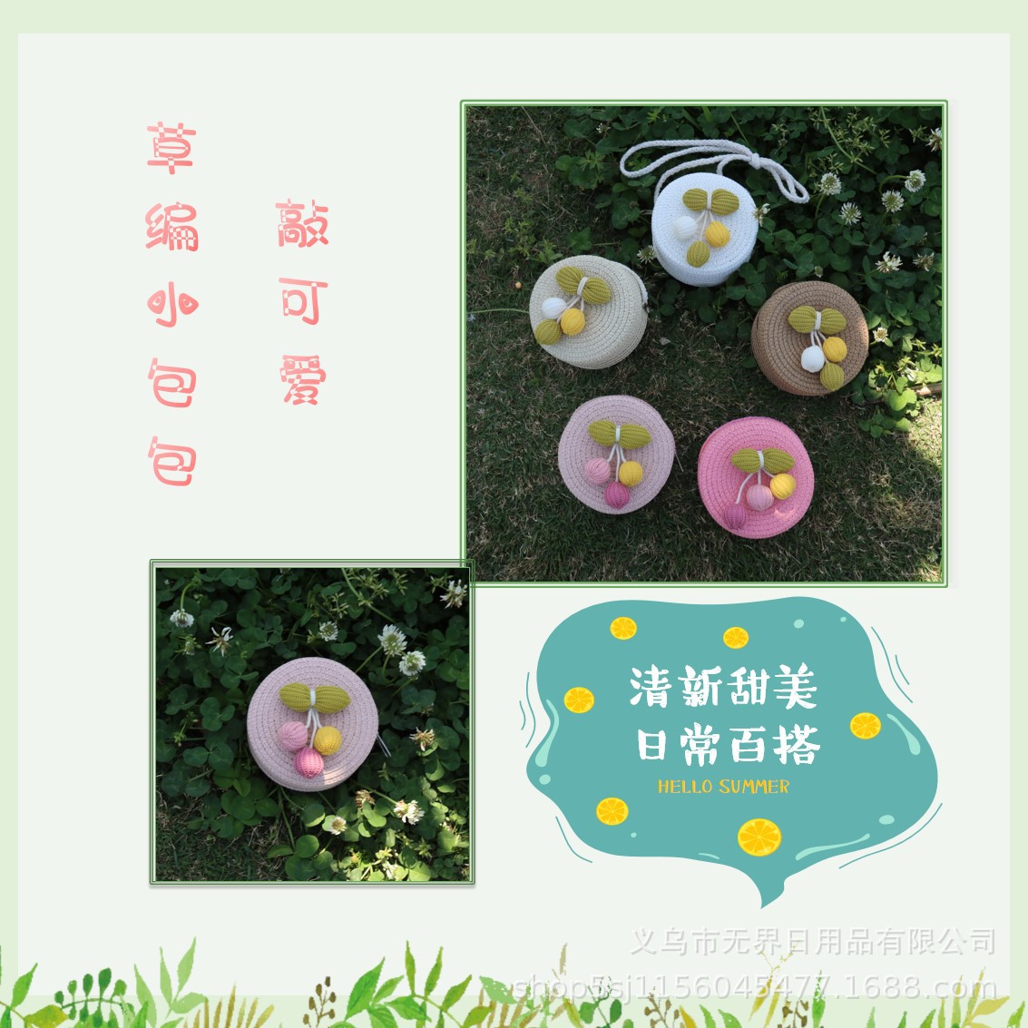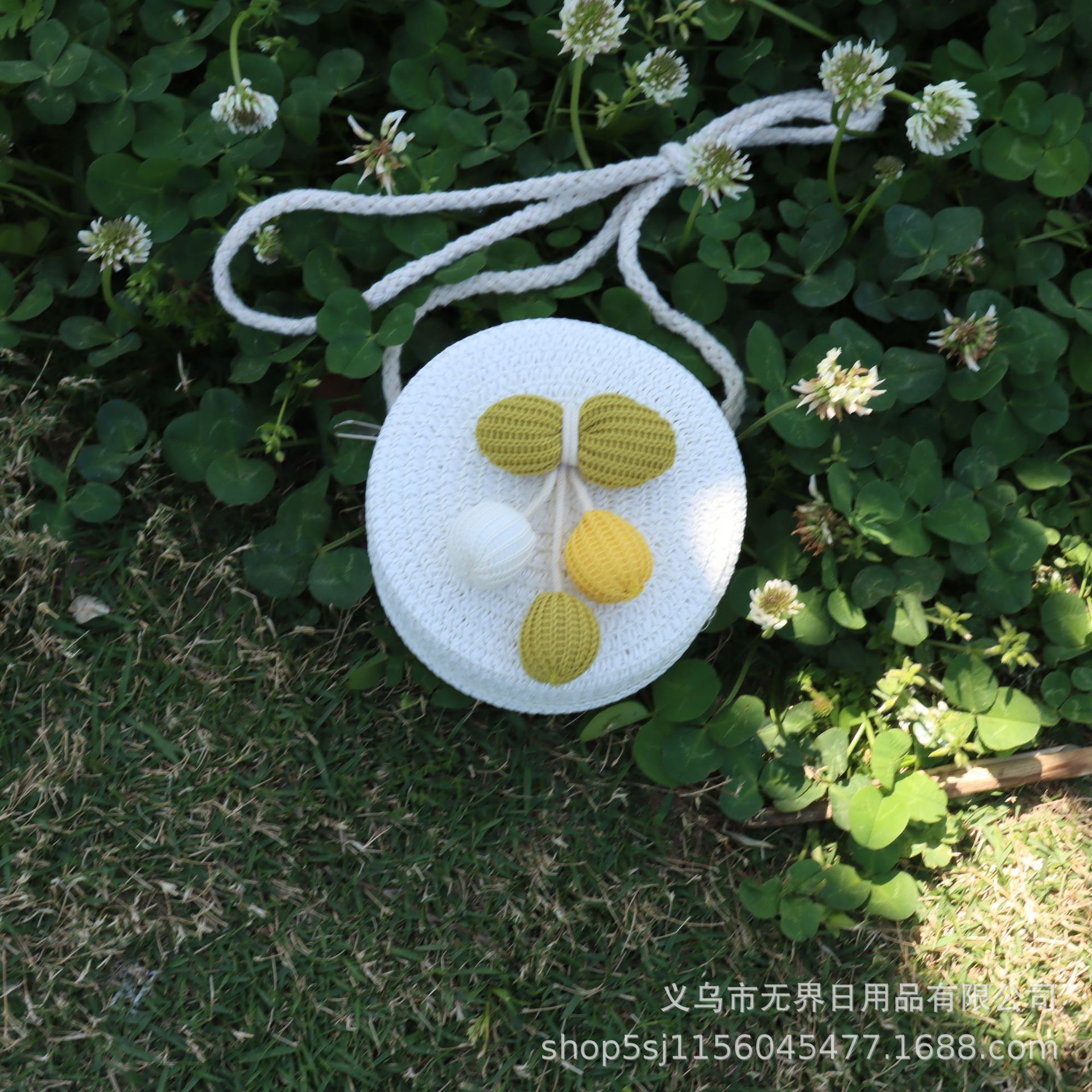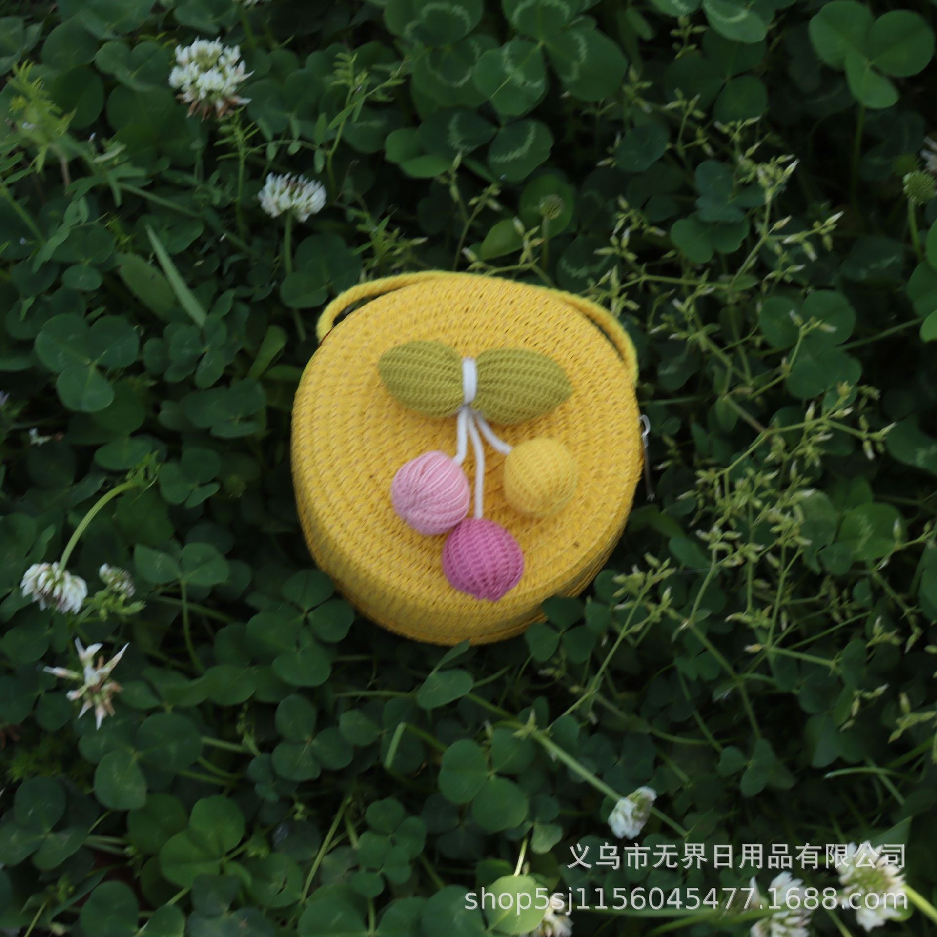 새로운 어린이 밀짚 라운드 가방 인터넷 연예인 스타일 어린이 동전 지갑 크로스 바디 가방 직조 공장 직접 판매 여행 도매스토어 가기