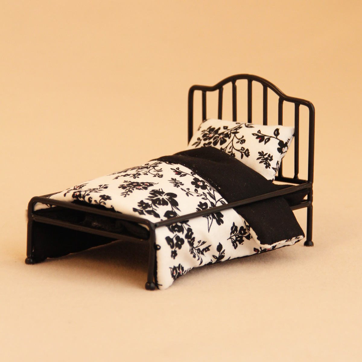 1:12 인형 집 금속 작은 이탈리아 간단한 미니 캐주얼 침대 미니어처 모델 가구 미니어처 금속 침대스토어 가기