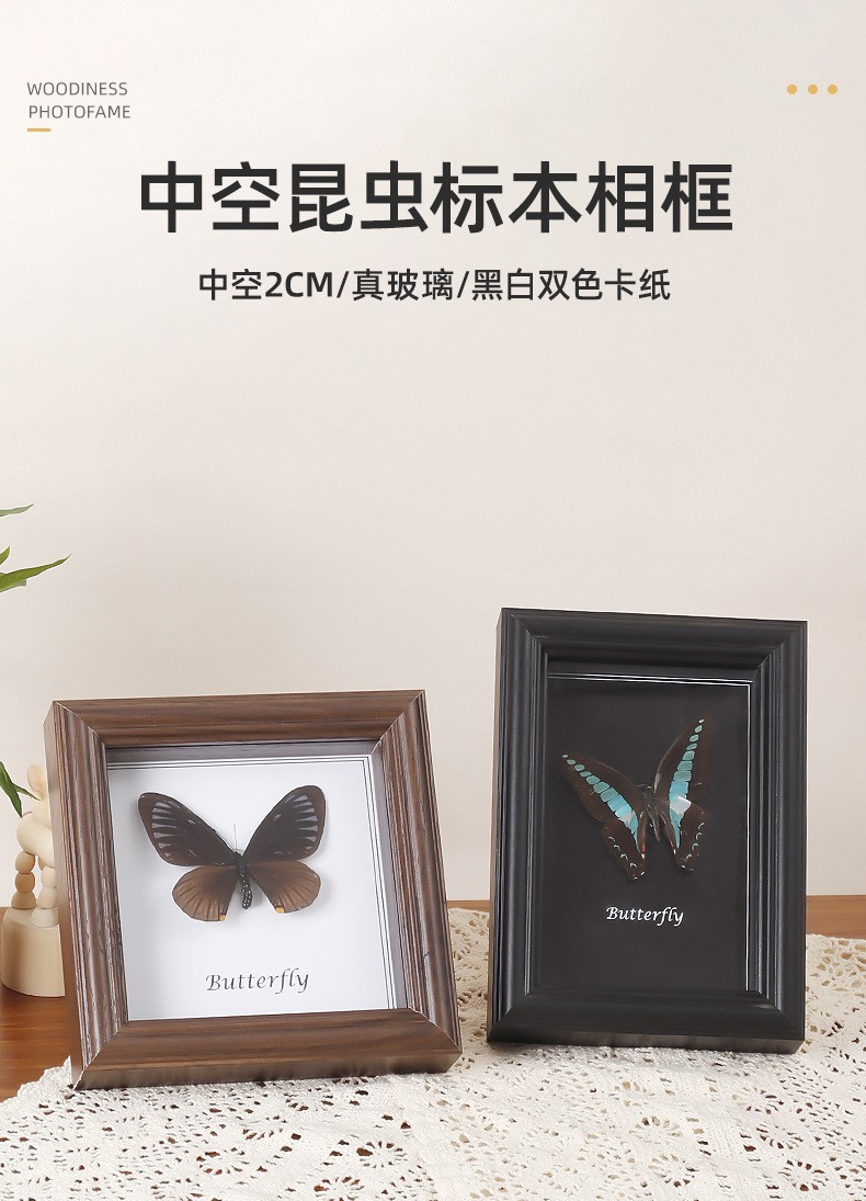 나비 표본 중공 2cm 사진 프레임 나무 입체 유리 액자 말린 꽃 종이 컷 인형 diy 장식 장식품스토어 가기