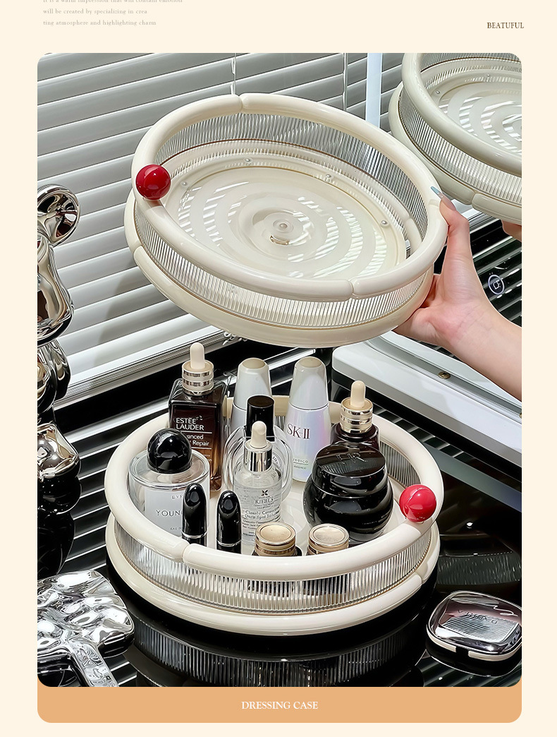 회전식 화장품 수납함 가정용 고급 대용량 트레이 데스크탑 화장대 스킨케어 제품 수납 선반