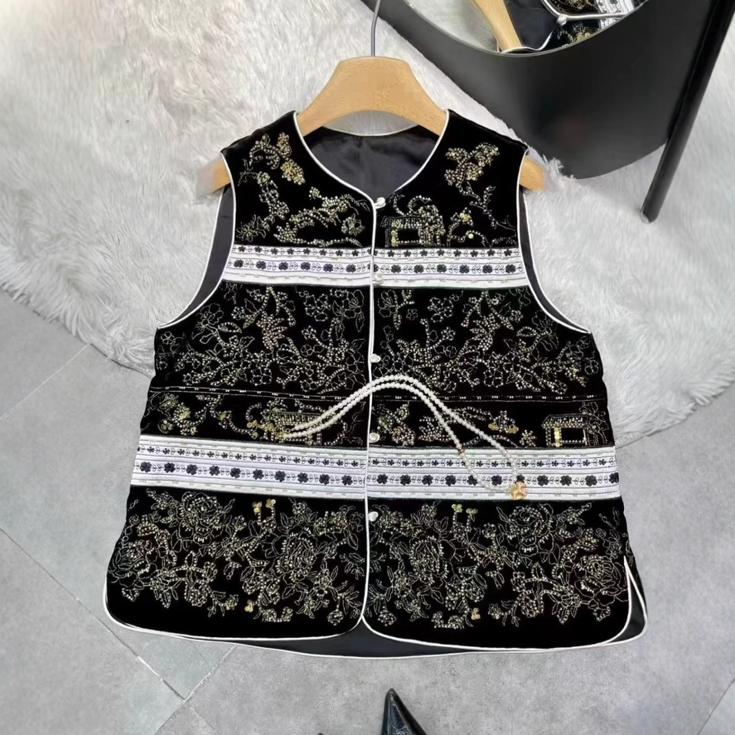 여성을위한 중국 스타일 수 놓은 라운드 넥 뽕나무 실크 조끼 가을 새로운 중국 스타일 여성을위한 하이 엔드 기질 조끼 조끼