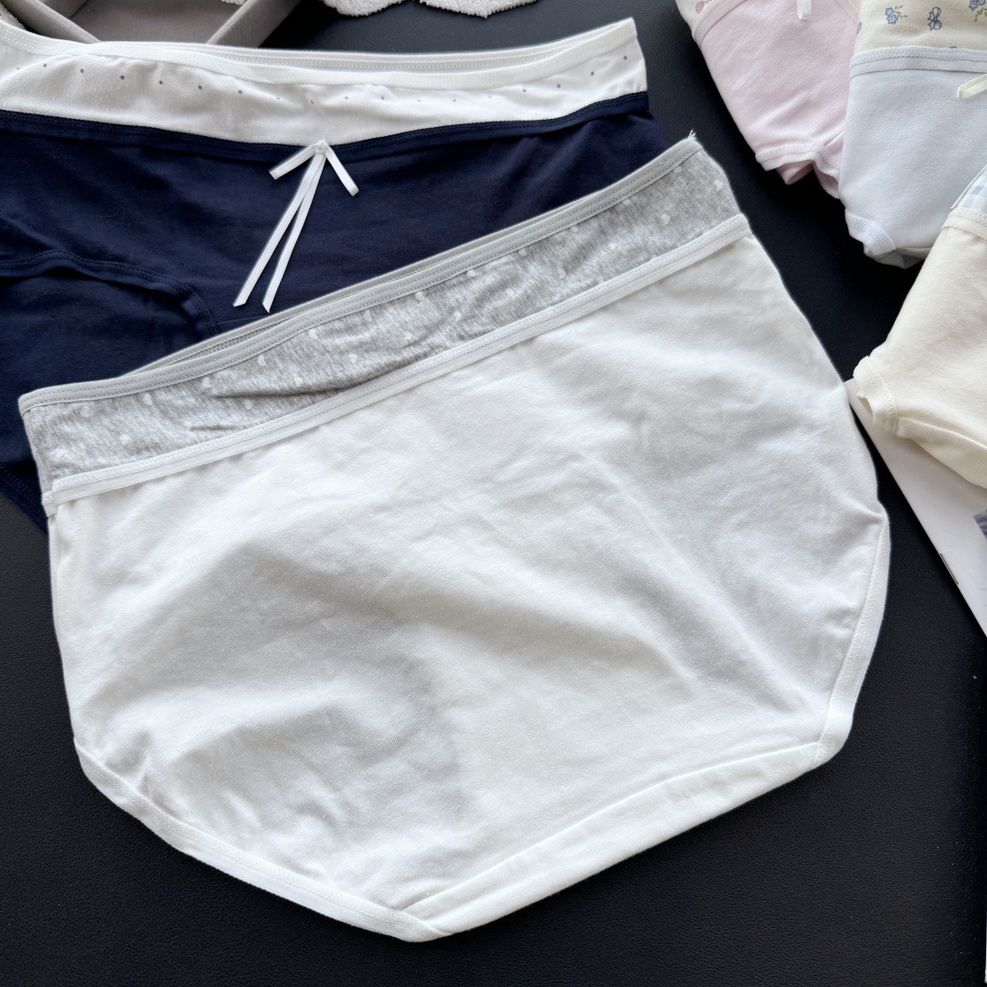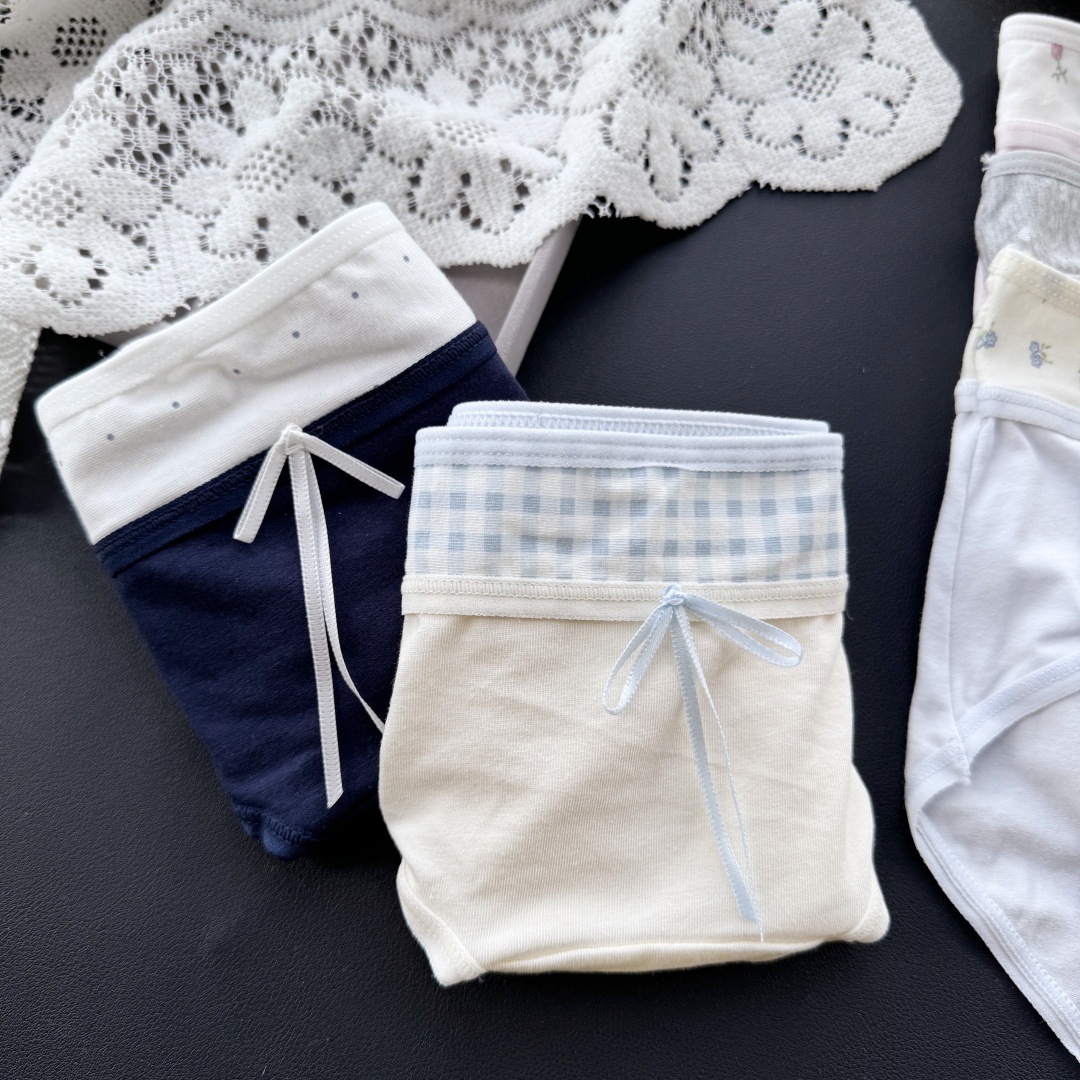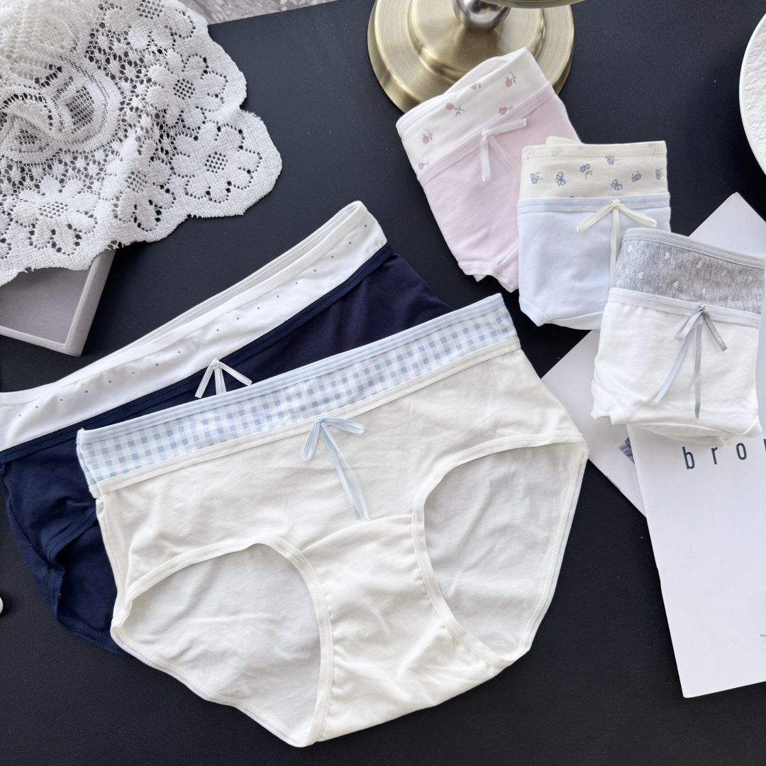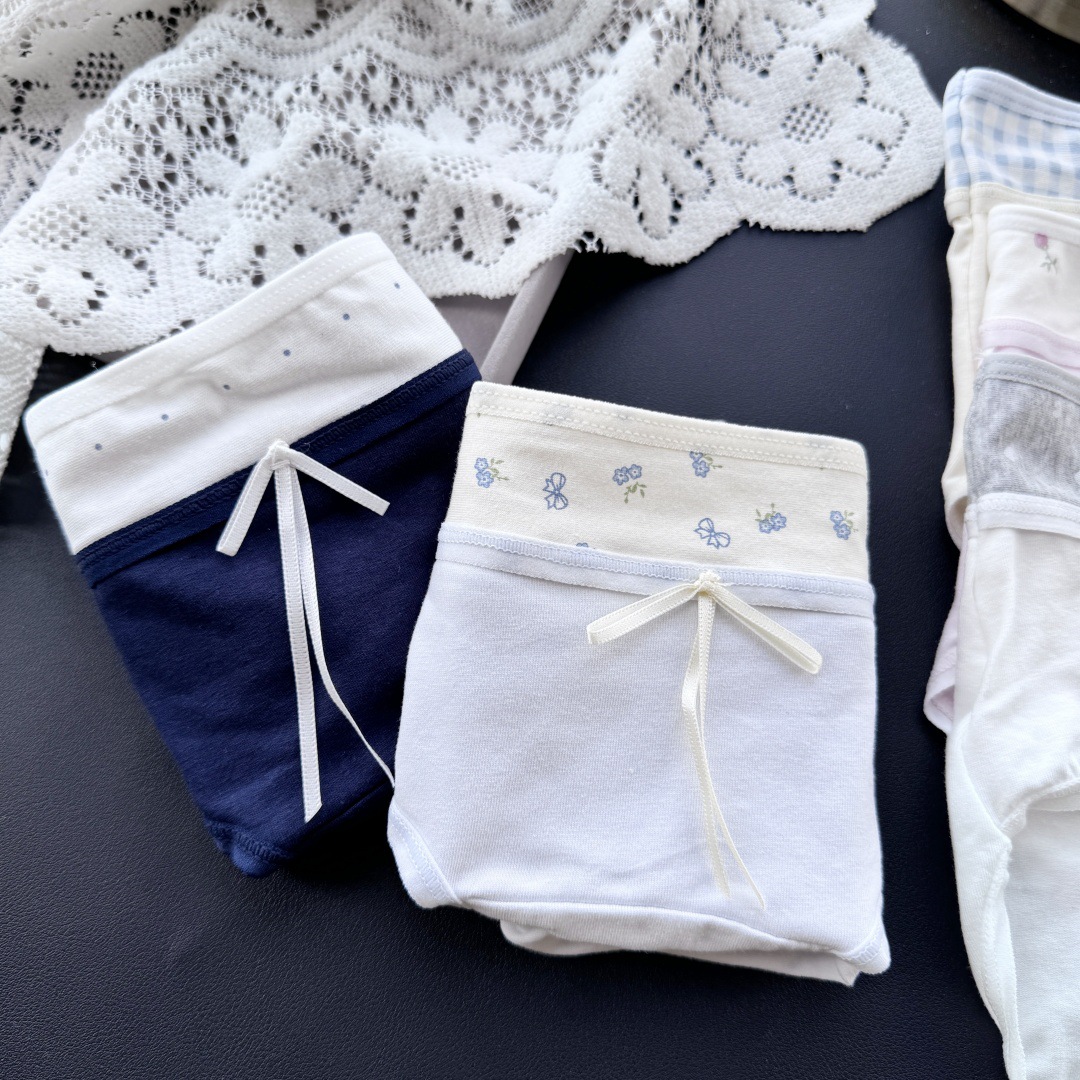 【 40-65kg 】3914 # 달콤한 배색~ 면 배색 작은 꽃무늬 체크무늬 귀여운 엉덩이 커버 미드웨이스트 여성 속옷