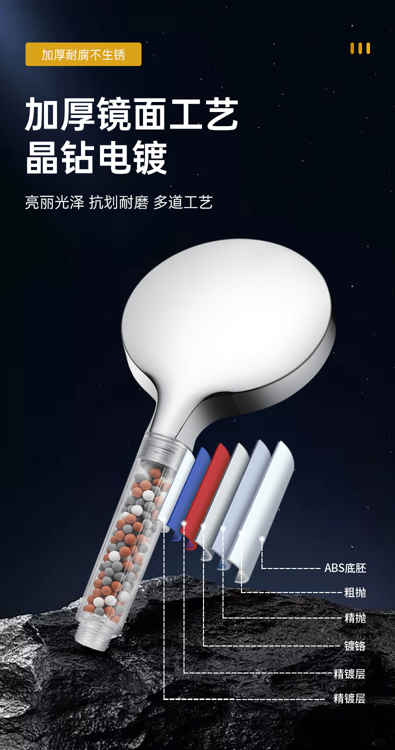 • [365일 고효율 염소제거] 필터 3단 부스터 샤워헤드 실버