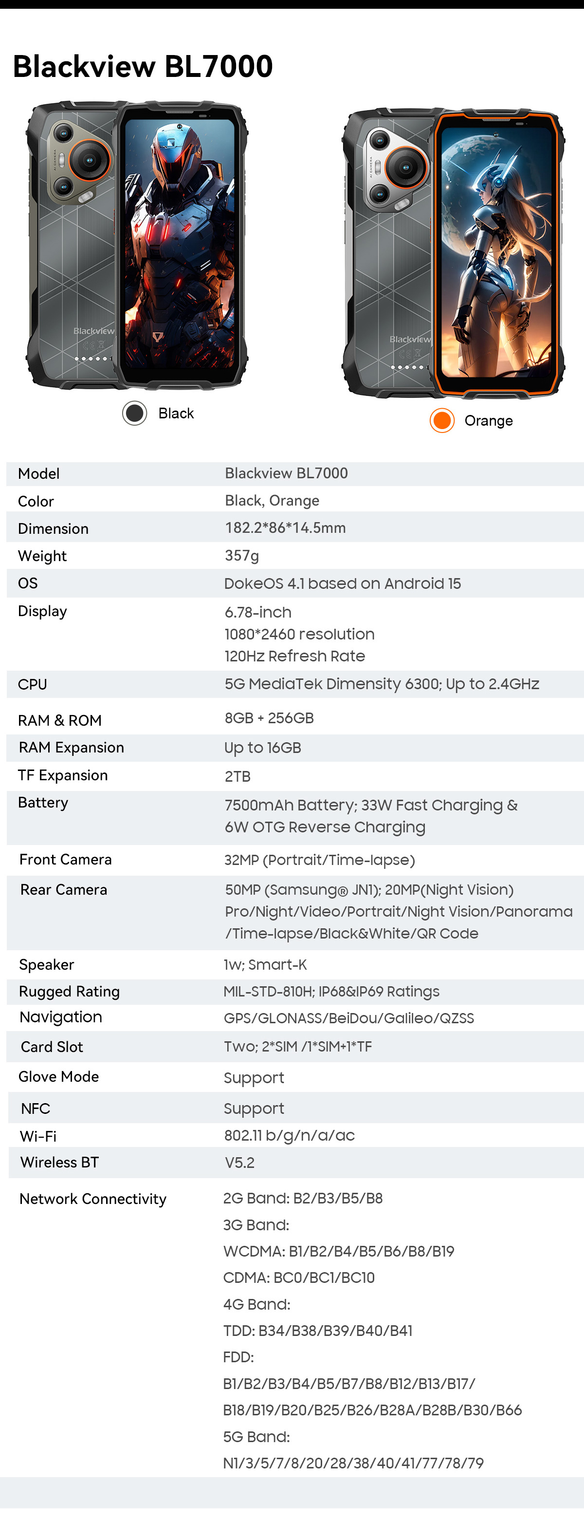BLACKVIEW BL7000 5G 풀 밴드 스마트 나이트 비전 견고한 휴대폰