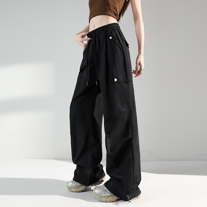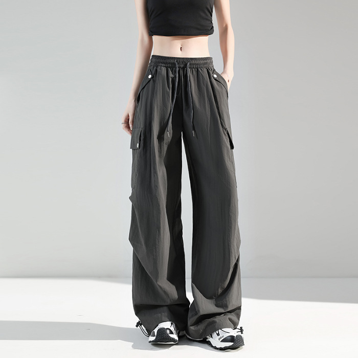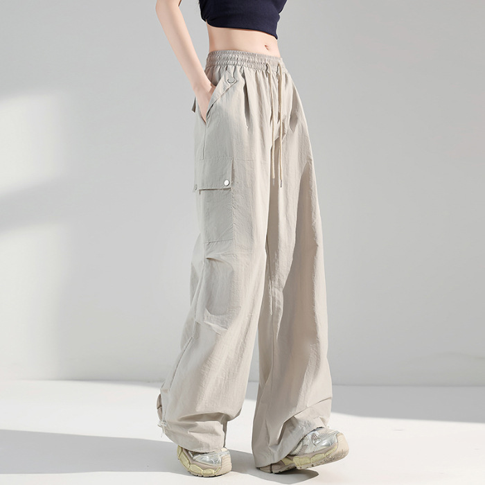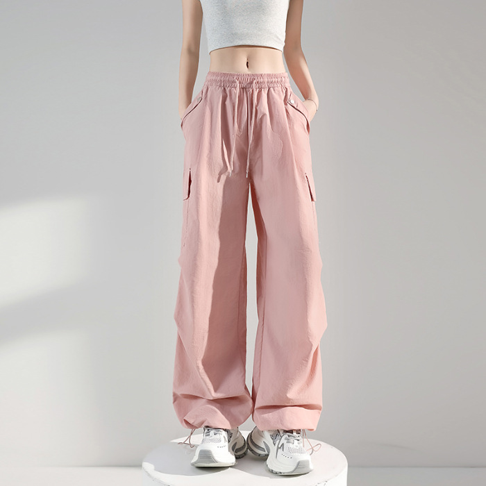 여성용 아메리칸 아이스 실크 스포츠 바지 여름 얇은 속건 바지 쁘띠 캐주얼 와이드 레그 아웃도어 등산 바지