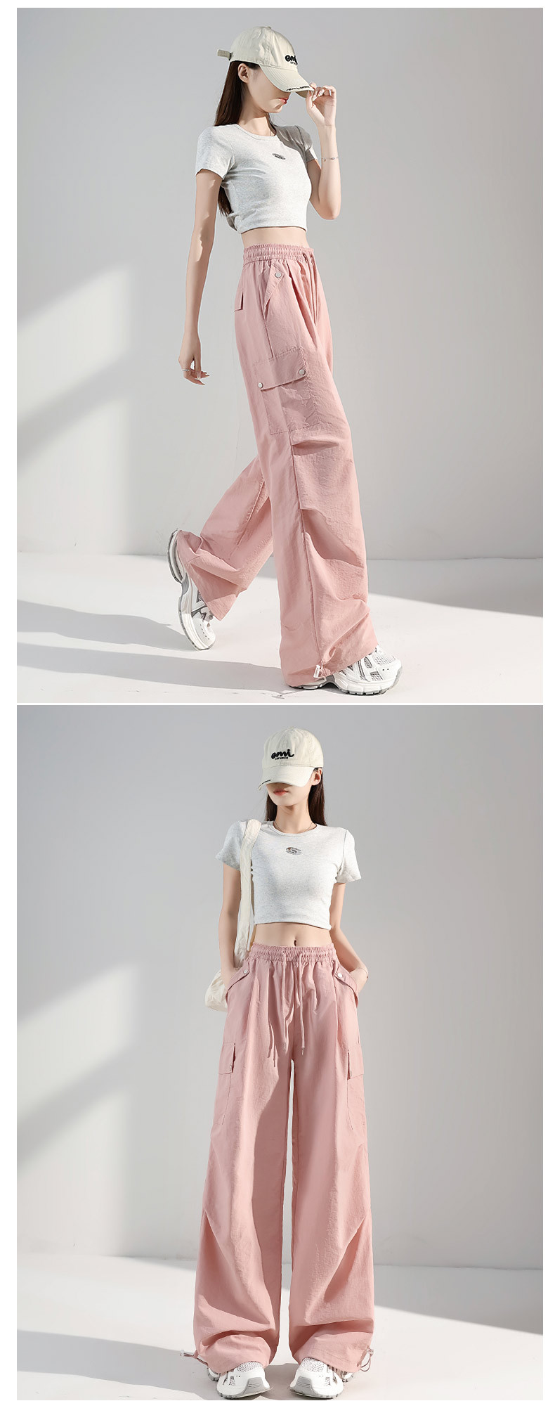 여성용 아메리칸 아이스 실크 스포츠 바지 여름 얇은 속건 바지 쁘띠 캐주얼 와이드 레그 아웃도어 등산 바지스토어 가기