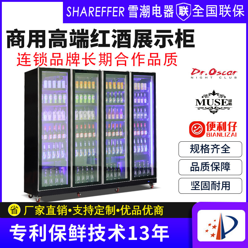 레드 와인 냉장고 바 수직 맥주 캐비닛 김서림 방지 4 도어 냉장고 신선 유지 캐비닛 공냉식 단열 상업용