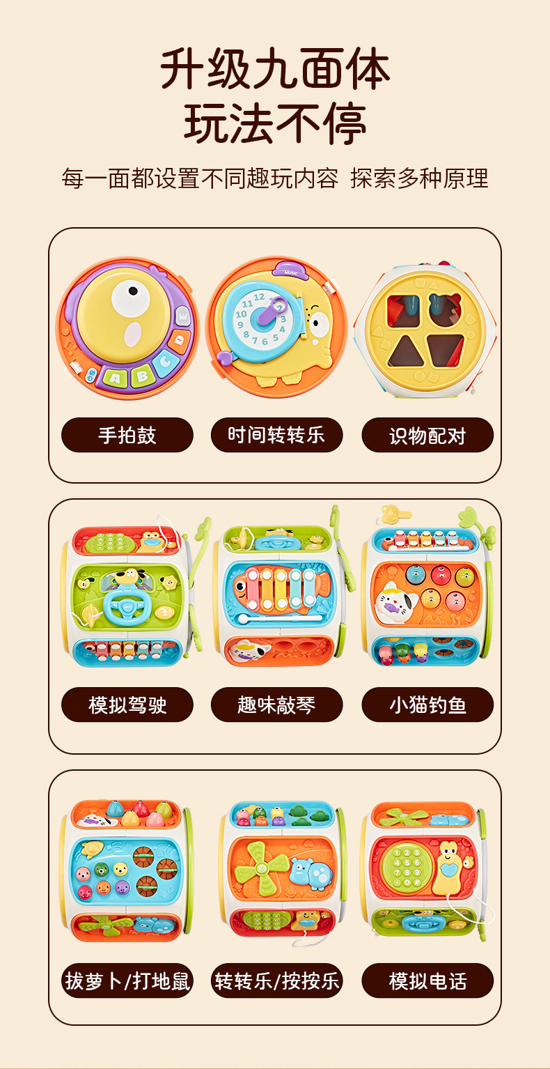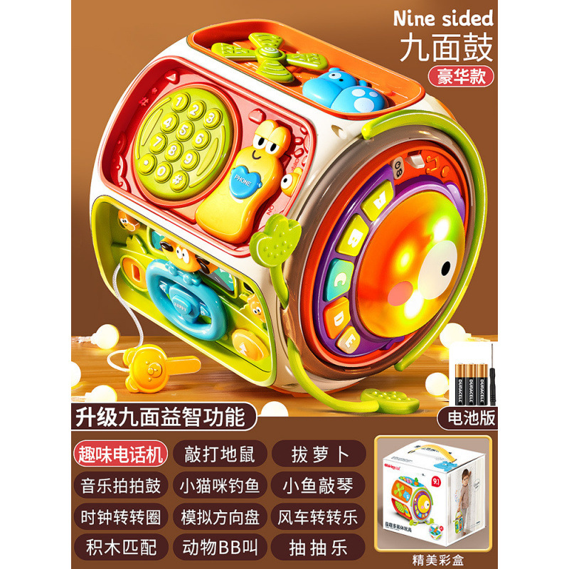아기 다기능 9면체 손 드럼 장난감 조기 교육 유아 음악 드럼 생일스토어 가기