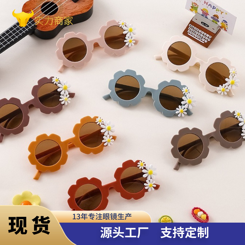 새로운 꽃 어린이 선글라스 크로스 보더 베이비 선글라스 영어 알파벳 어린이 다이아몬드 안경 해바라기