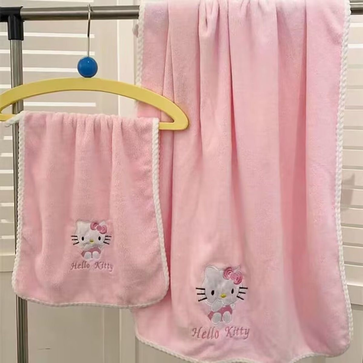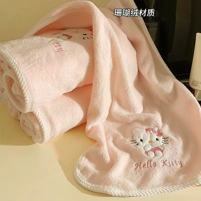 산호 벨벳 타월 목욕 타월 세트 만화 귀여운 헬로 키티 부드럽고 흡수성 좋은 가정용 목욕 타월